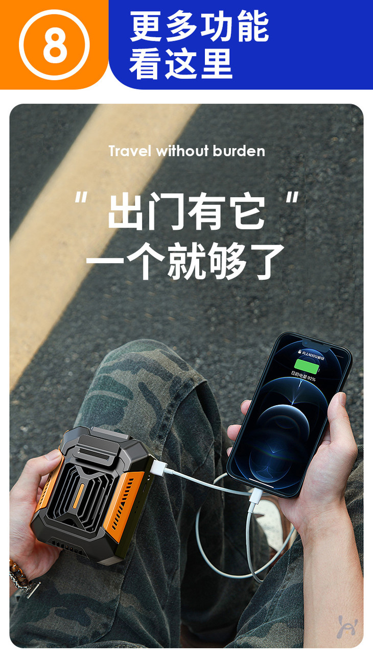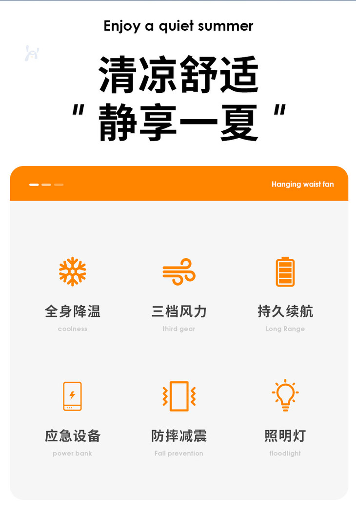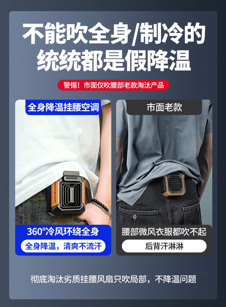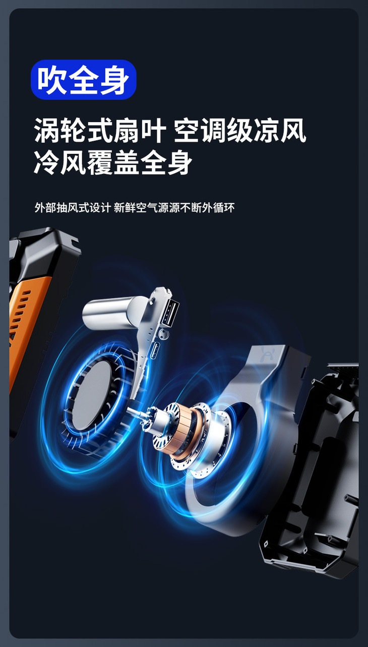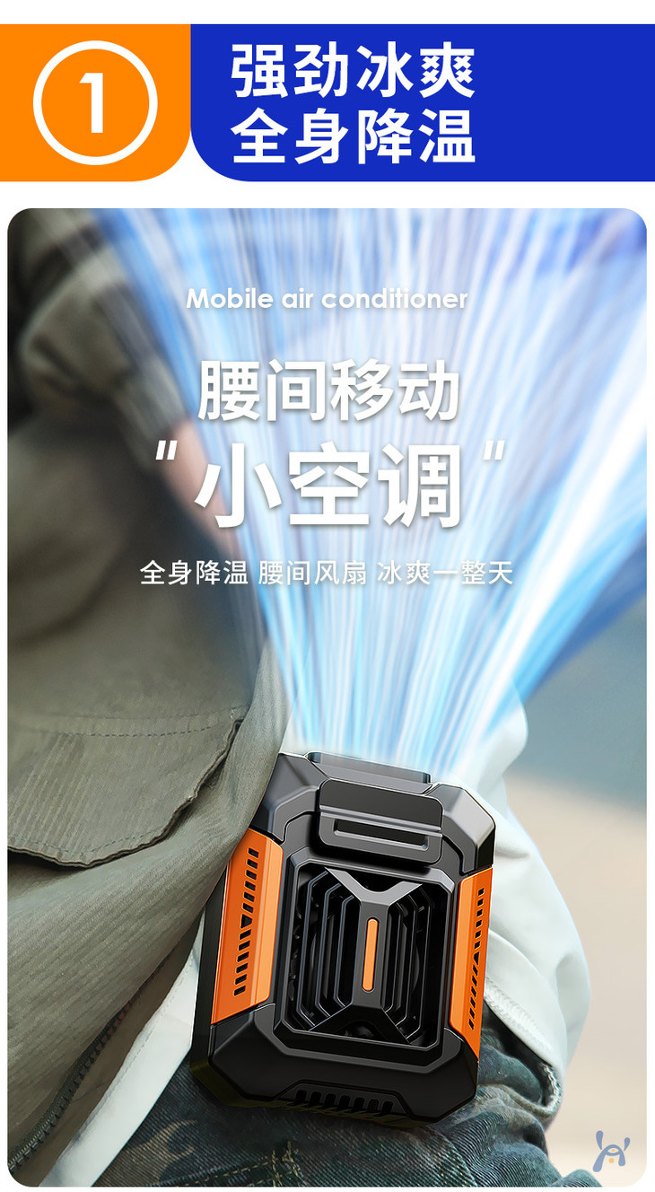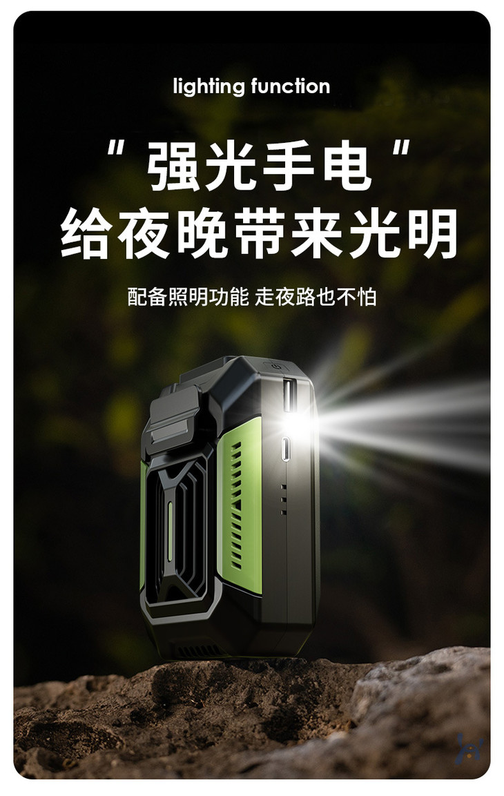 【户外运动便携式usb挂腰风扇】露营挂脖手持小电风扇