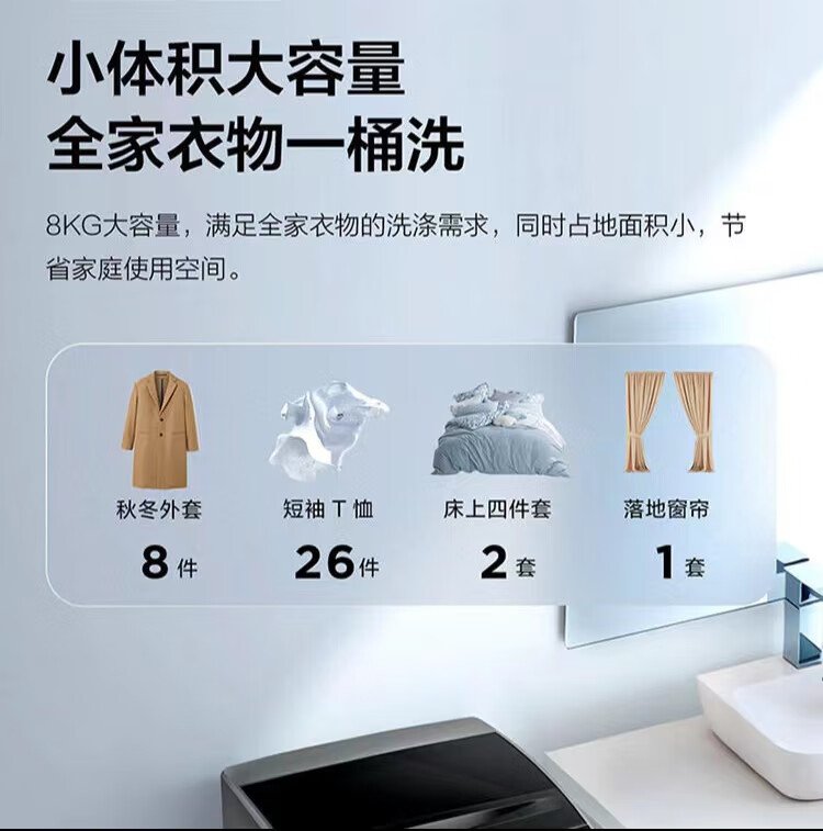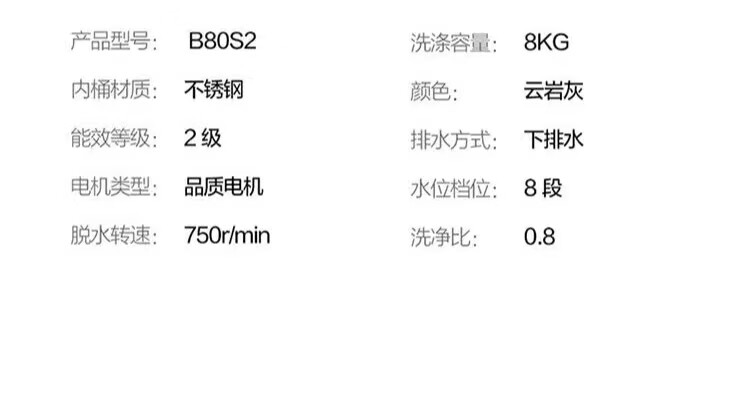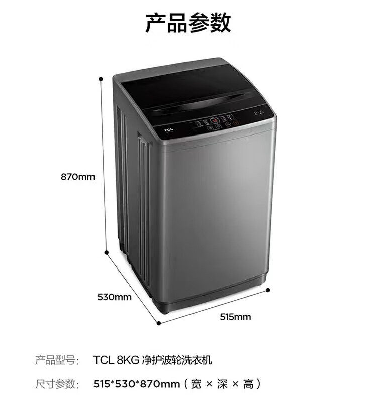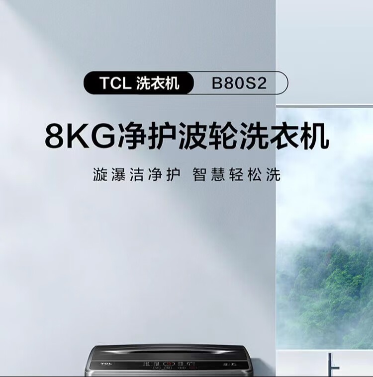 TCL 8KG公斤净护一键智洗10种洗涤程序24H预约波轮洗衣机 B80S2
