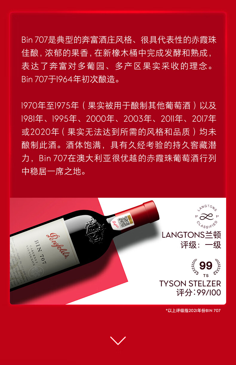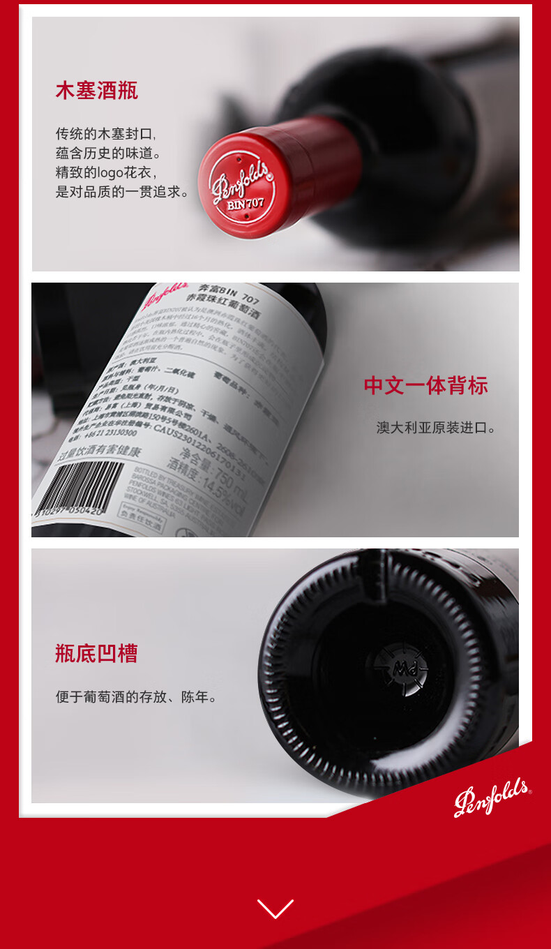 奔富 BIN707赤霞珠红葡萄酒750ml