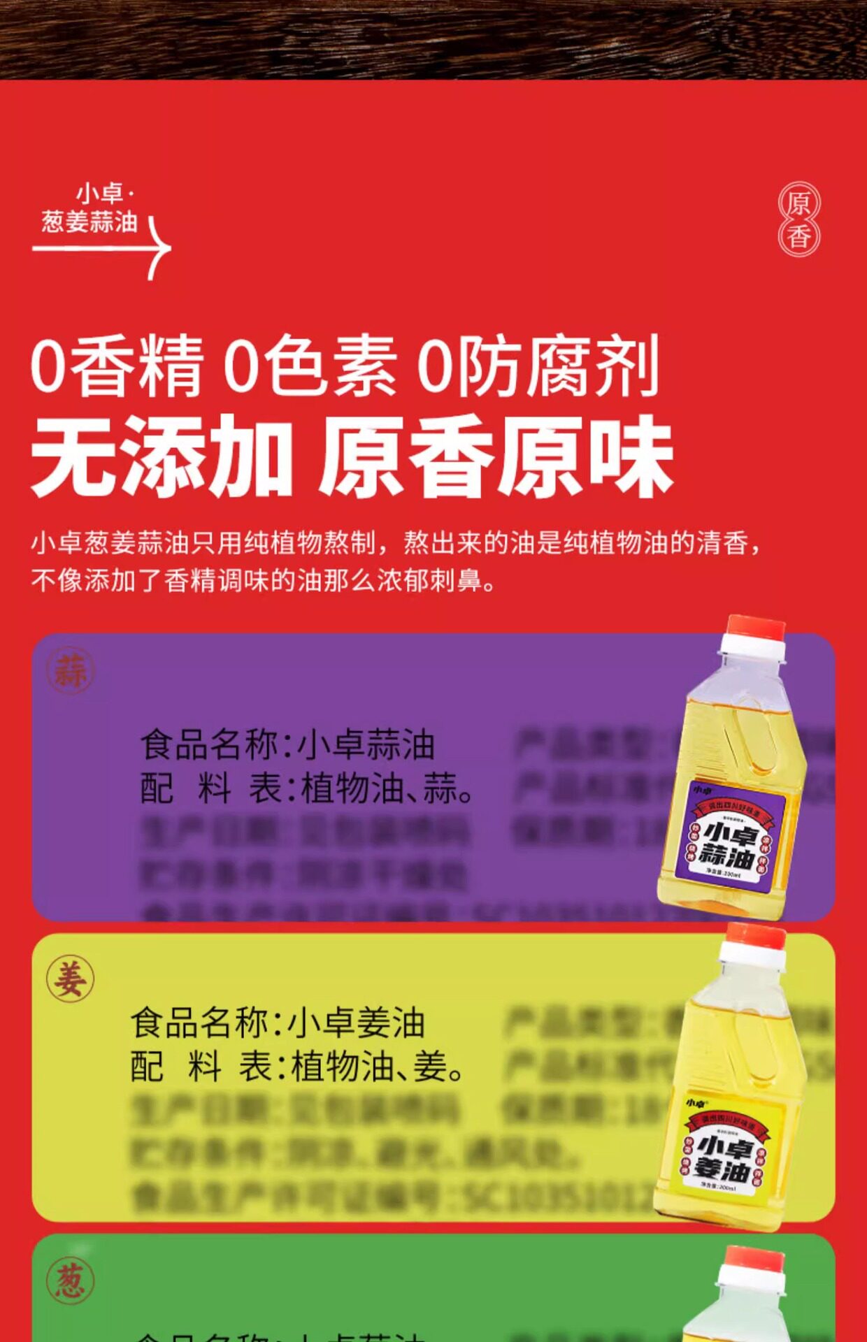 小卓大蒜油香葱油姜油凉拌菜专用油拌面调味料家用葱头油食用油料 商品图4