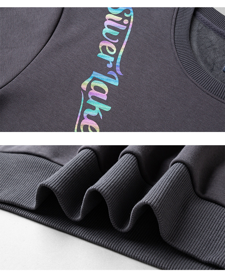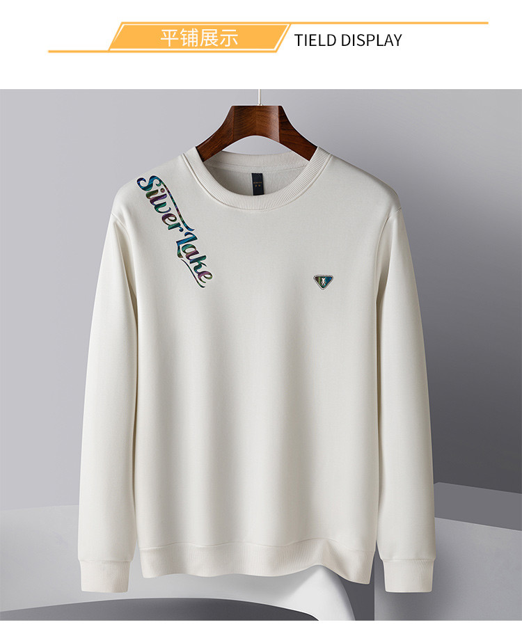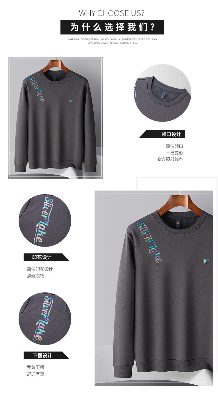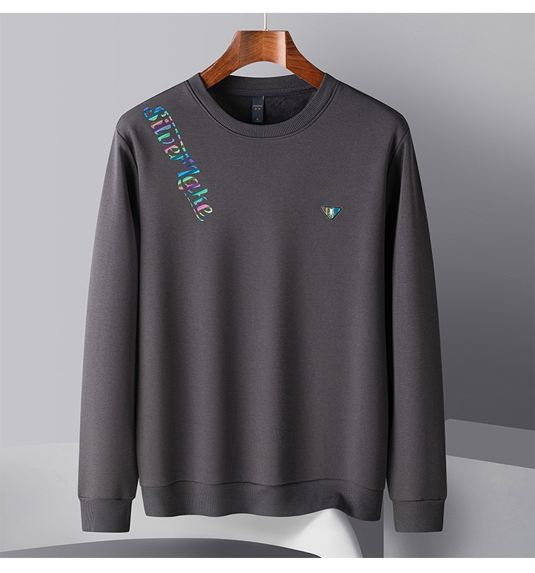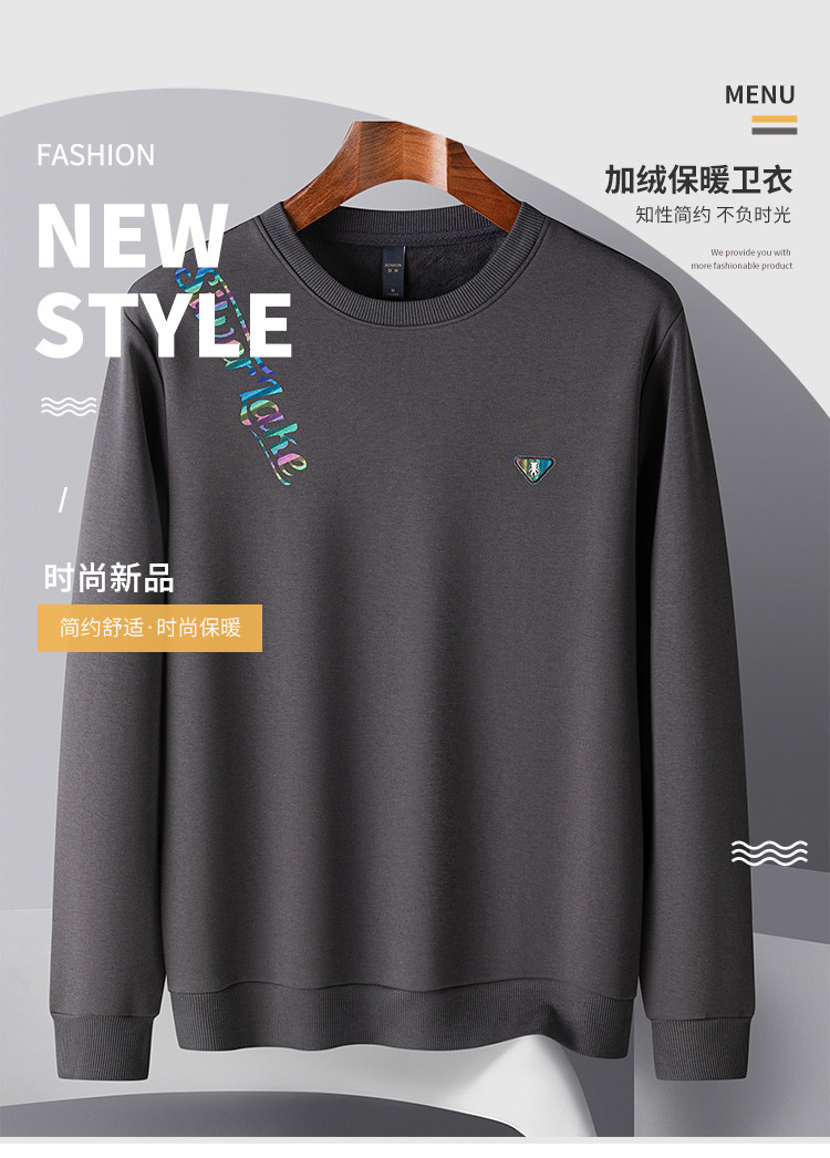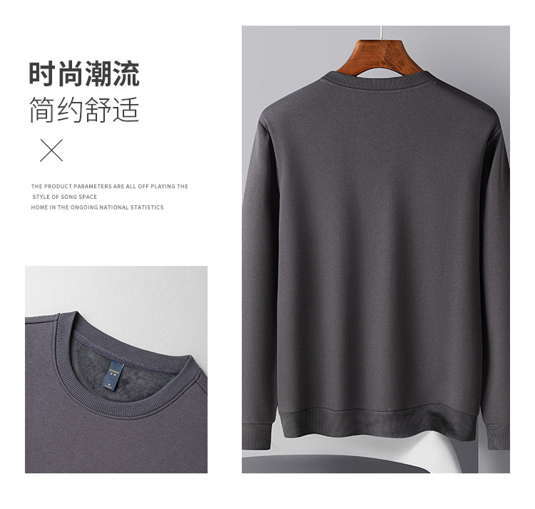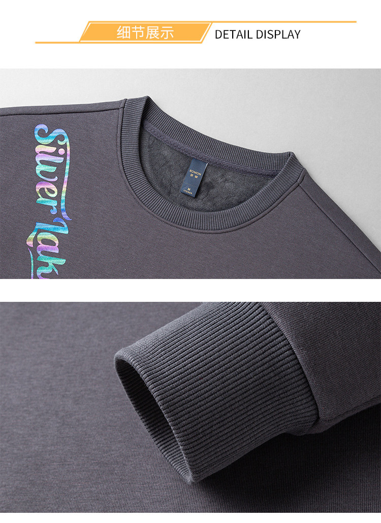 【加绒加厚】罗蒙男士秋冬含桑蚕丝长袖卫衣舒适百搭时尚胸花男士卫衣