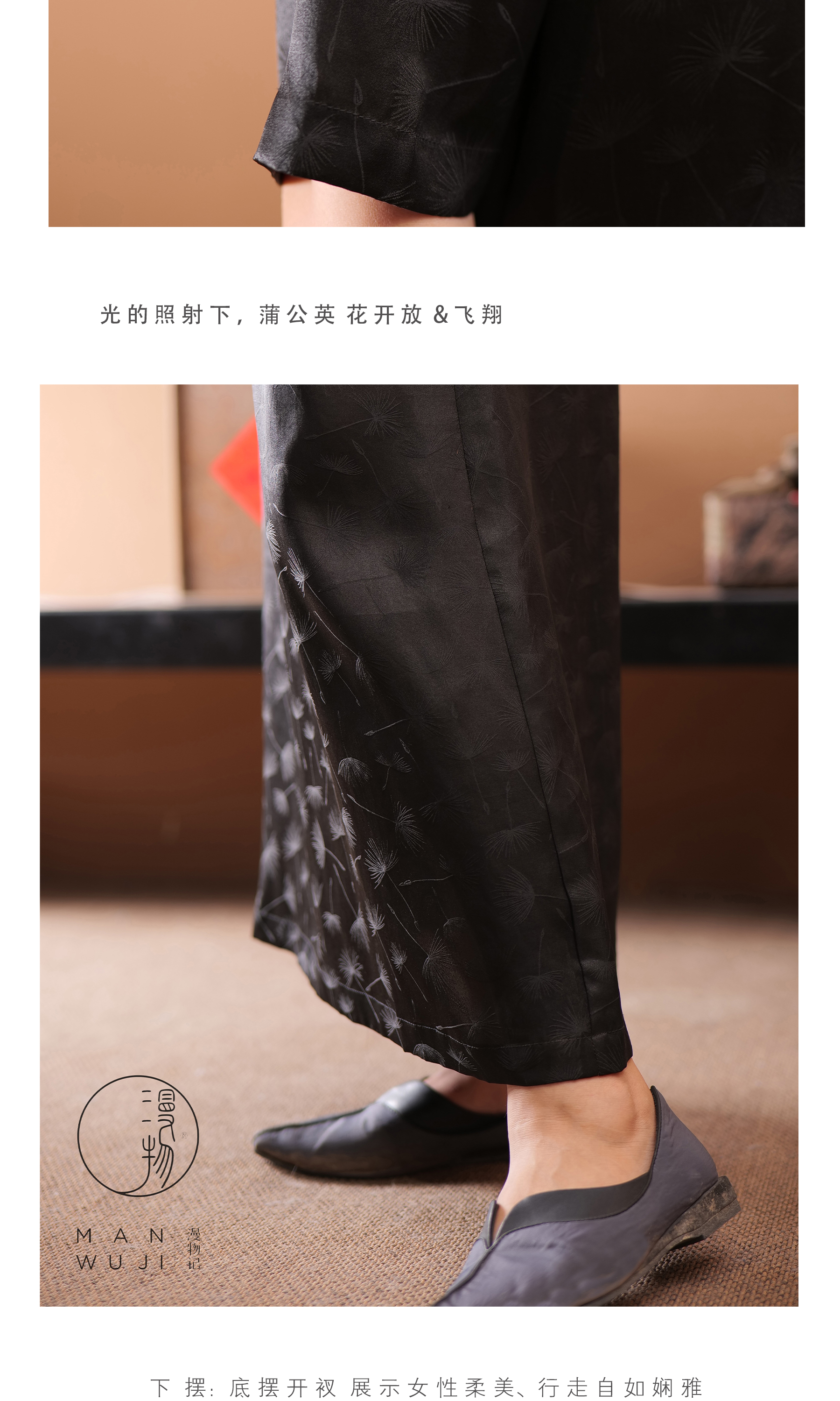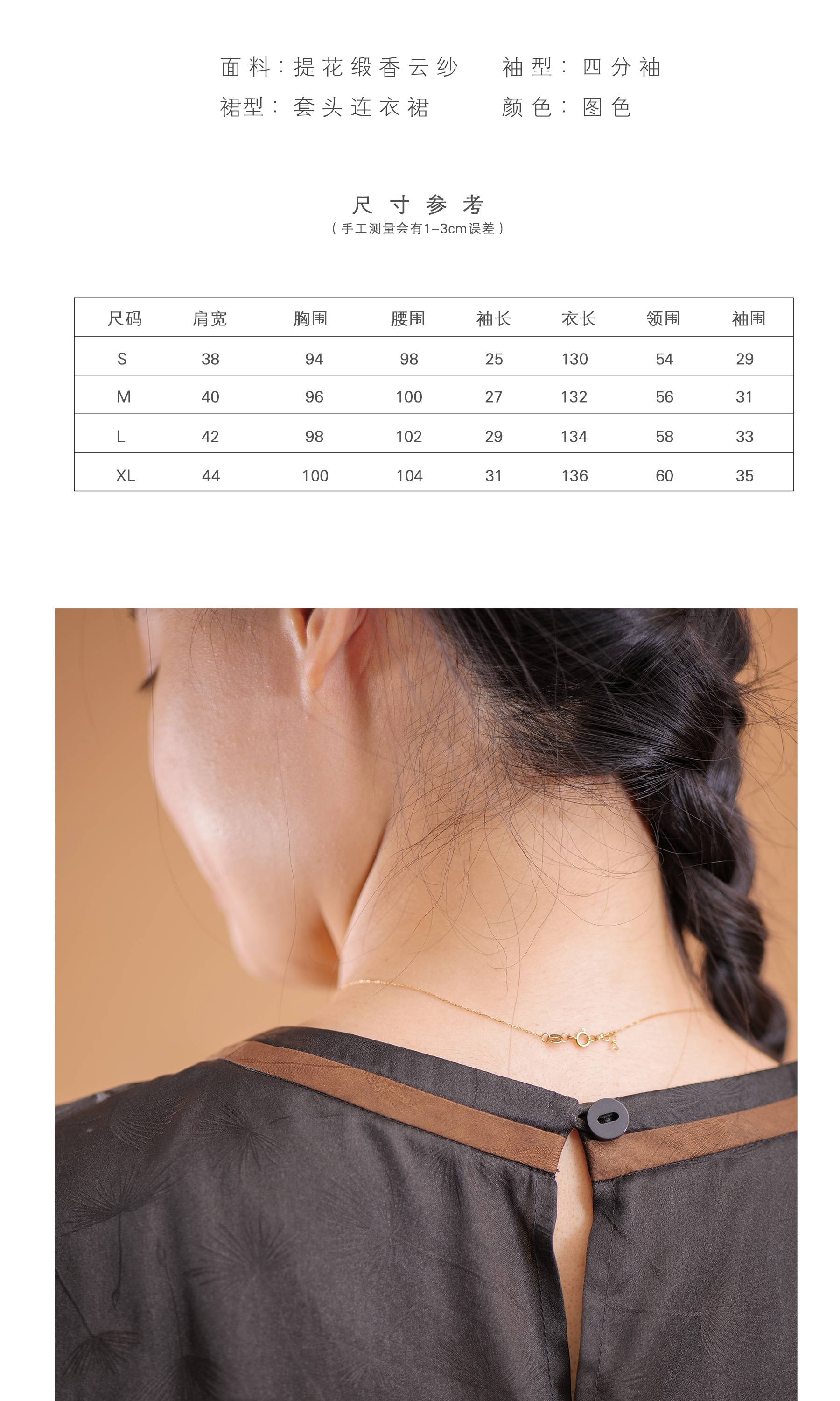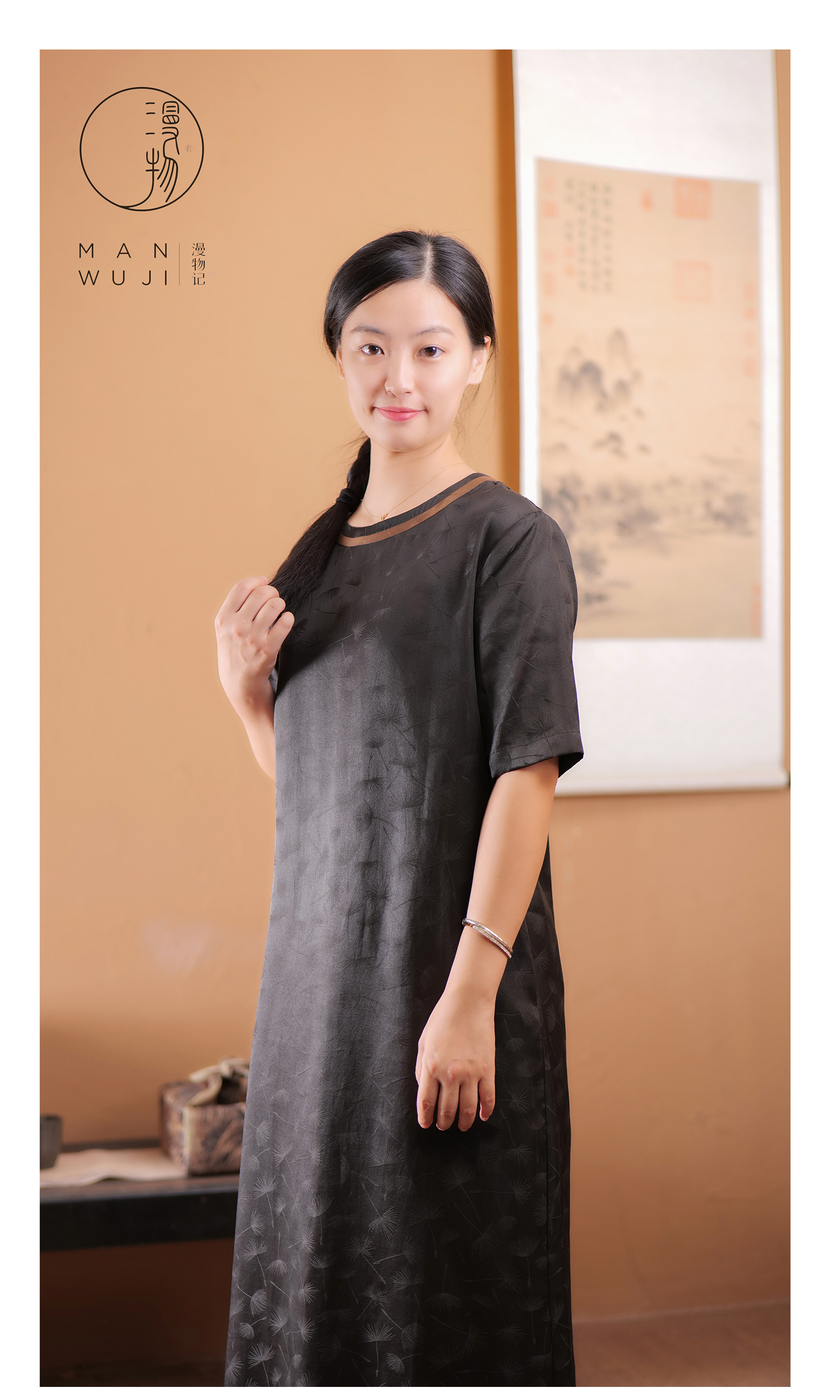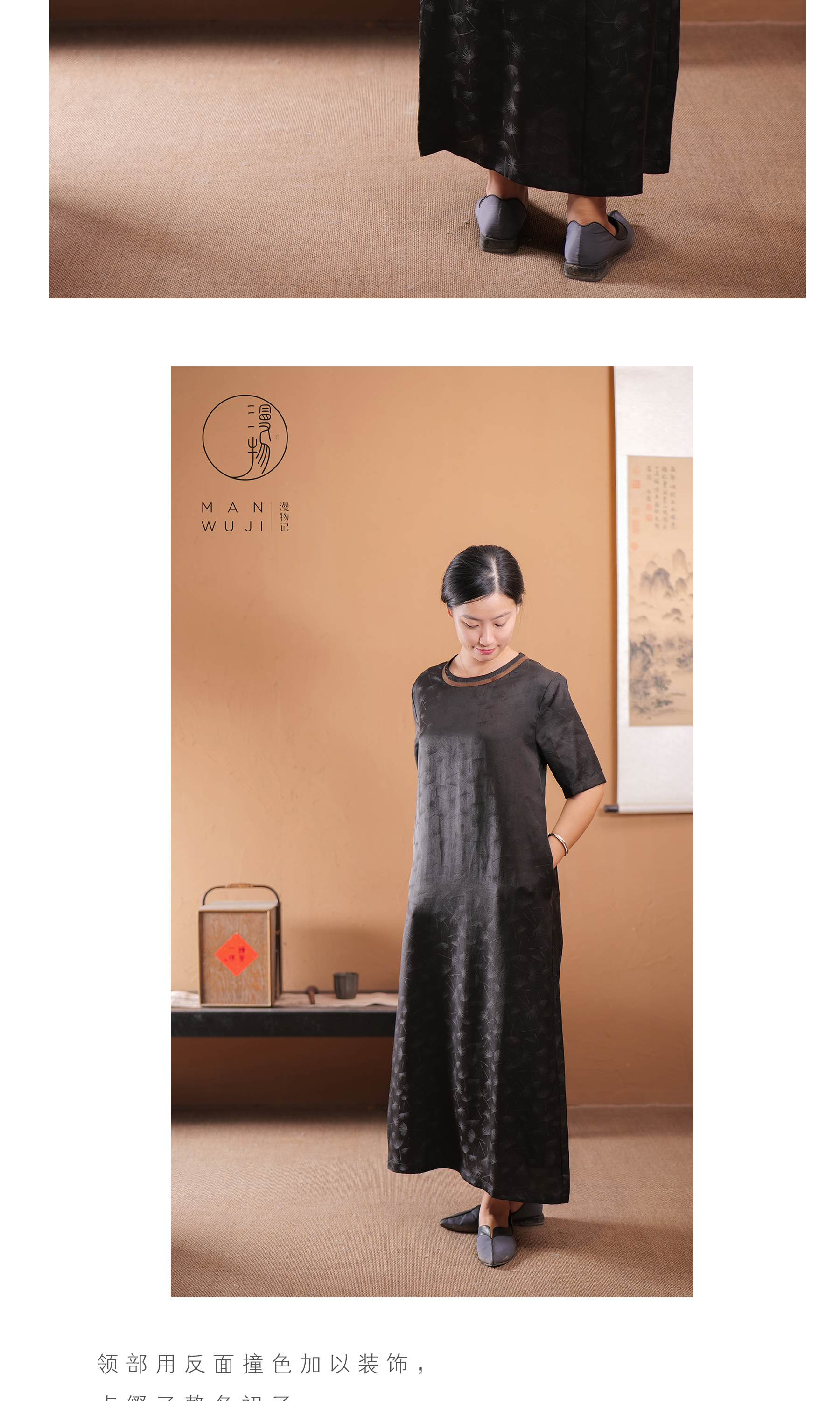 漫物记提花缎香云纱圆领短袖简约连衣裙XYS-089
