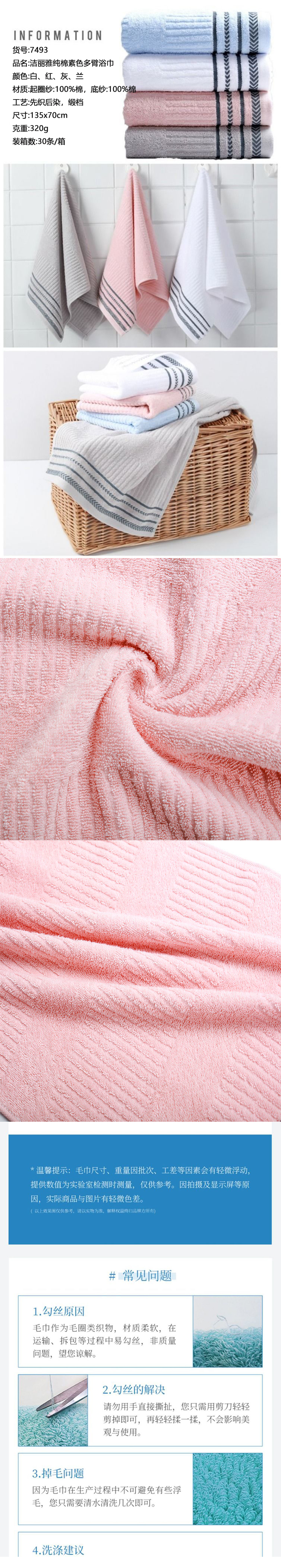 洁丽雅纯棉素色多臂浴巾1条