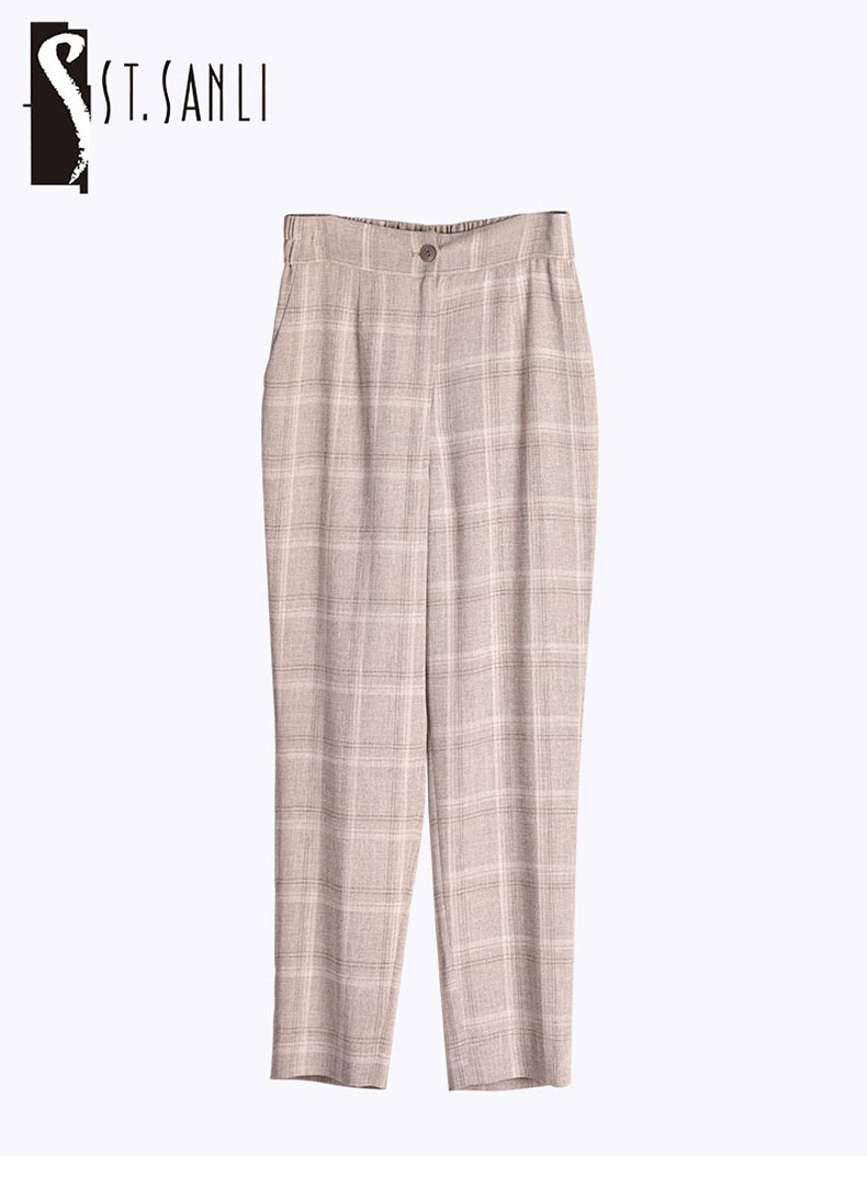 SAINT L’UCK/圣媛女装 新品时尚优雅中长款千鸟格纹压褶半身裙SA319B62