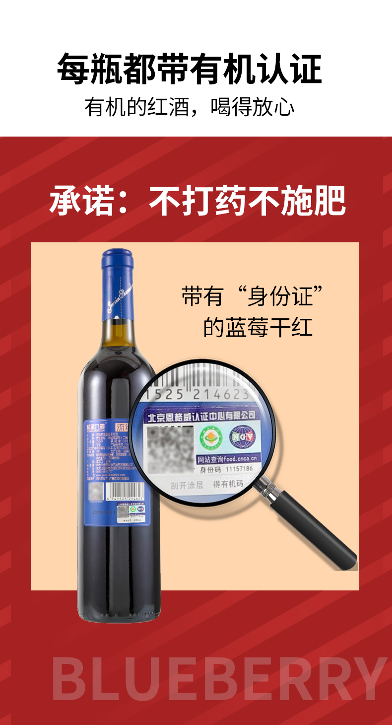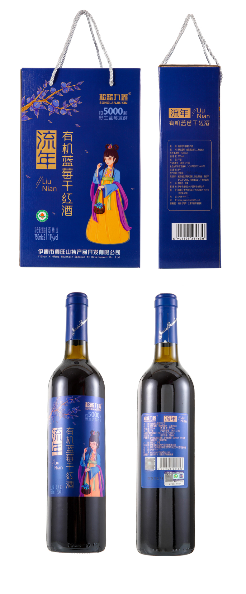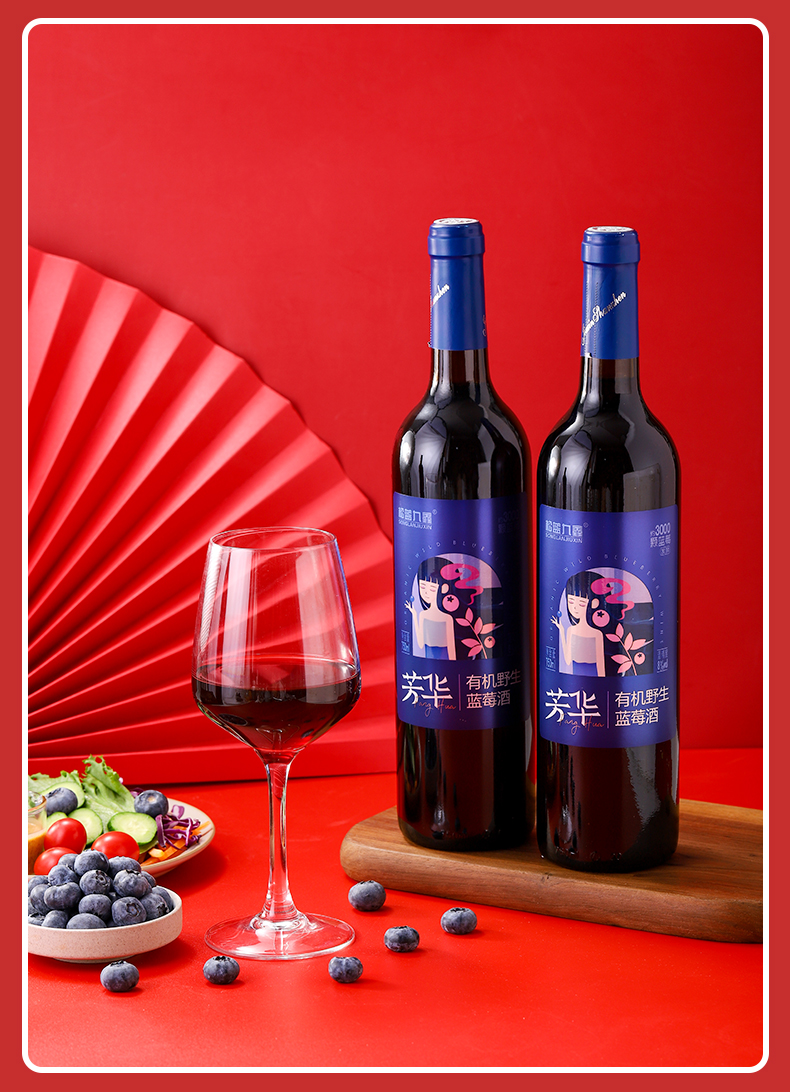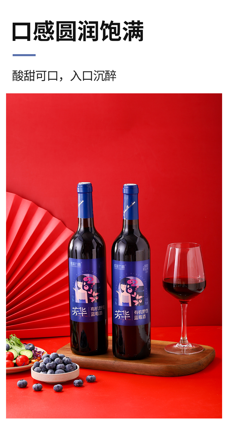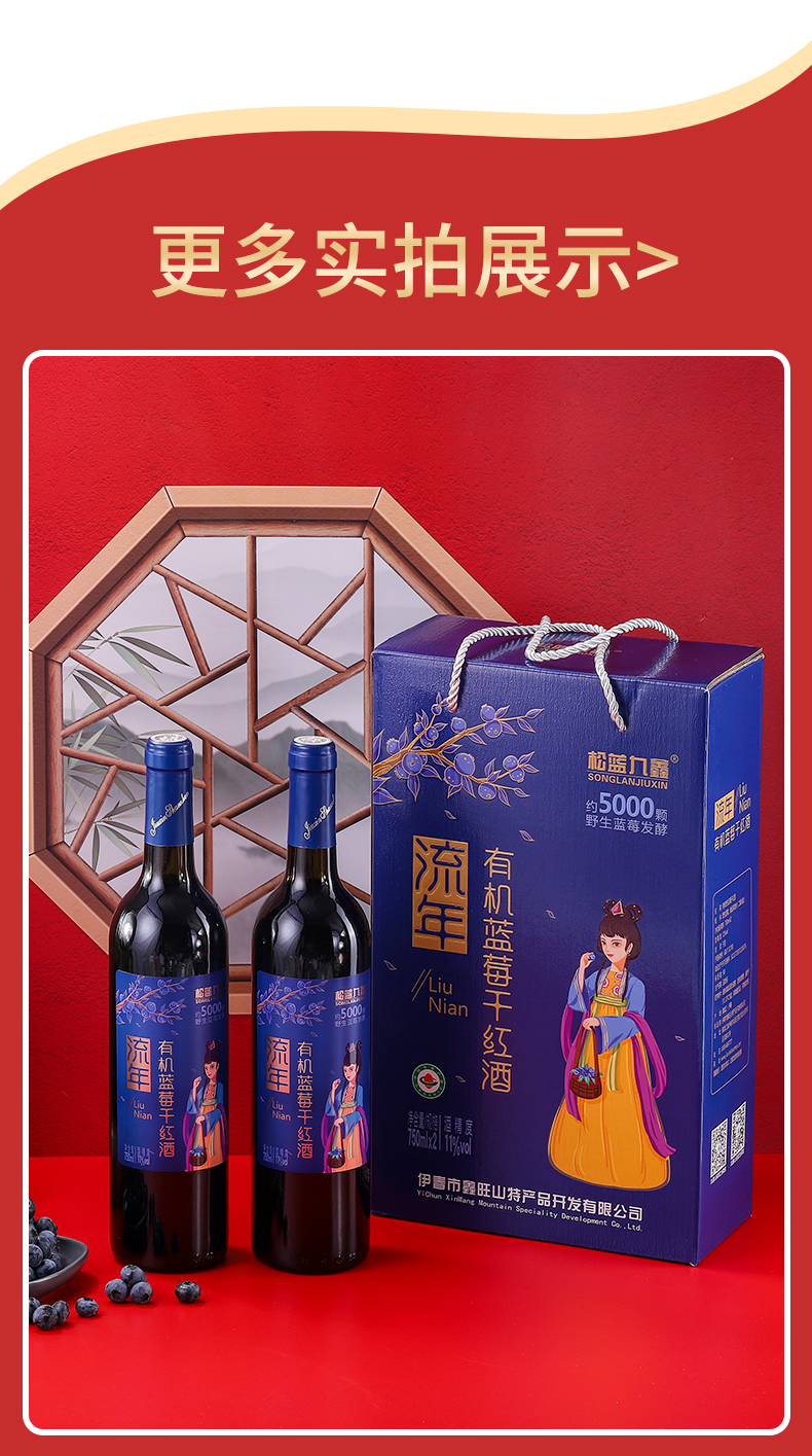 松蓝九鑫 流年有机野生蓝莓干红酒礼盒 750ml*2瓶/盒