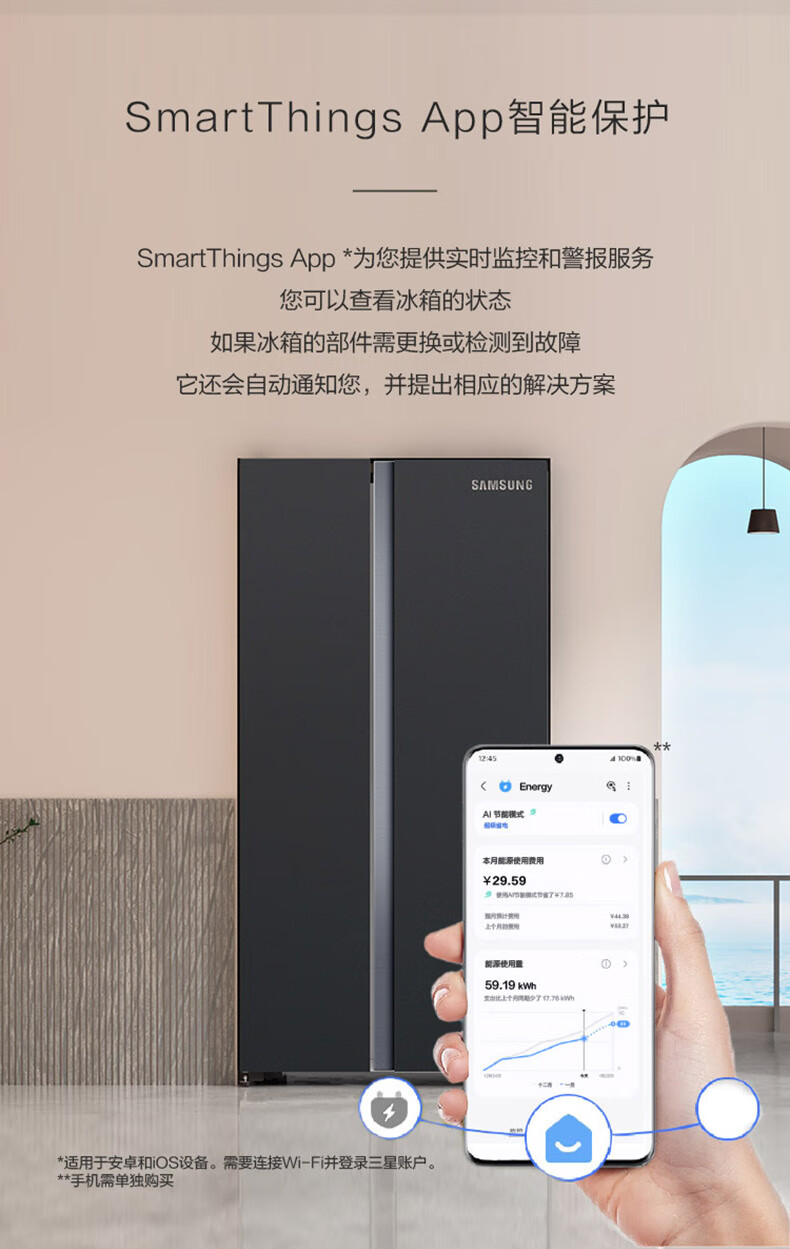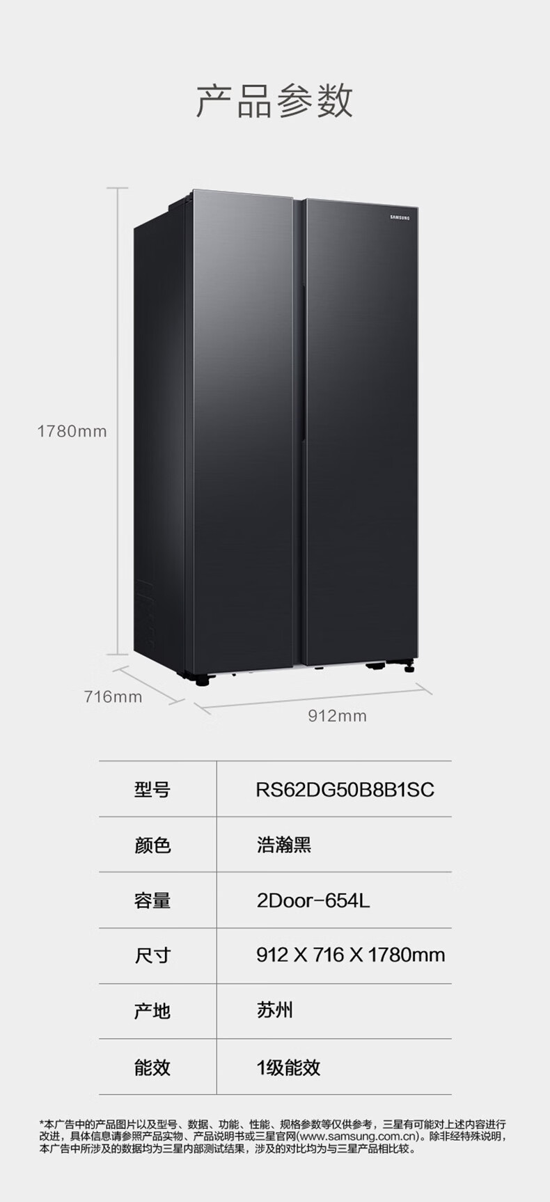 【24年新品】三星(SAMSUNG)654升三星AI神冰箱 双开门冰箱一级能效AI节能家用无霜冰箱超大容量RS62DG50B8B1SC 浩瀚黑