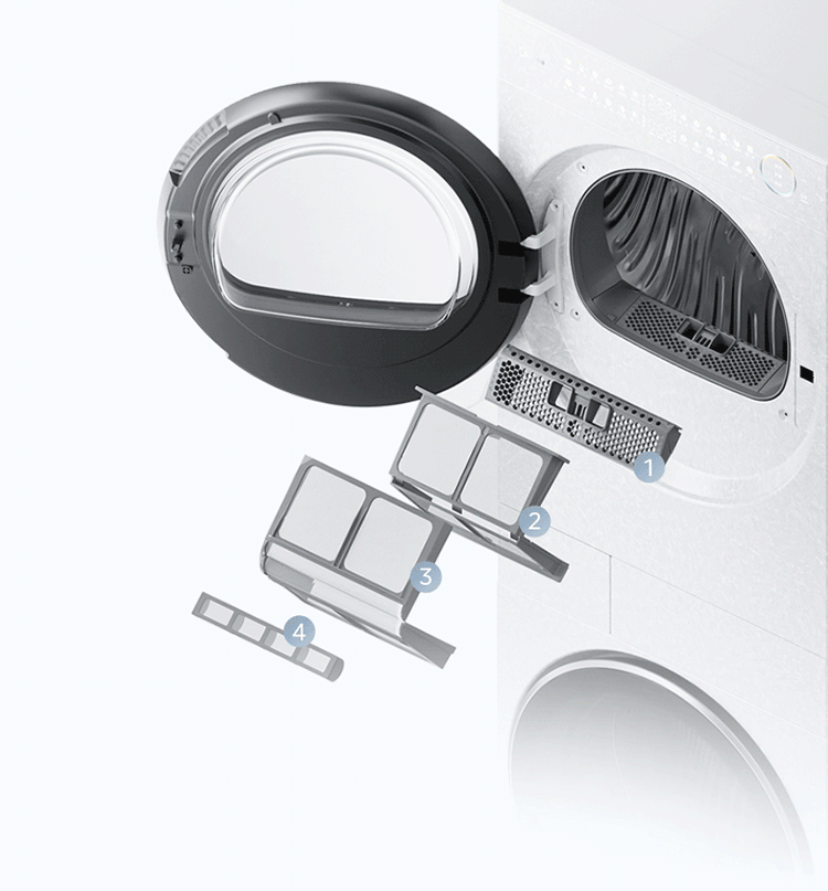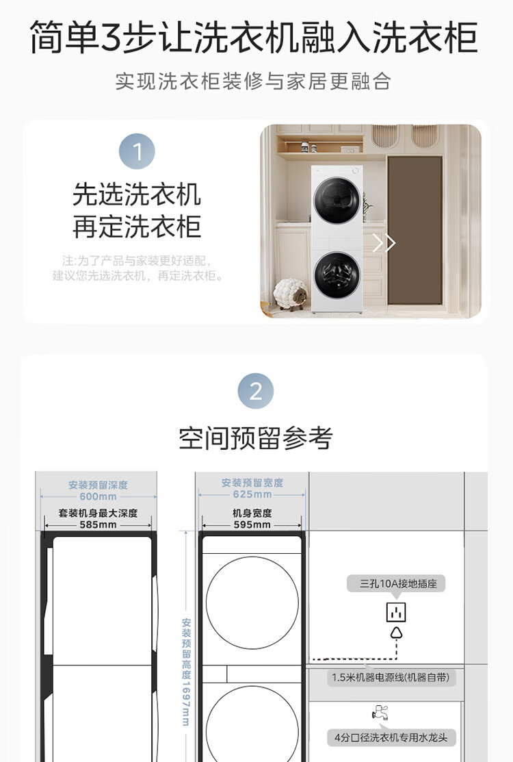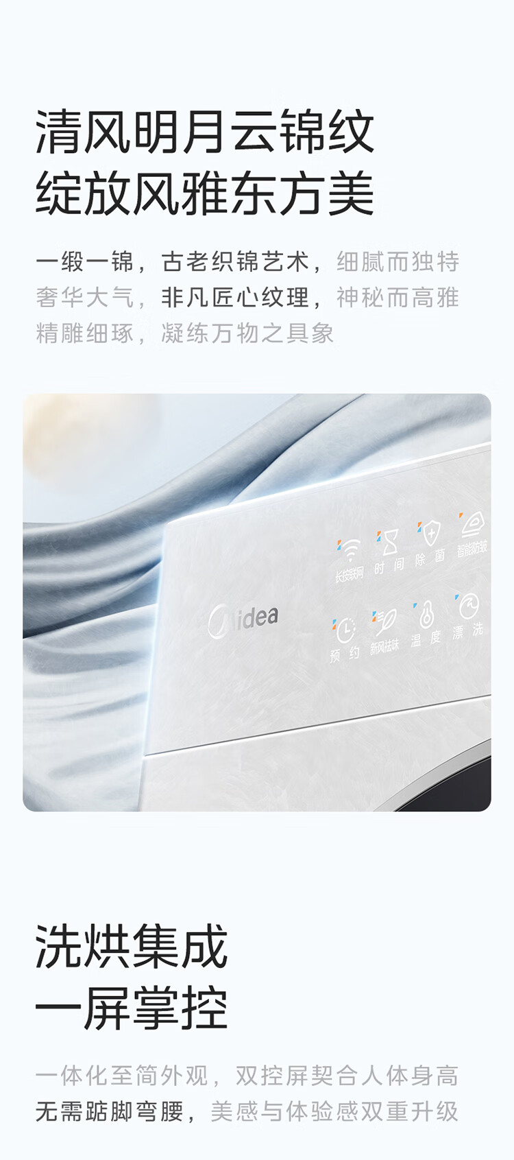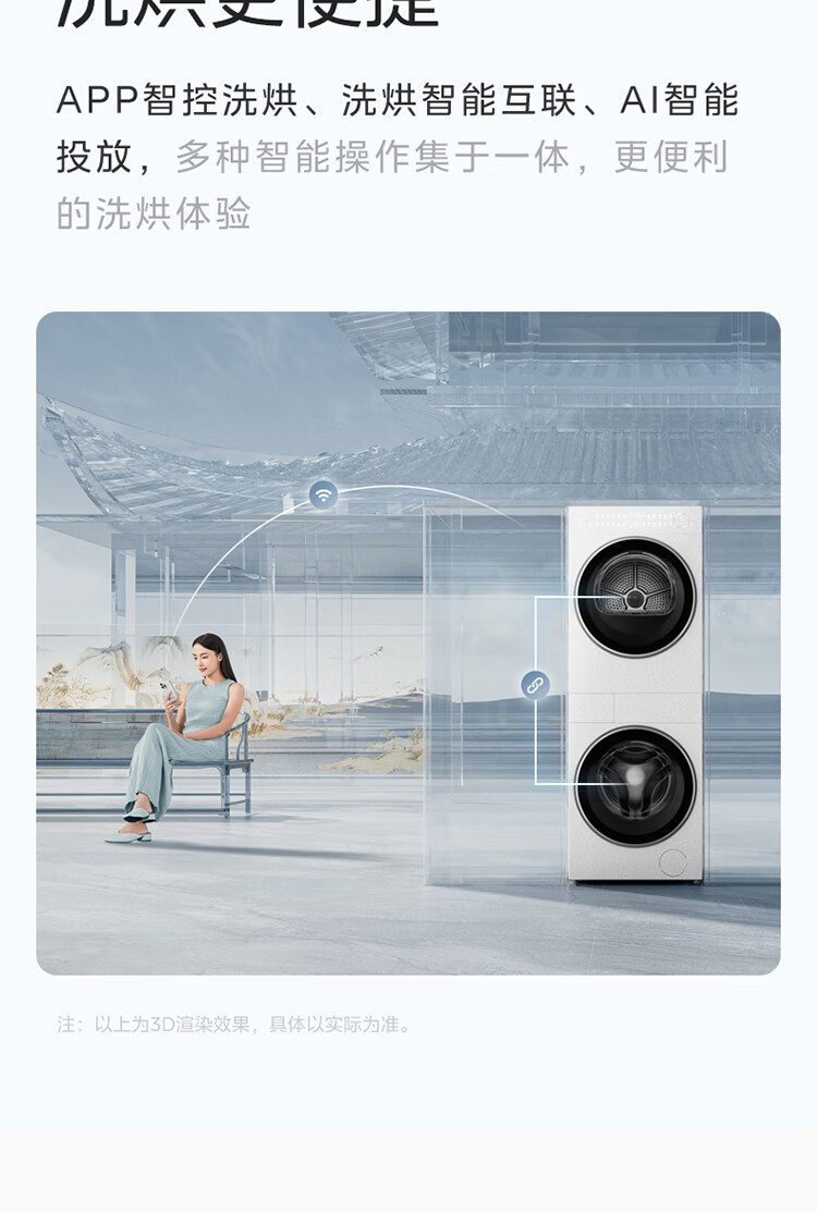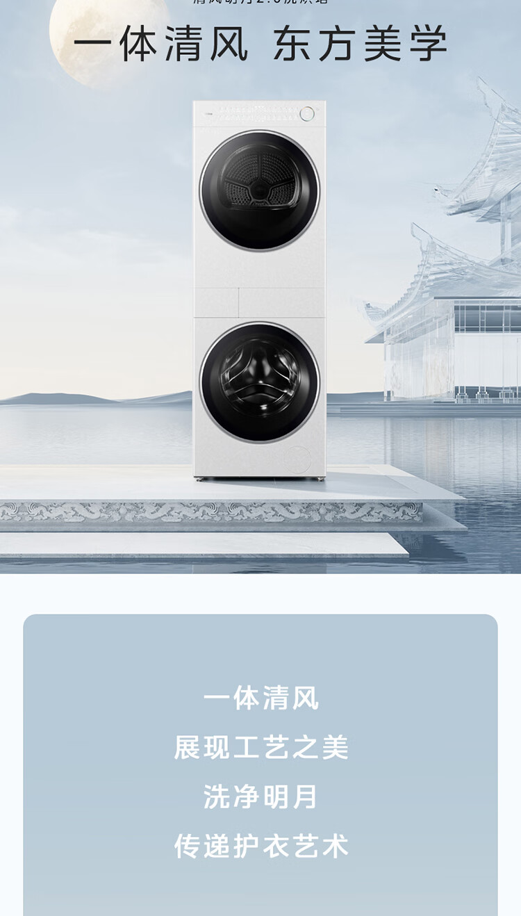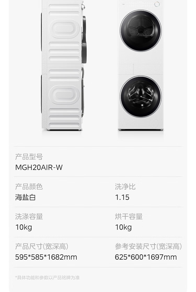 美的洗烘套装MGH20A(洗)-W+MGH20L5(护) 10KG滚筒洗衣机+变频热泵烘干机【清风明月2.0洗烘塔