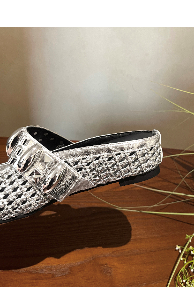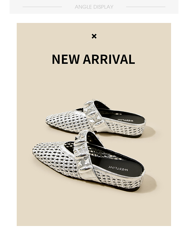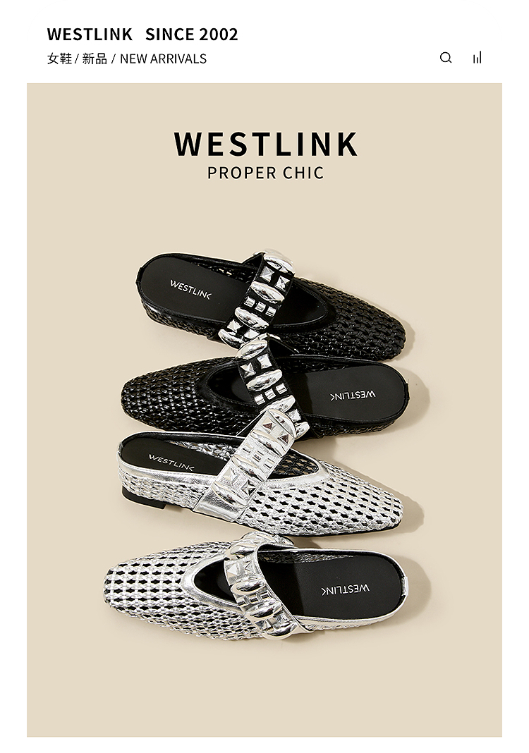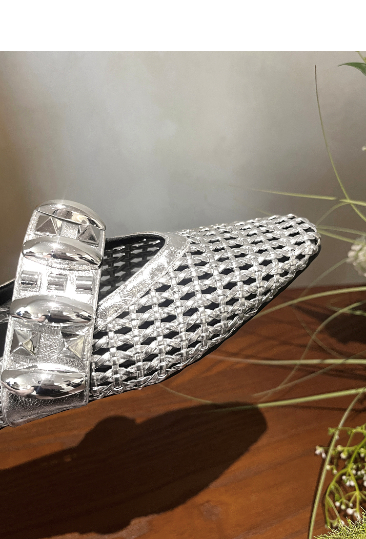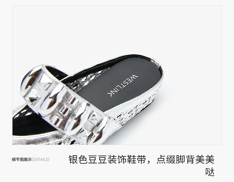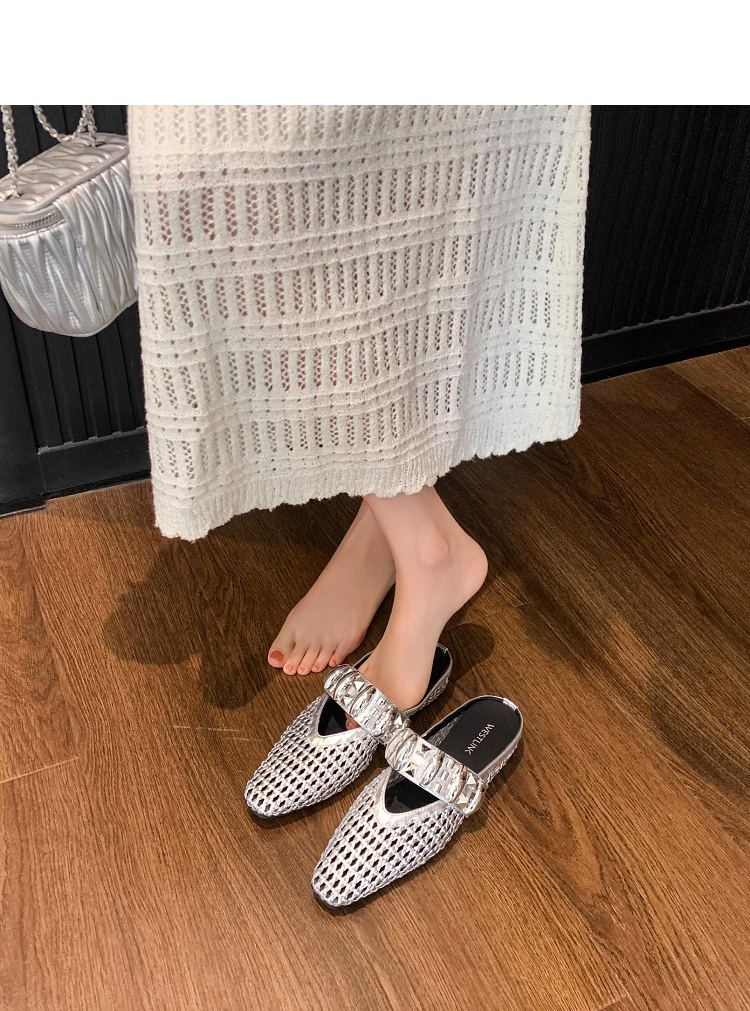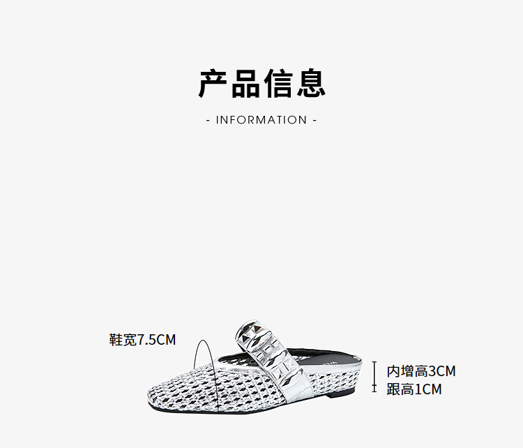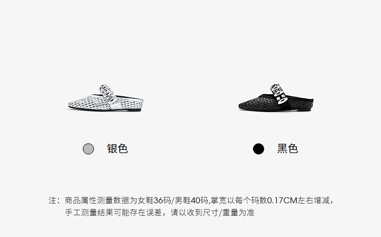 西遇一脚蹬包头半拖女新款秋季绝美编织镂空银色单鞋外穿拖鞋V1456906