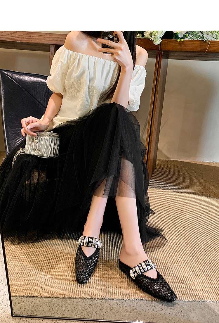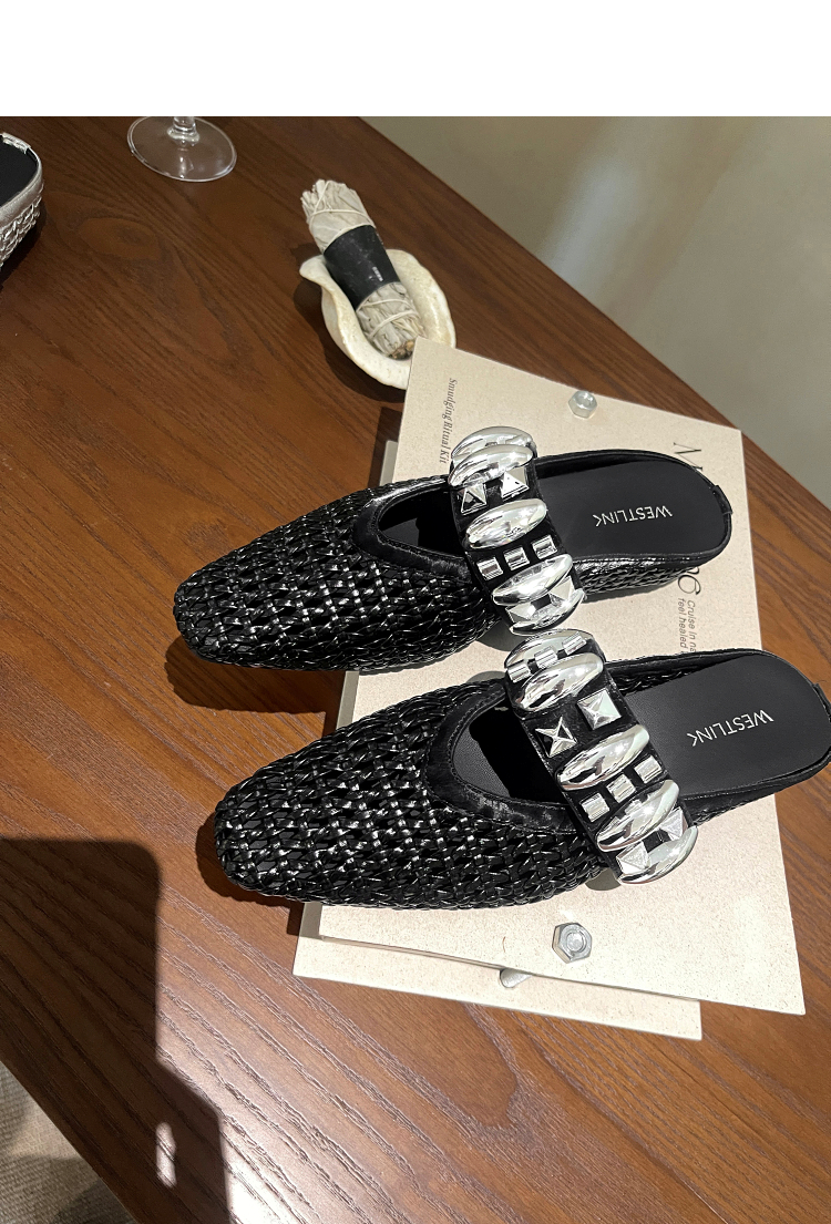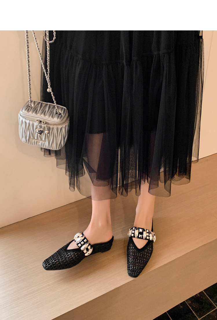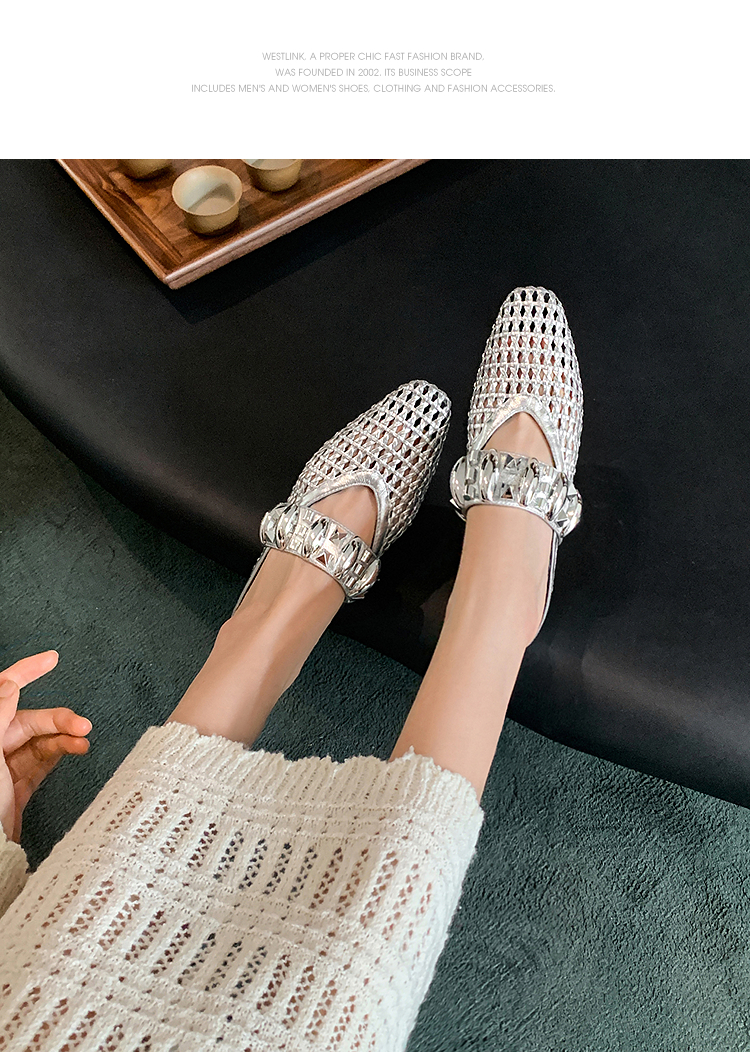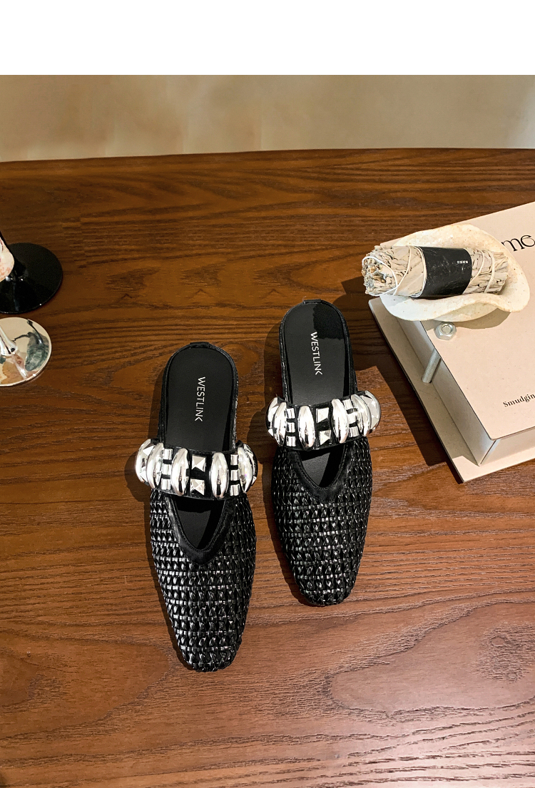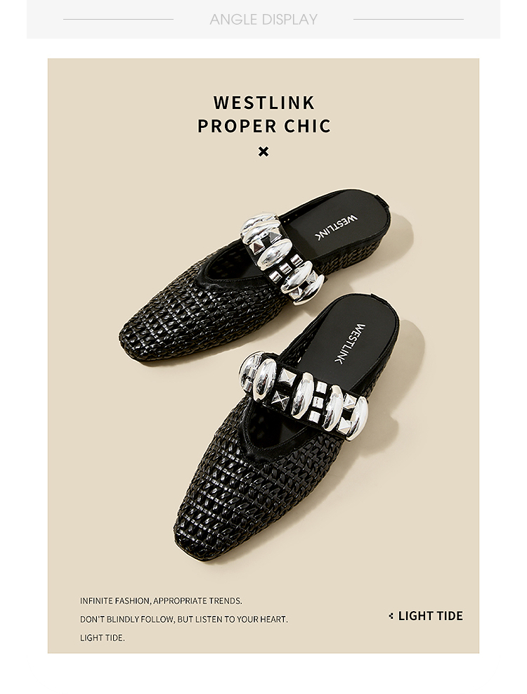 西遇一脚蹬包头半拖女新款秋季绝美编织镂空银色单鞋外穿拖鞋V1456906