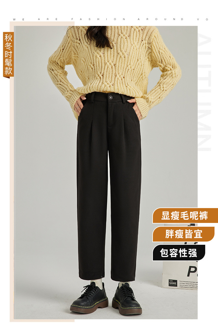「三色可选!质感有型」2023秋冬毛呢哈伦防风裤女新款小脚裤韩版显瘦休闲萝卜裤时尚修身下装