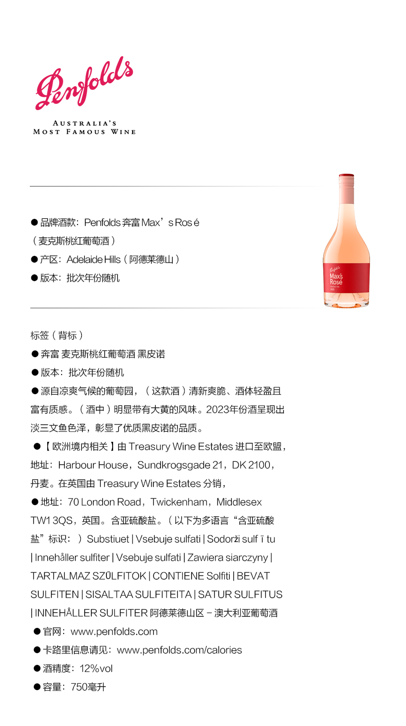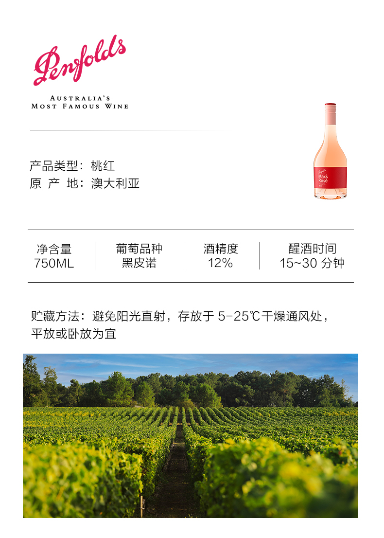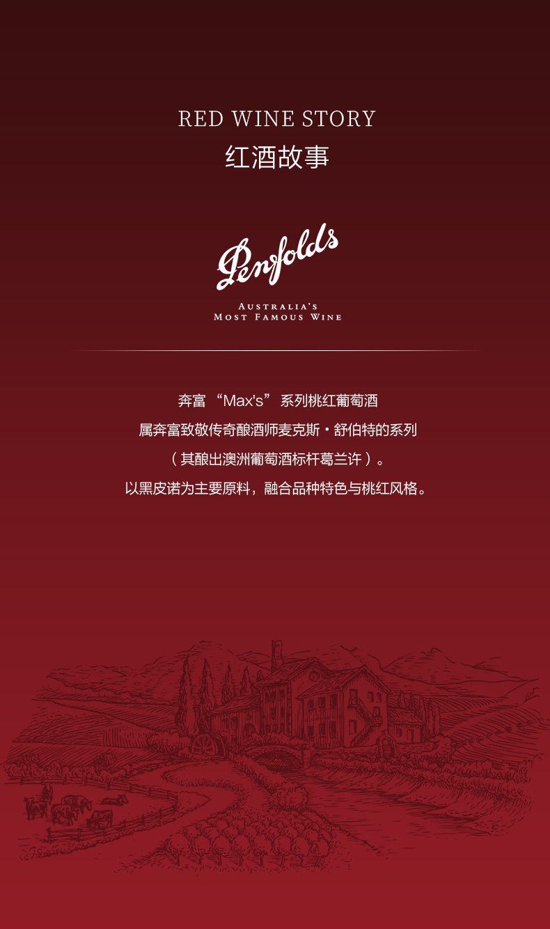 奔富(Penfolds)麦克斯桃红葡萄酒裸瓶旋盖750ml单支 澳洲原产【保税进口】