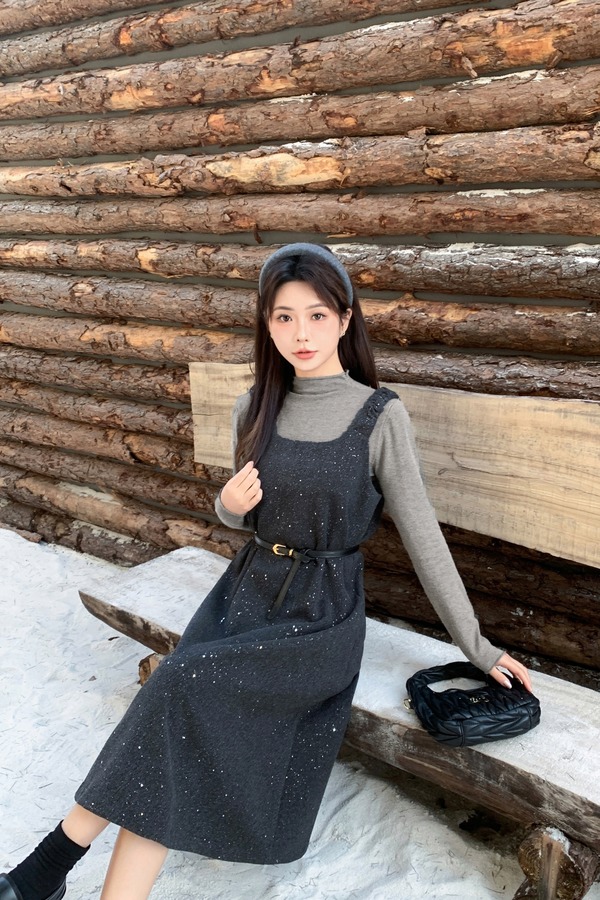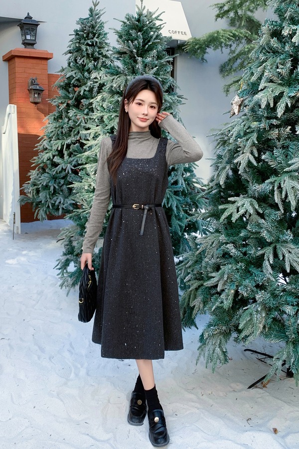 amadella 复古气质背心连衣裙+打底衫套装 21914