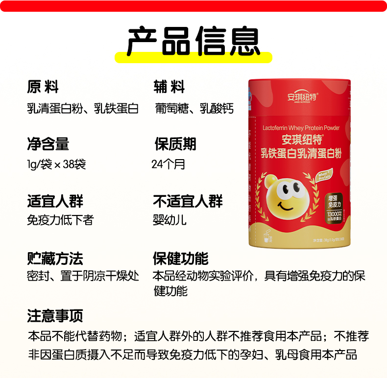 【New】安琪纽特乳铁蛋白乳清蛋白粉 38袋/罐