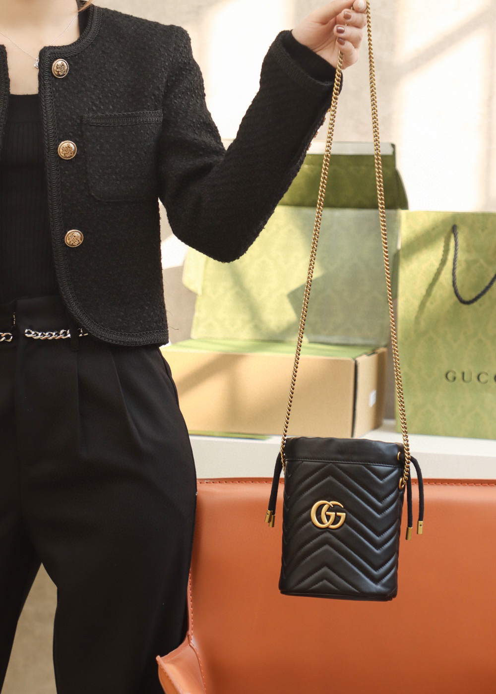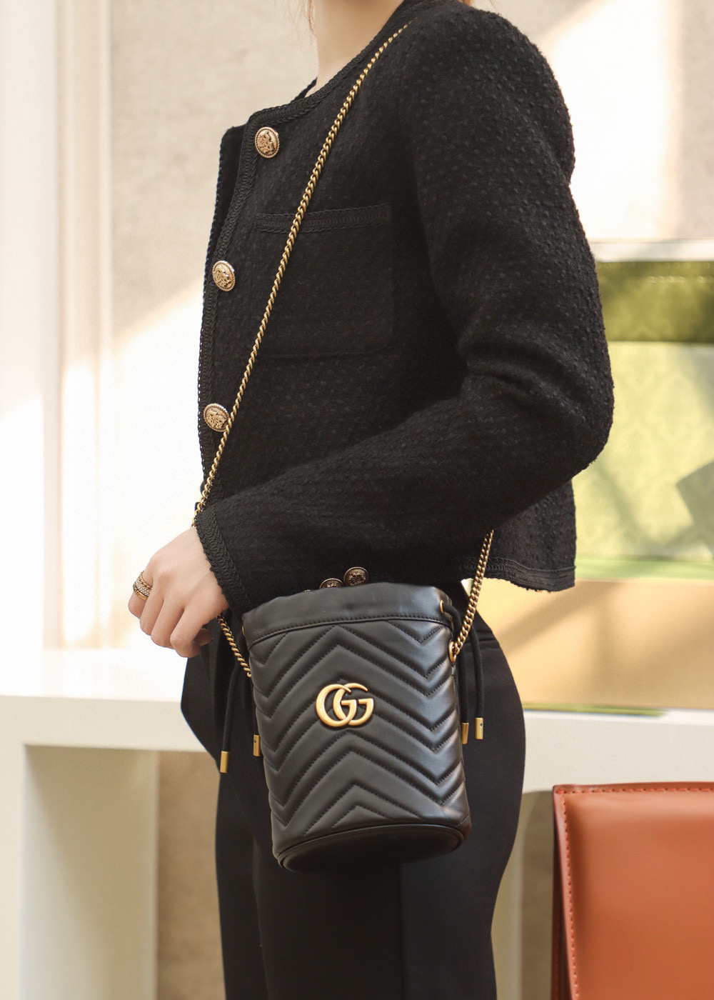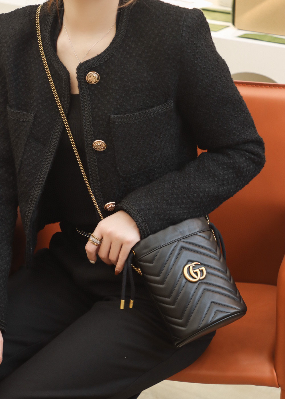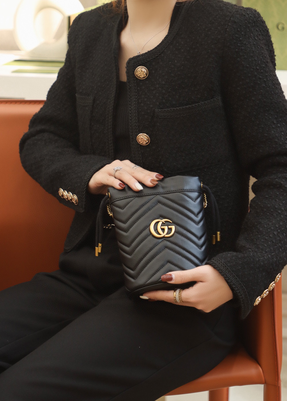 包身正面以经典的姿态𝐆𝐆标志✅五金呈现,