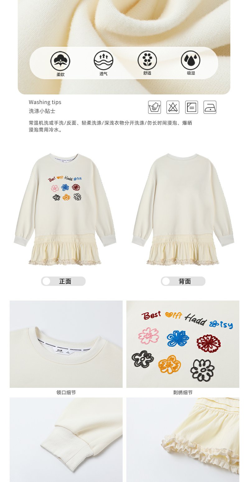 【169元任选2件】现货!杏色彩色绣花卫衣裙