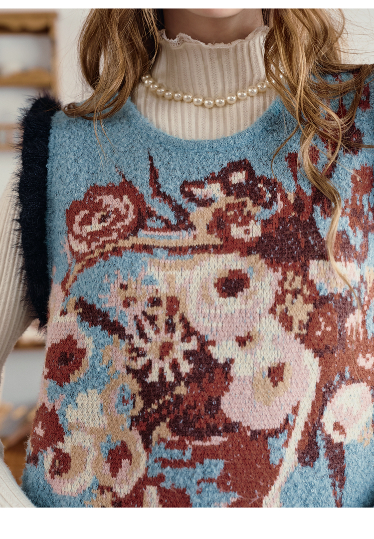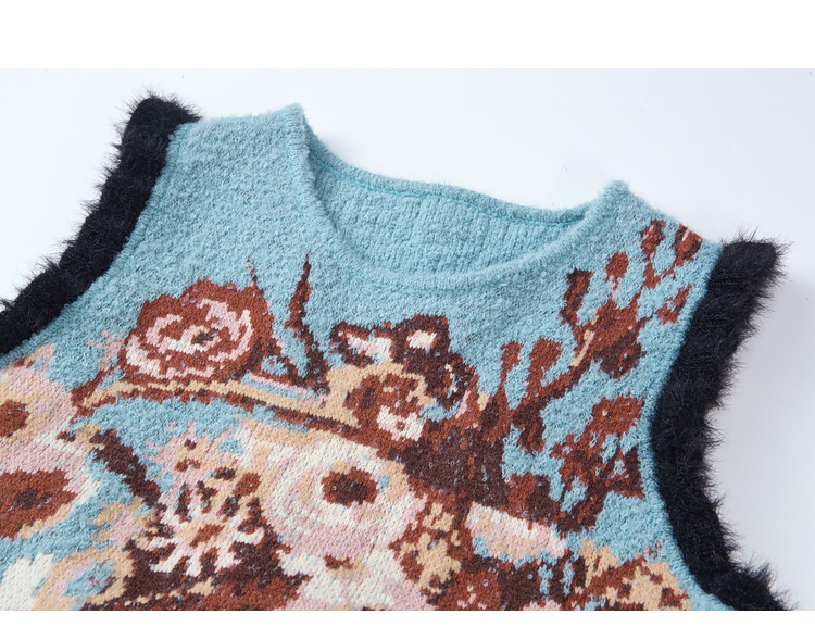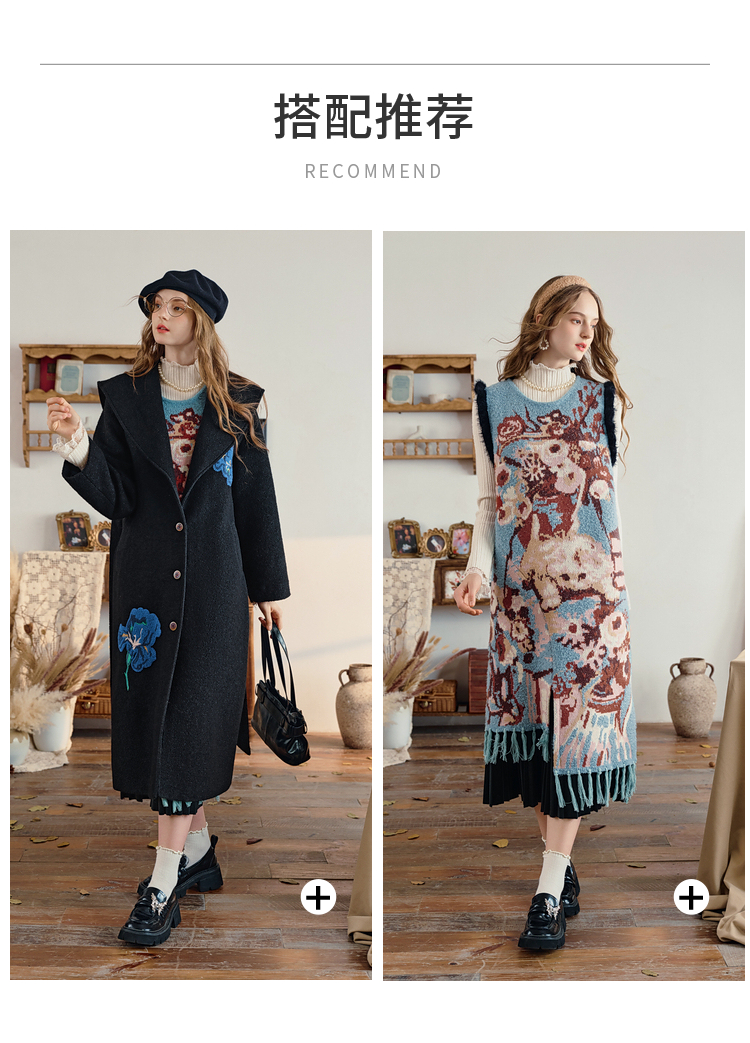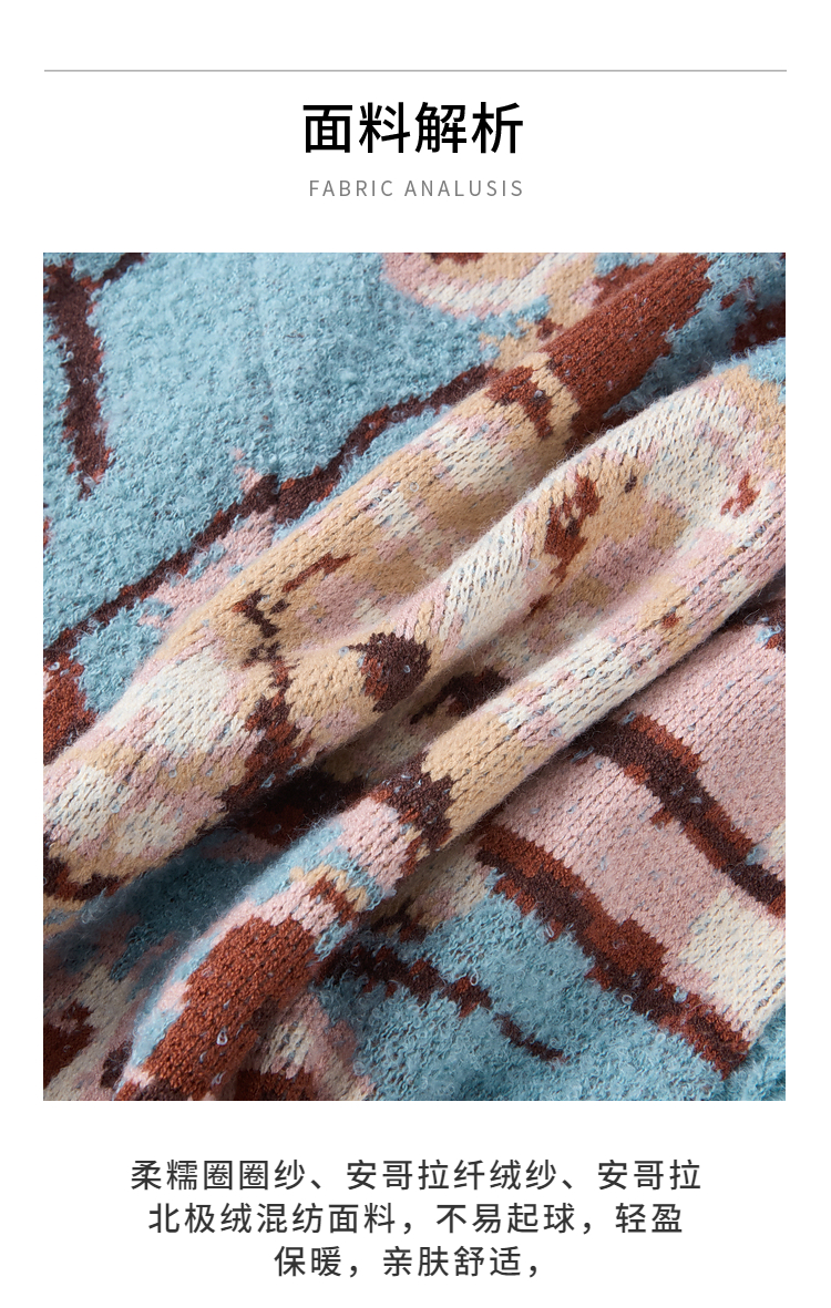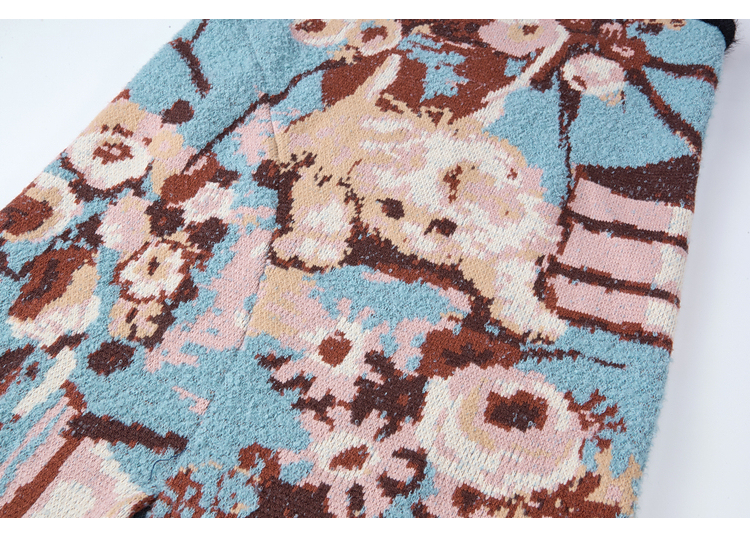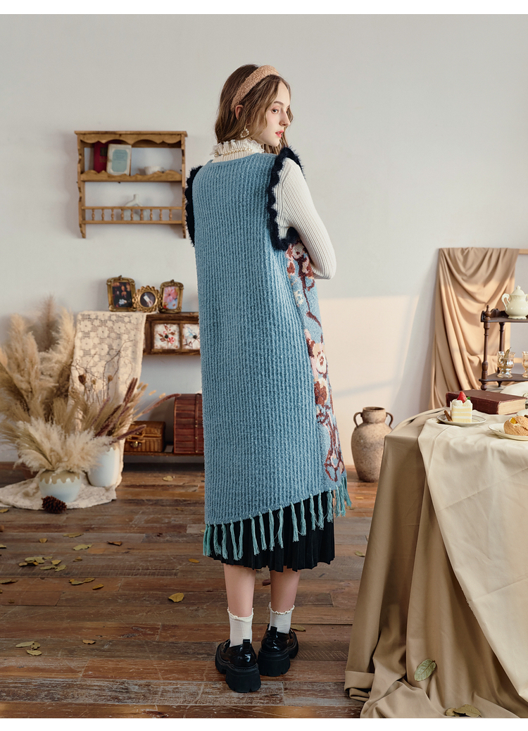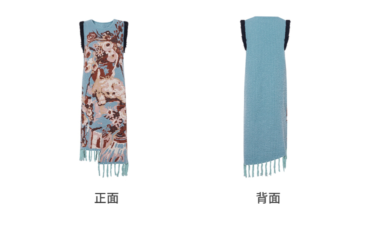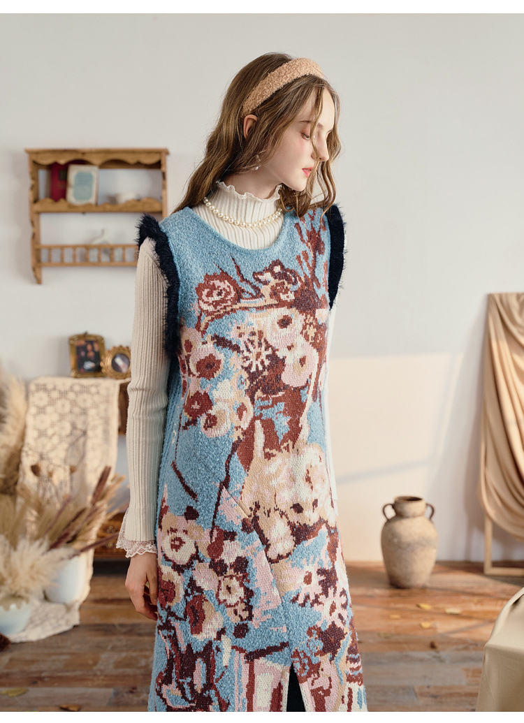 两三事绒绒假日2025冬季新款复古流苏不对称下摆花色毛衣裙连衣裙
