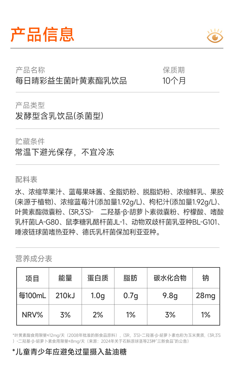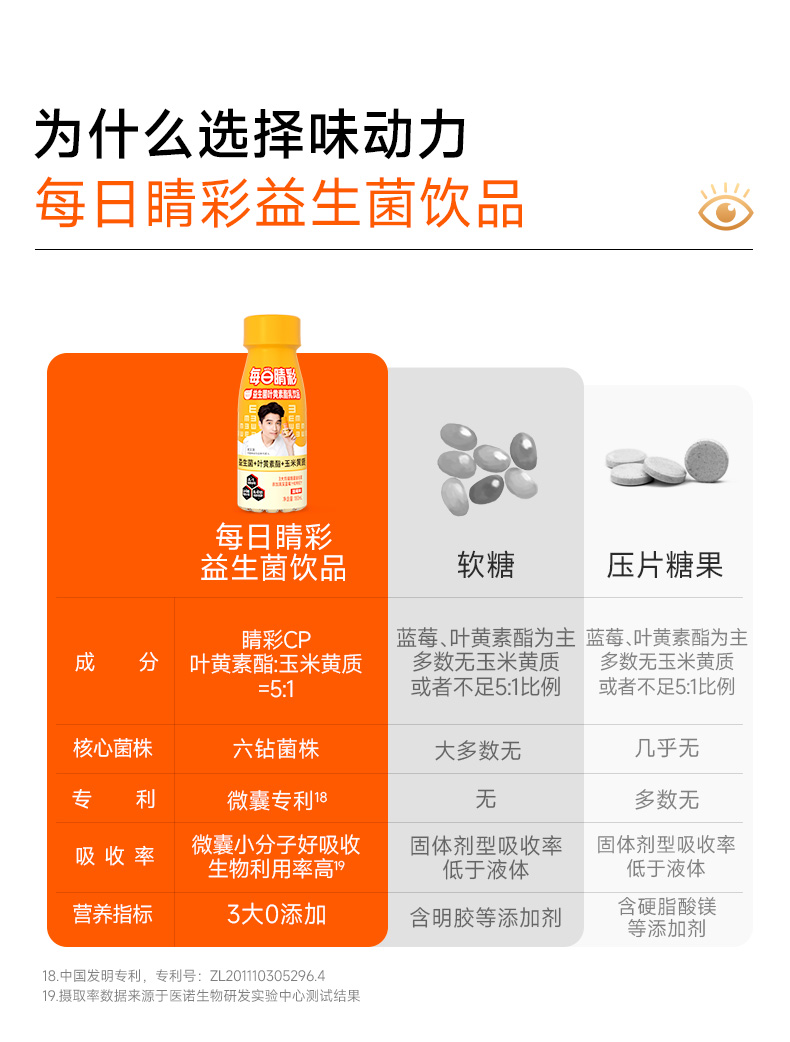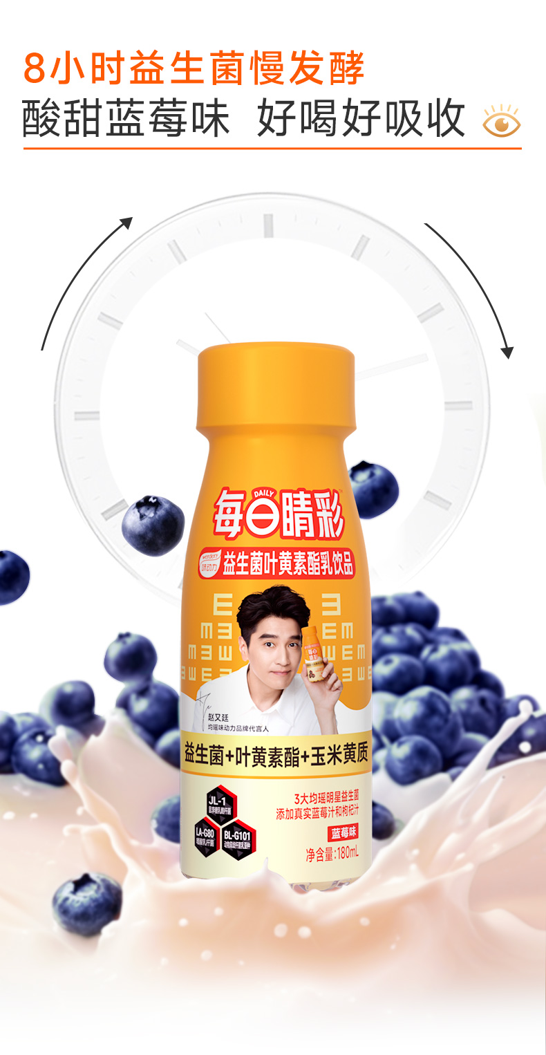 【赵又廷同款】味动力每日睛彩叶黄素脂科学配比蓝莓味180ml*10/箱