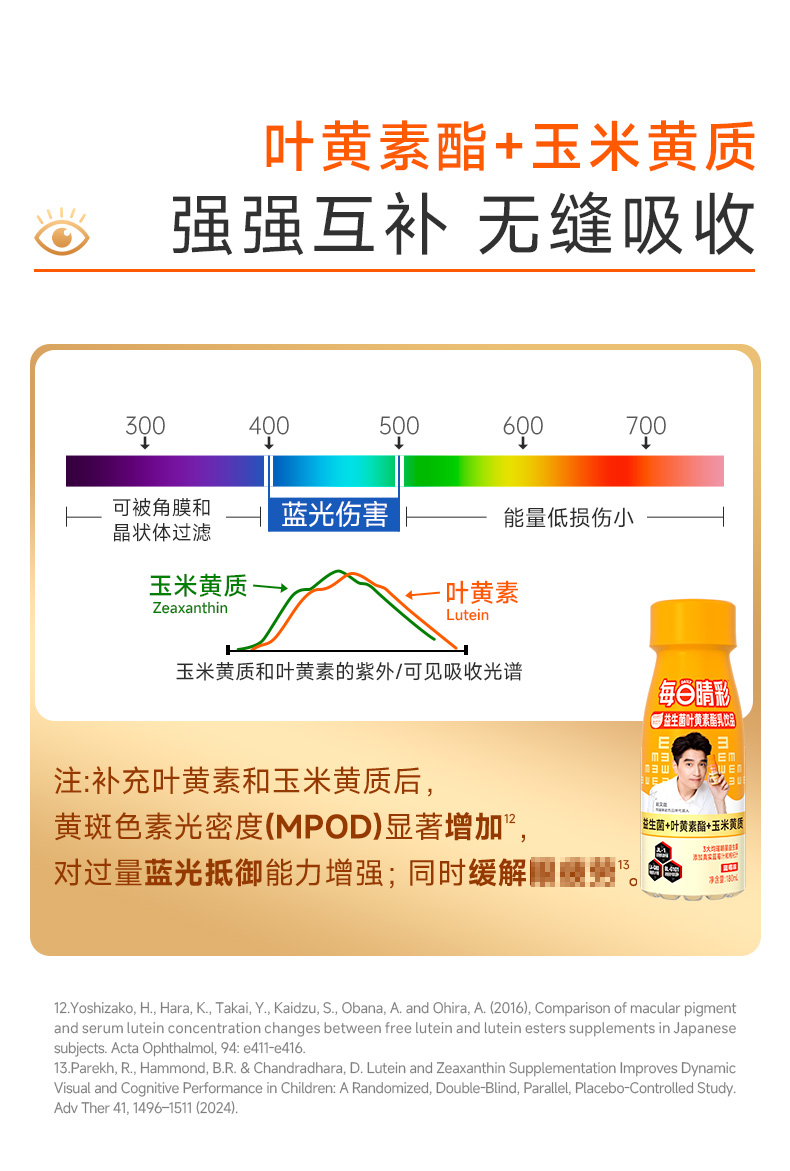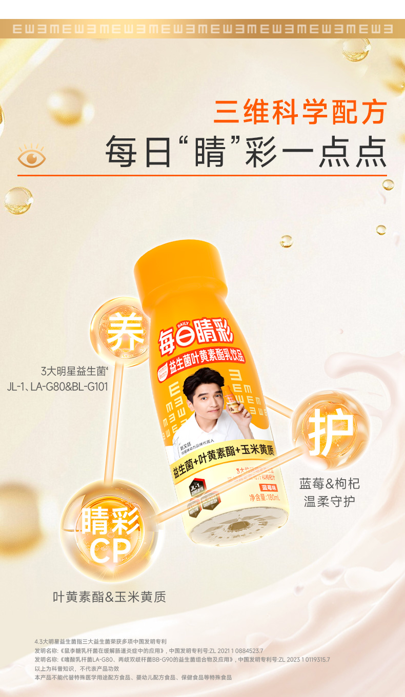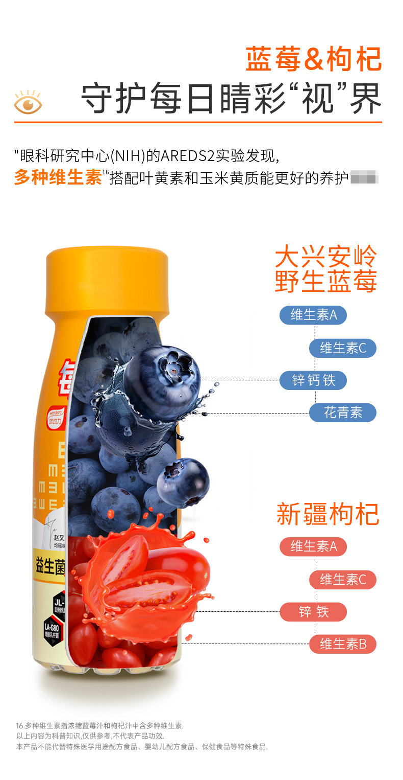 【赵又廷同款】味动力每日睛彩叶黄素脂科学配比蓝莓味180ml*10/箱