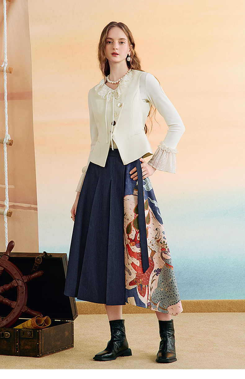 两三事镜花影春夏新款古风网纱蕾丝复古气质日常半身裙