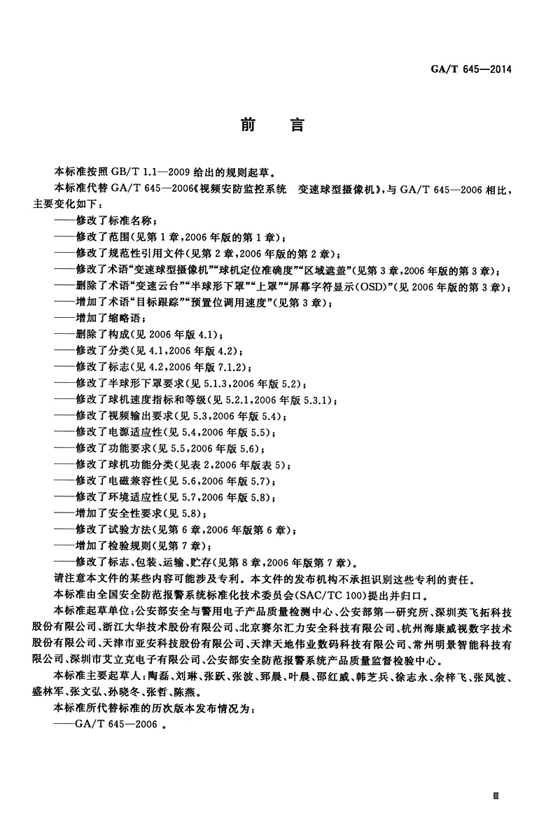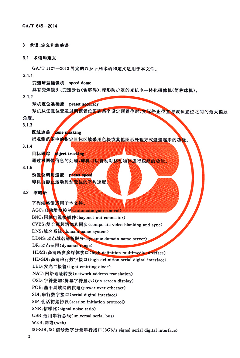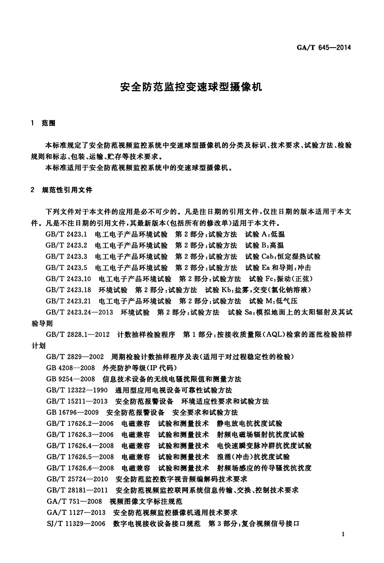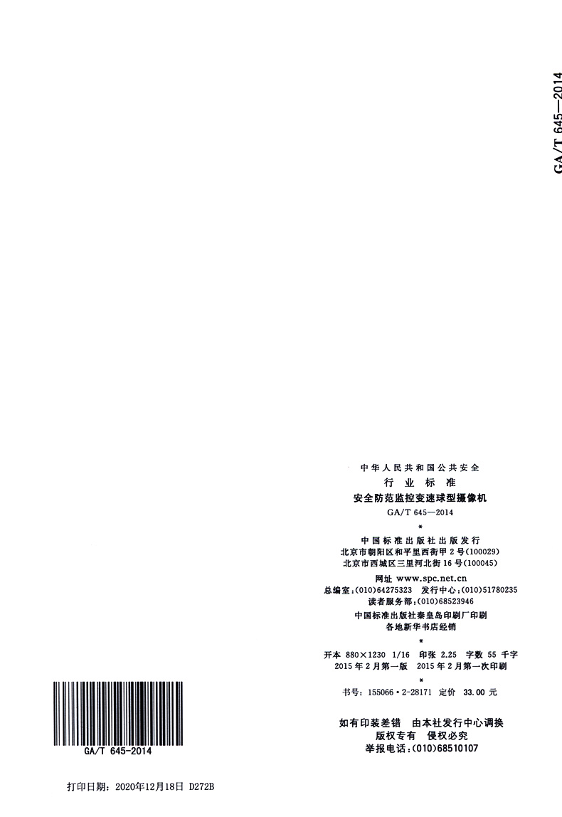 书名:速印不退 GA/T 645-2014安全防范监控变速球型摄像机