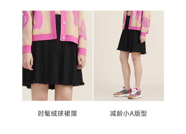 谜底针织半裙女2022秋新款时尚百搭半身裙伞裙短裙223MZ1319