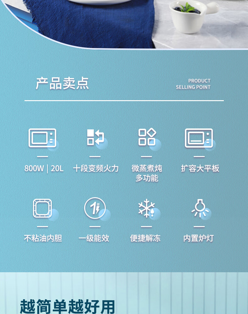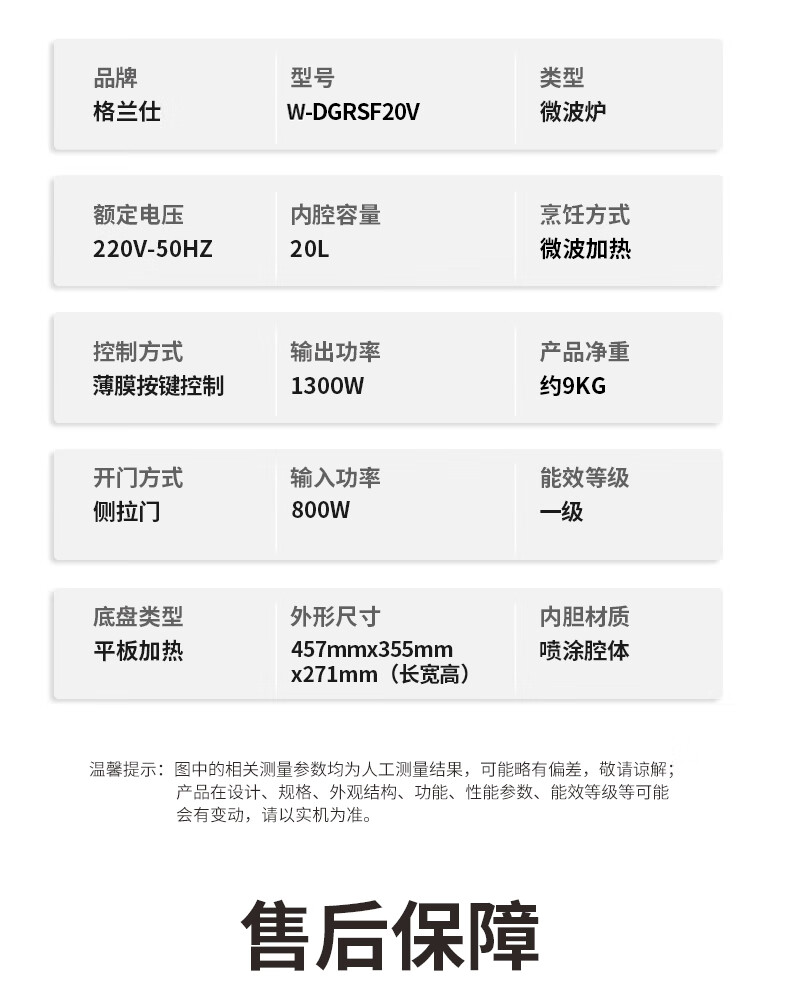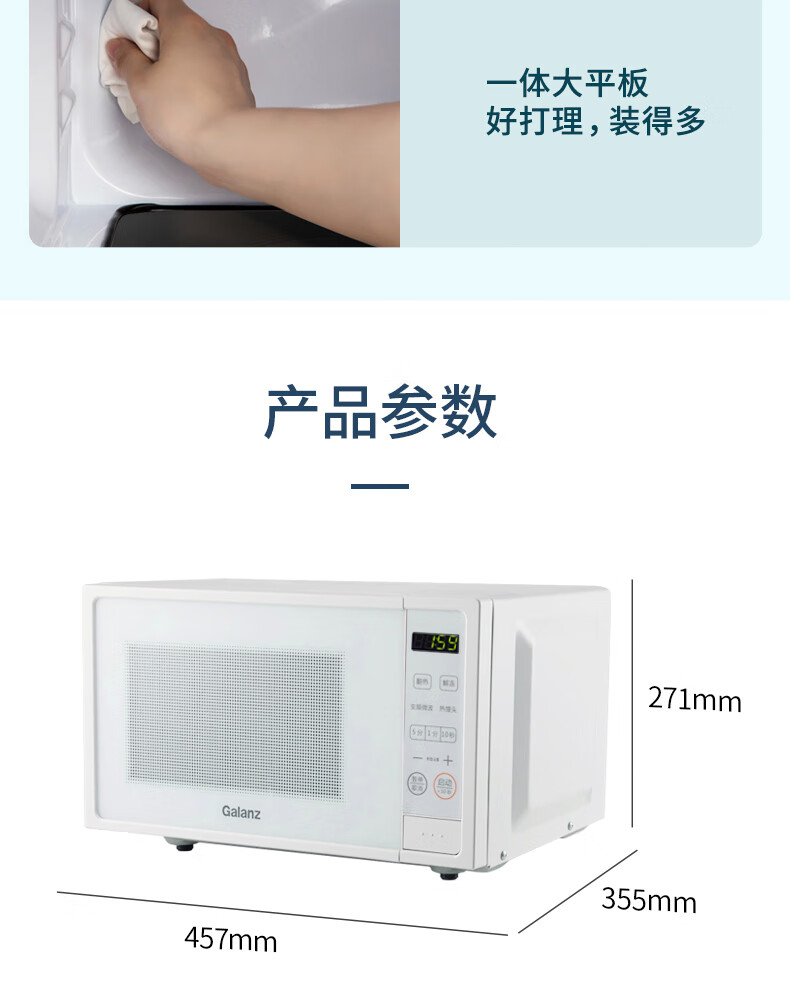 【小家电】格兰仕Galanz家用型微波炉 20L大容量涂层内胆便捷操作平板加热微波炉轻音降噪W-DGRSF20V HF