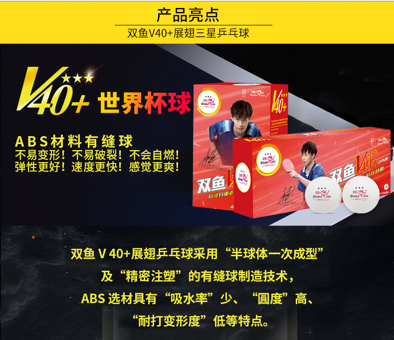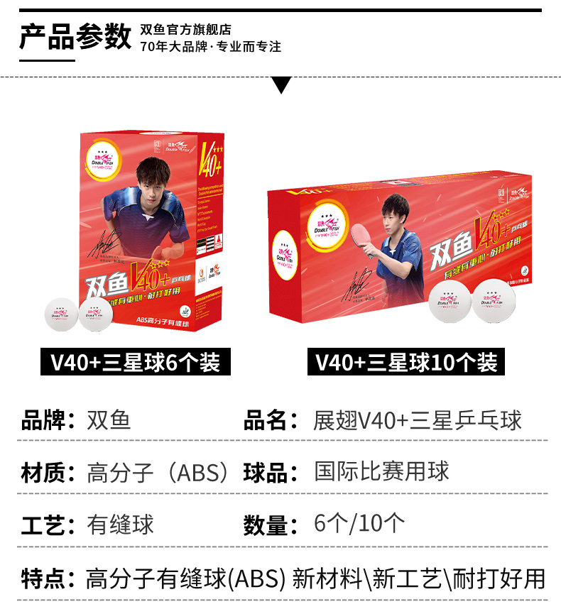 双鱼三星乒乓球国际比赛专用球室内训练比赛耐打正品乒乓球(10个装)