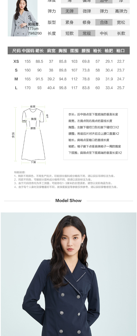 PRICH2022年春季新款气质优雅翻领职场A字西装式连衣裙PROWC1101E