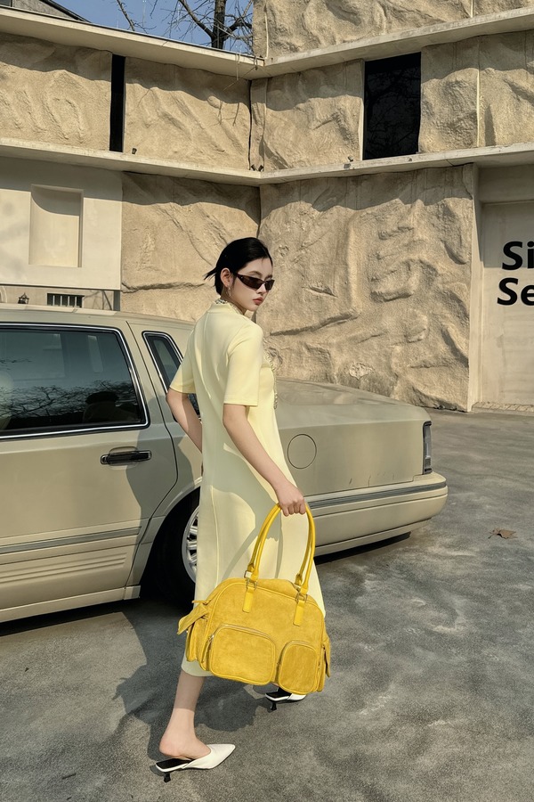 AVA 黄色荷叶边收腰连衣裙 2893