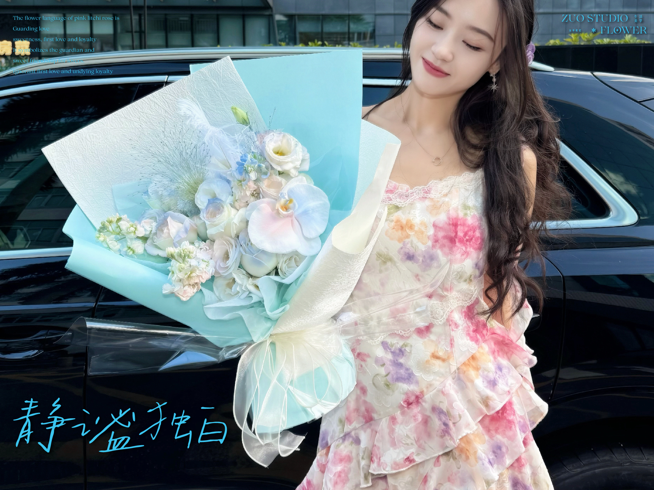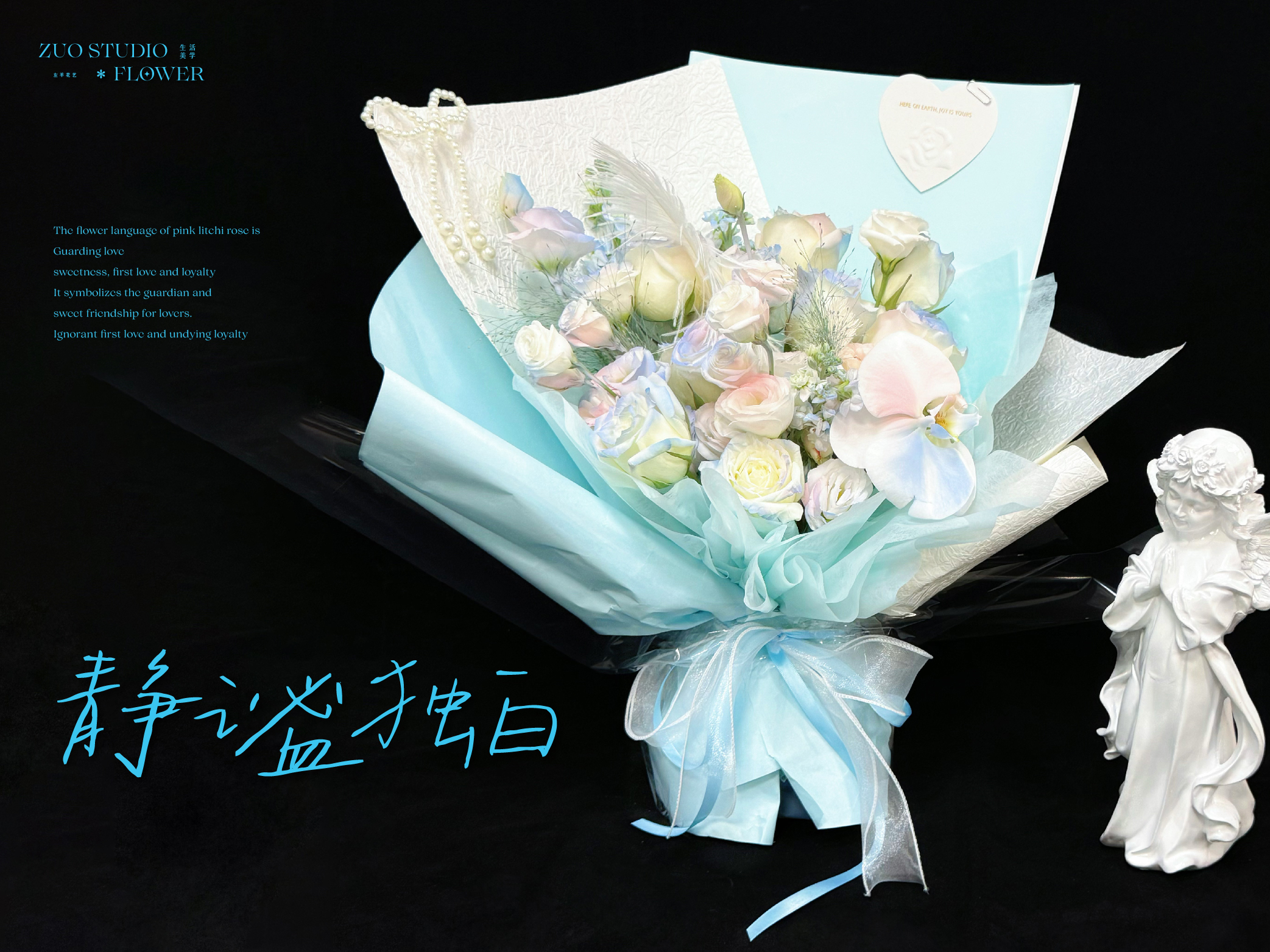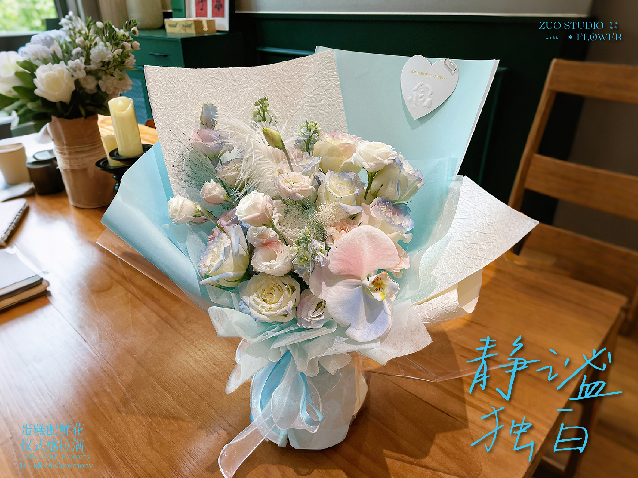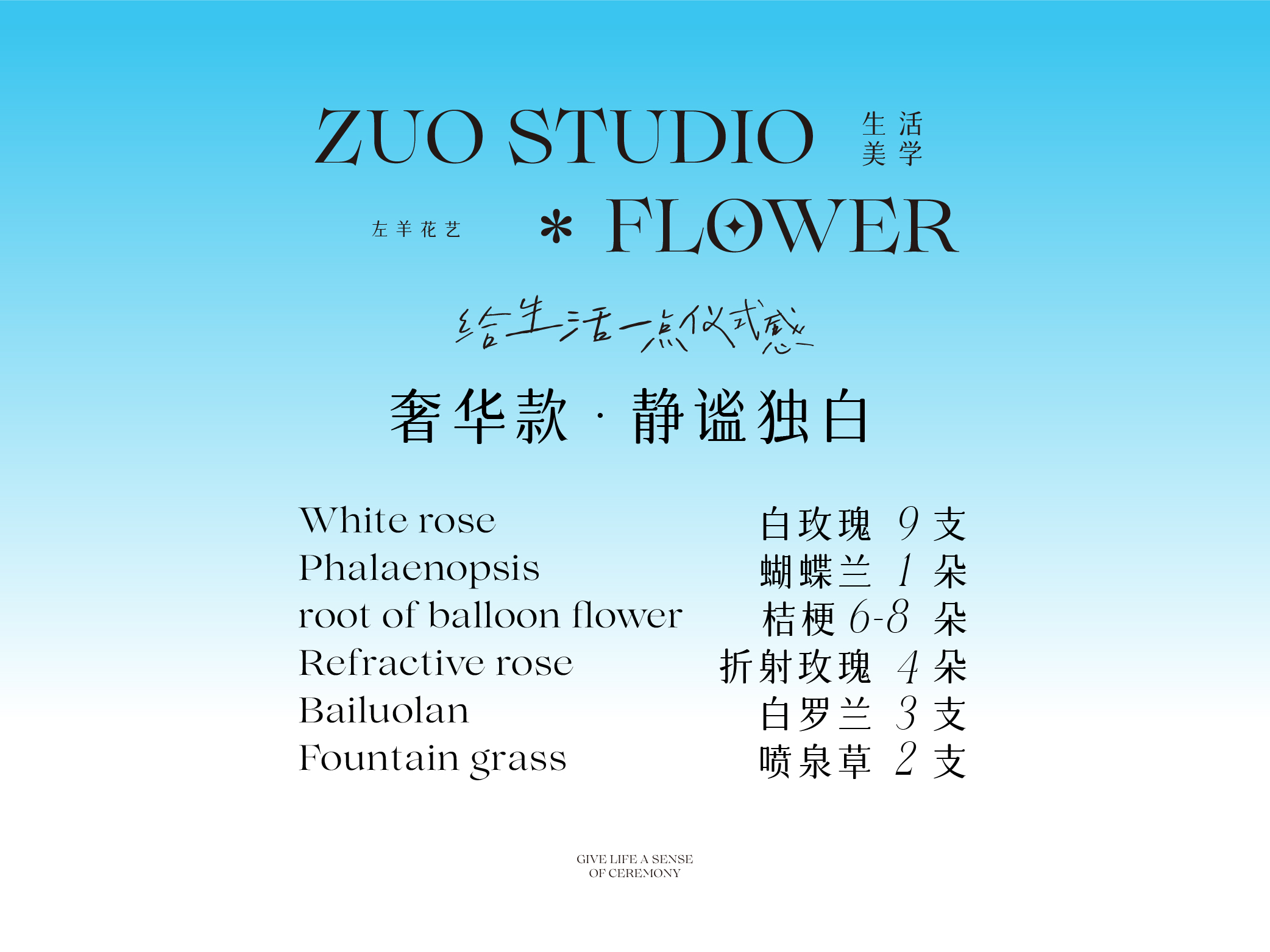 奢华款【静谧独白】白玫瑰9支/蝴蝶兰1朵/桔梗6-8朵/折射玫瑰4朵/白罗兰3支 /喷泉草2支/氛围感鲜花/仪式感鲜花