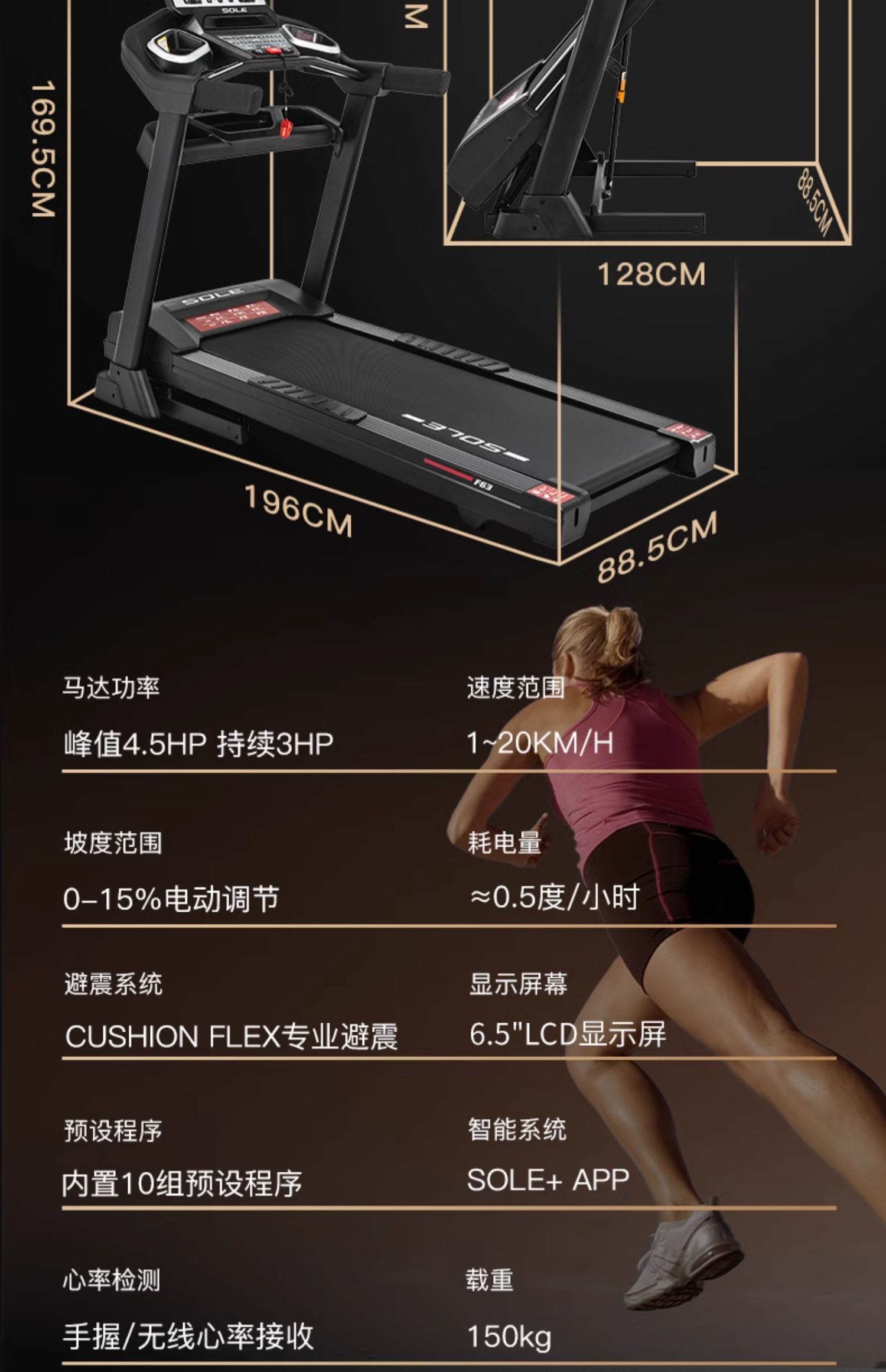 sole 速尔 F63S 保护膝盖跑步机