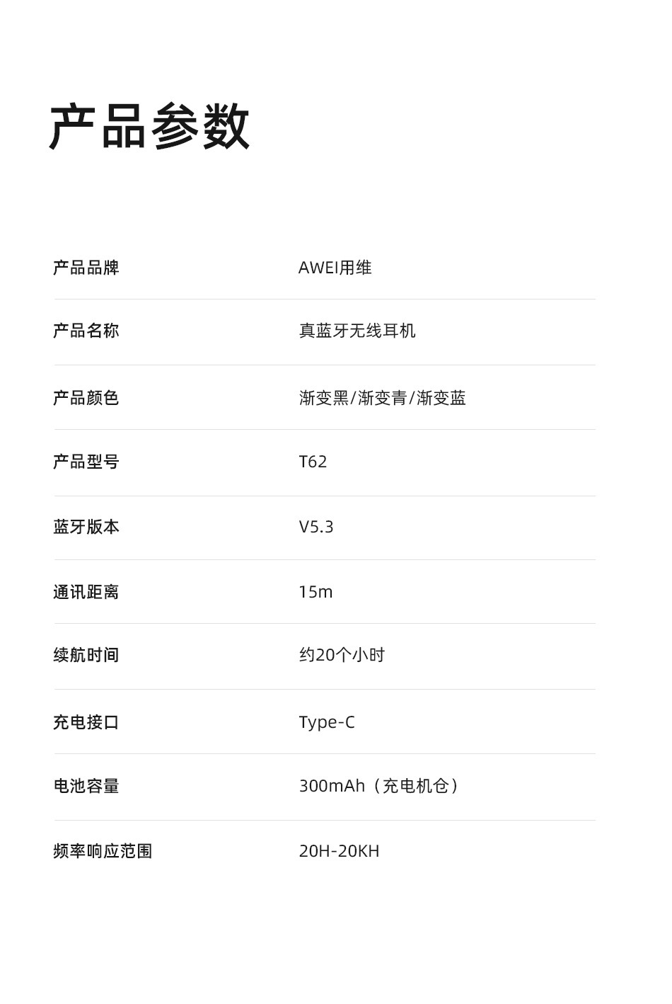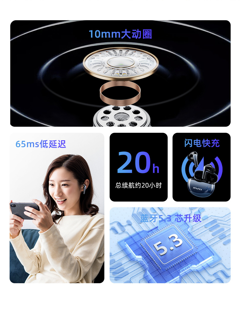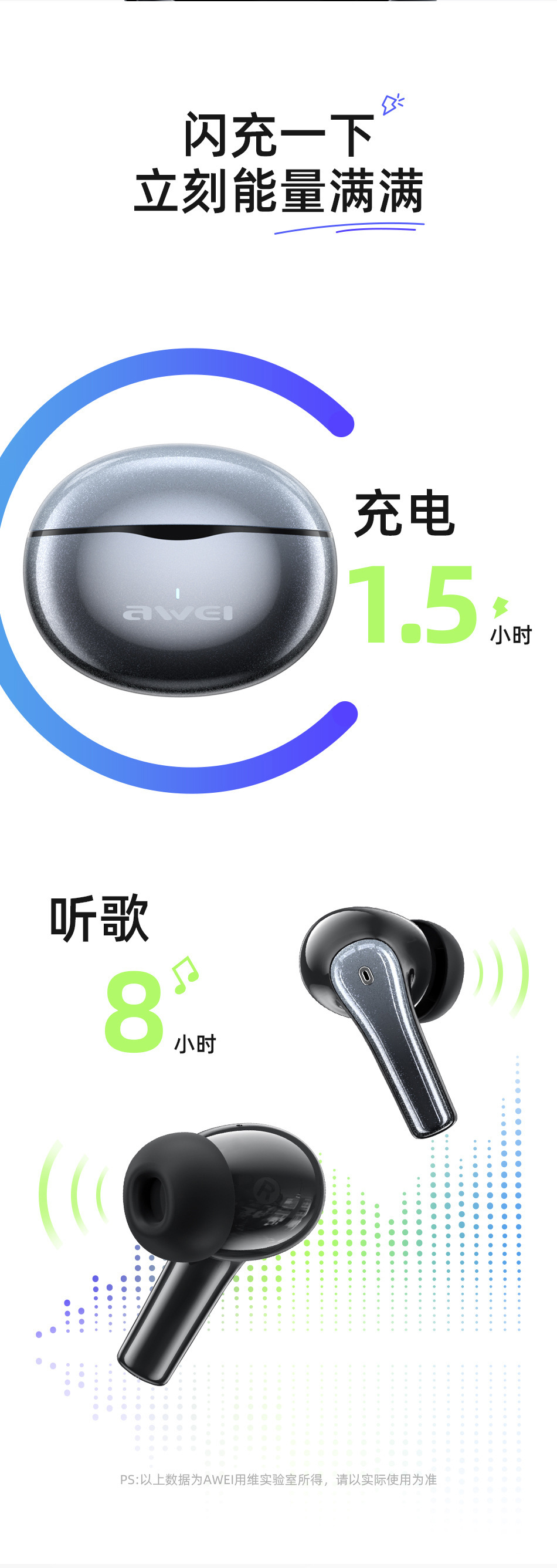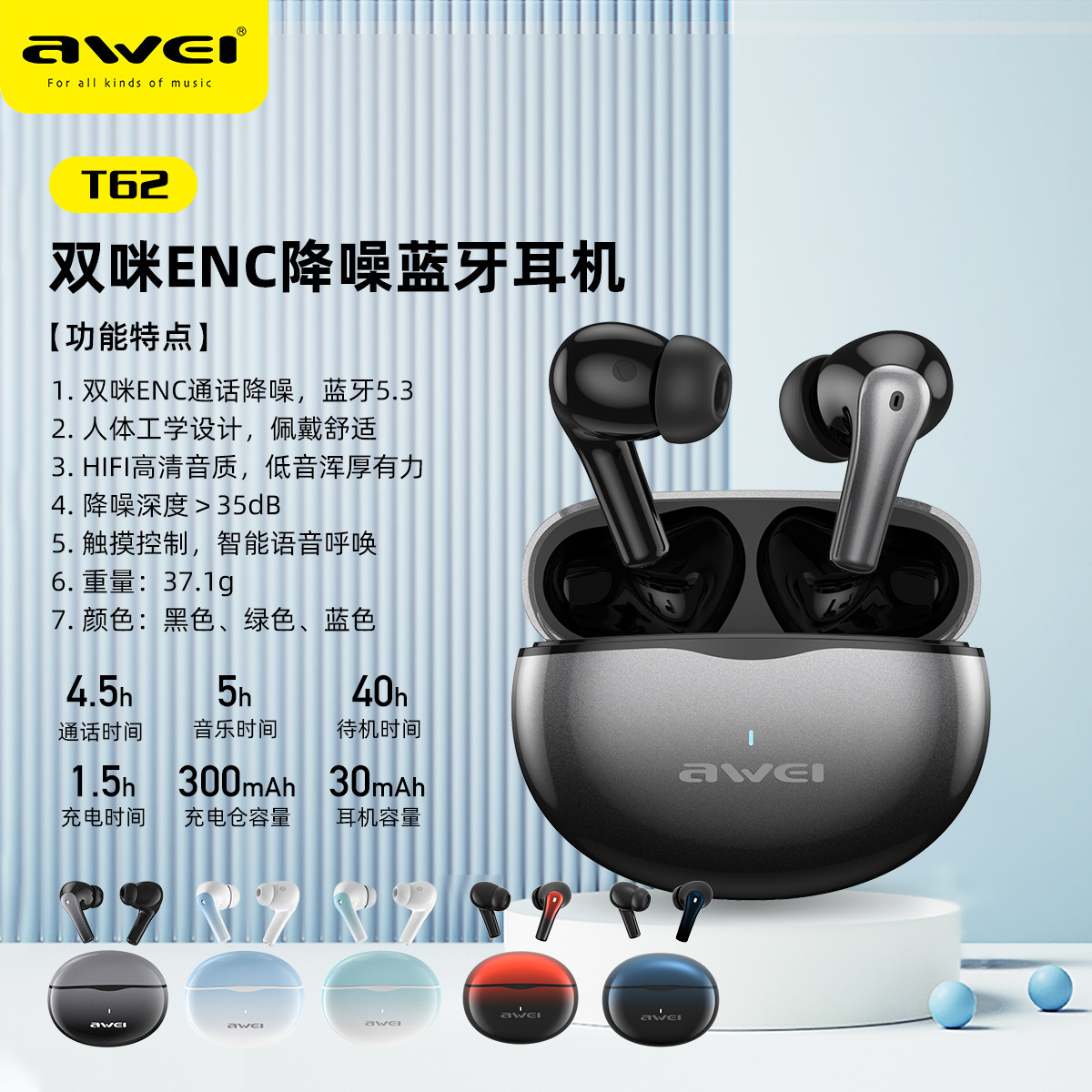 「三款配色」AWEI用维无线耳机 降噪长续航华强北入耳式蓝牙耳机数码配件