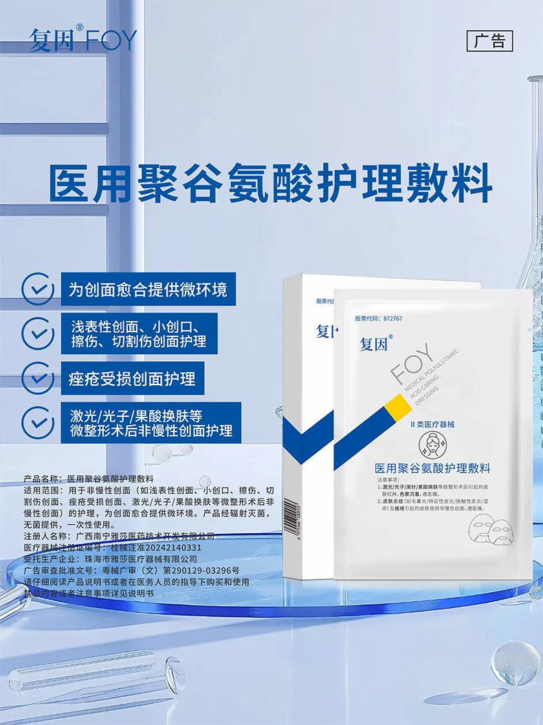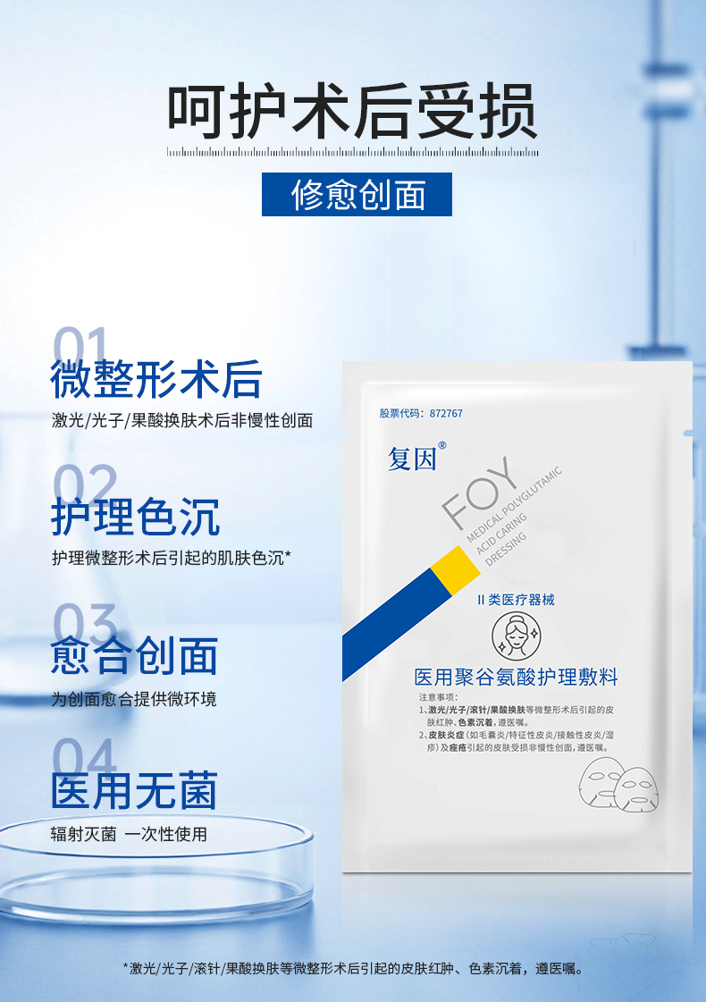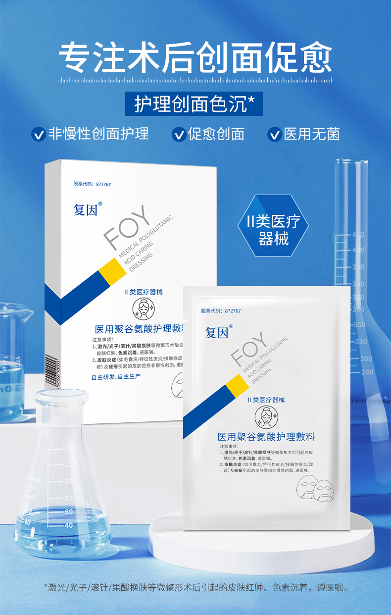 【新品买3送8片】复因FOY医用聚谷氨酸护理敷料 5片/盒 Ⅱ类医疗器械***2件9折、3件8折