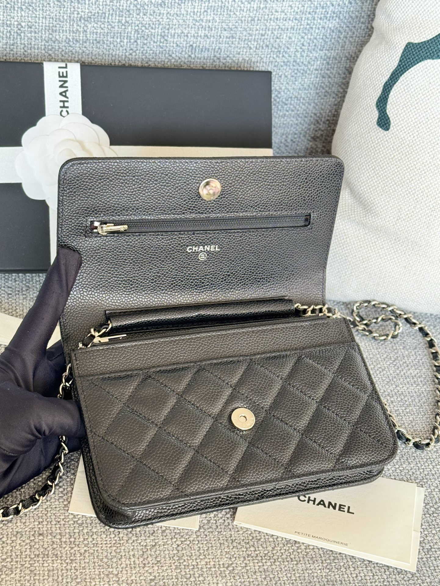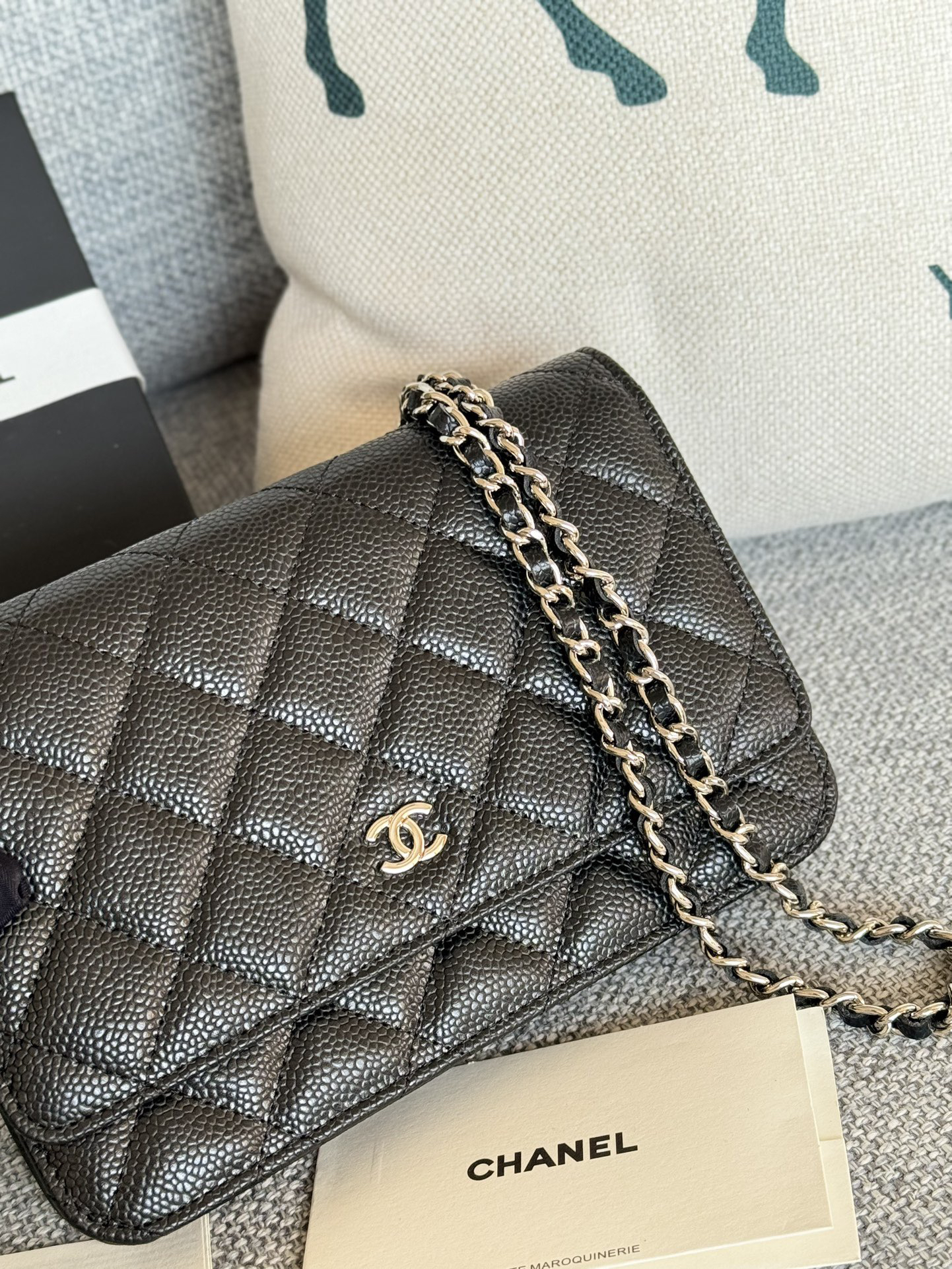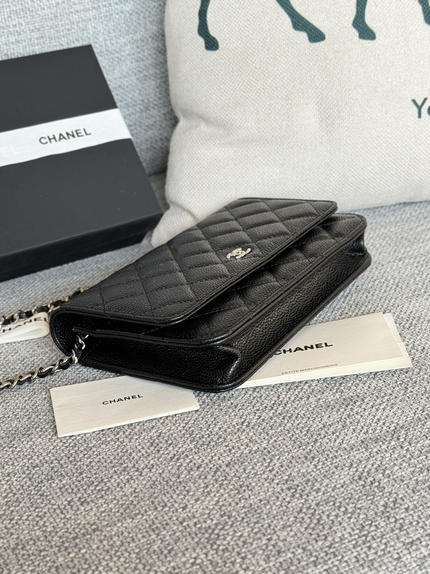香奈儿woc链条包🉐️牛皮-黑色银扣(粗球纹)