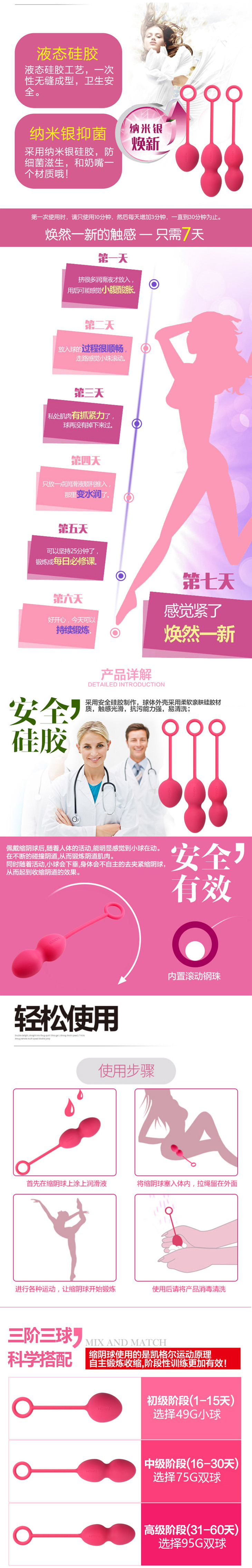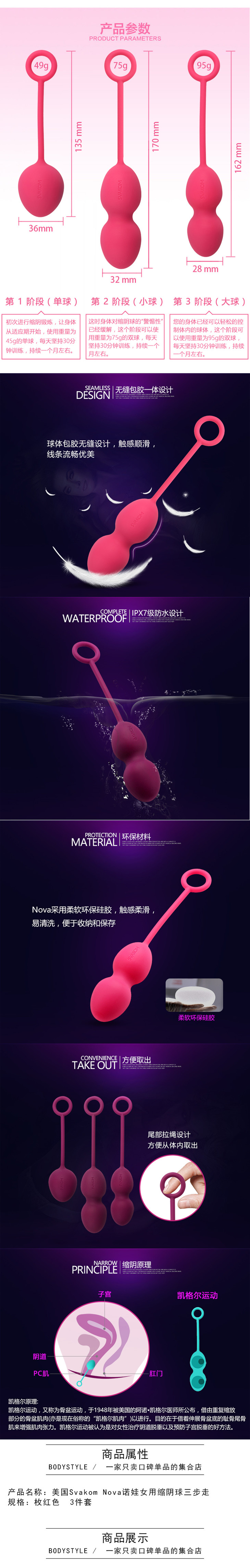 【女性私处健康保养】7天恢复少女紧致.美国Svakom Nova诺娃女用缩阴球三步走(枚红色) 3件套