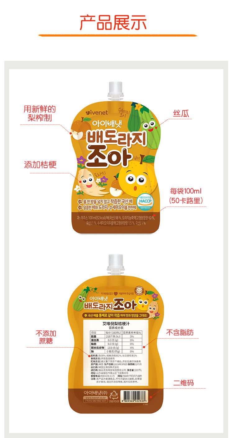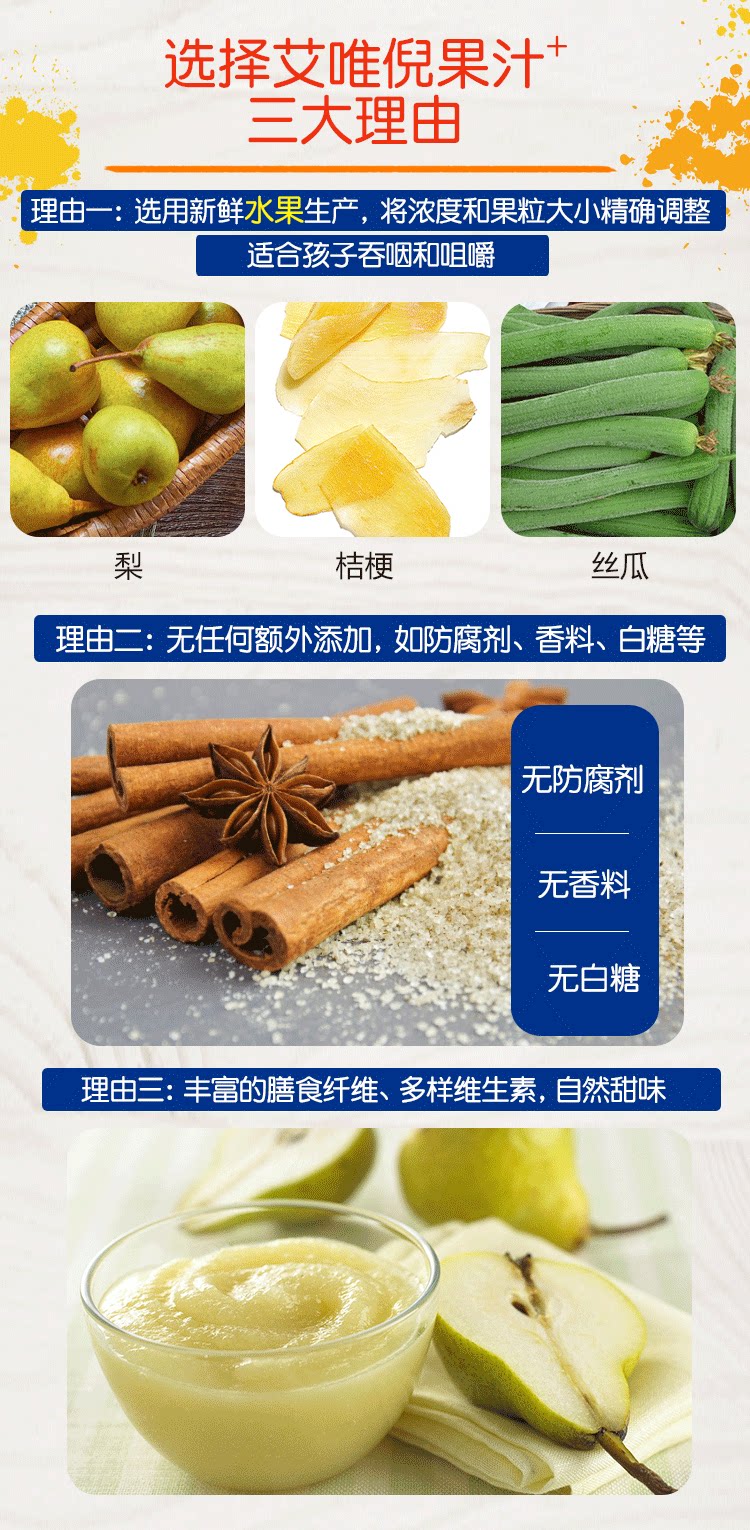 艾唯倪贝贝梨桔梗汁100mlNFC工艺保留营养