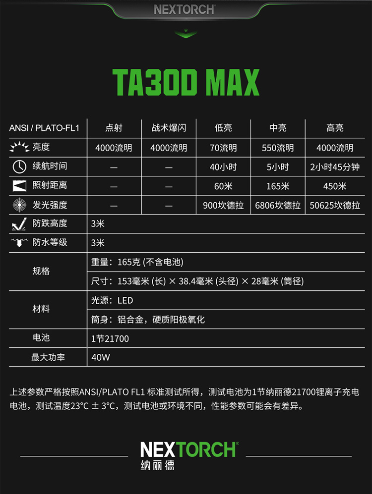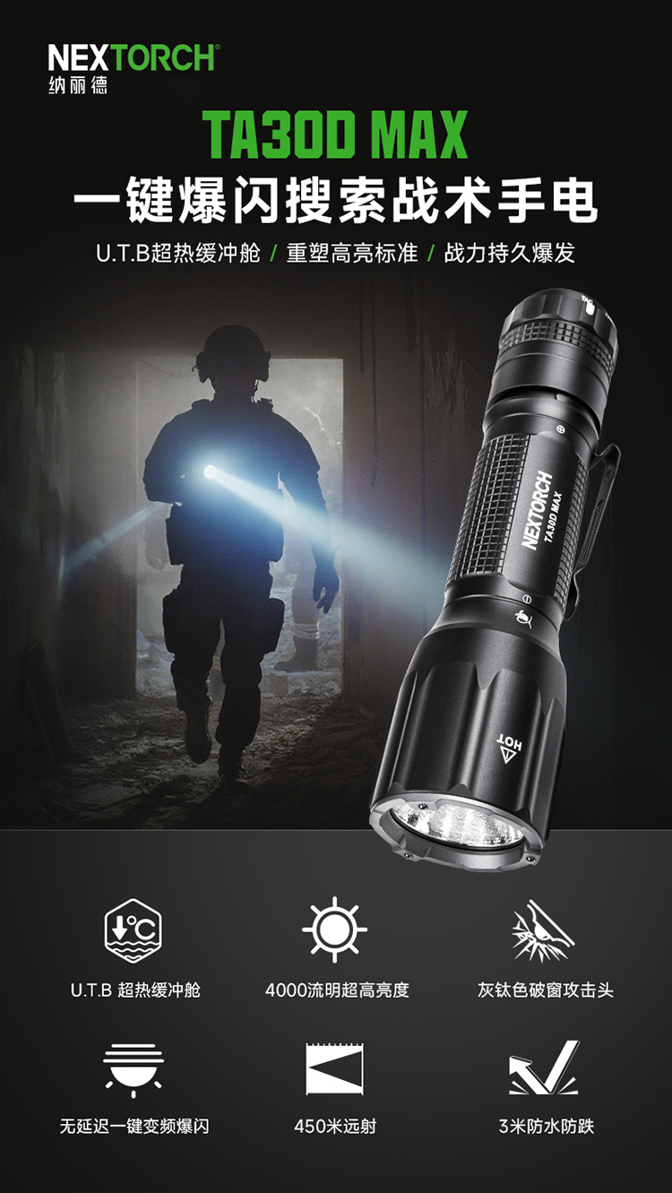 【新品】TA30D MAX战术高亮手电户外工作日用