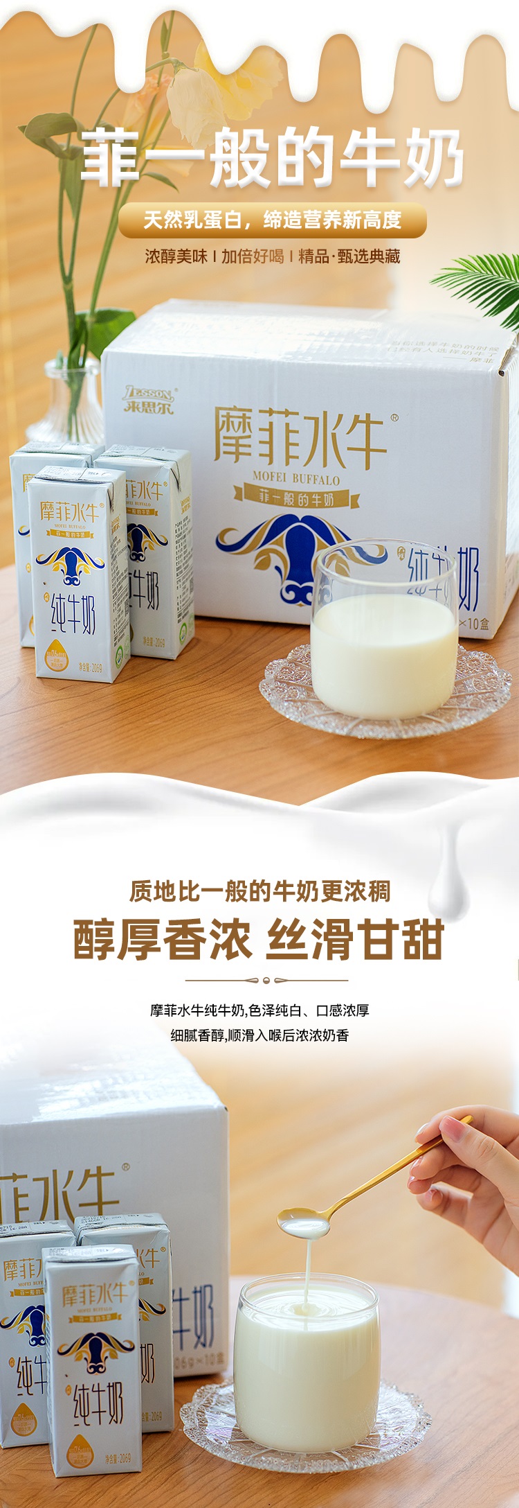 【满两件减5元 | 摩菲水牛纯牛奶】每盒含7.6g原生蛋白质 奶质丝滑浓郁 口感细腻香醇