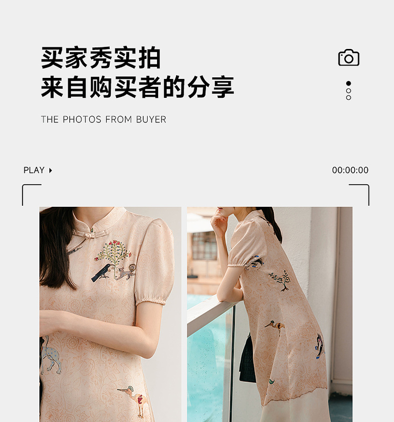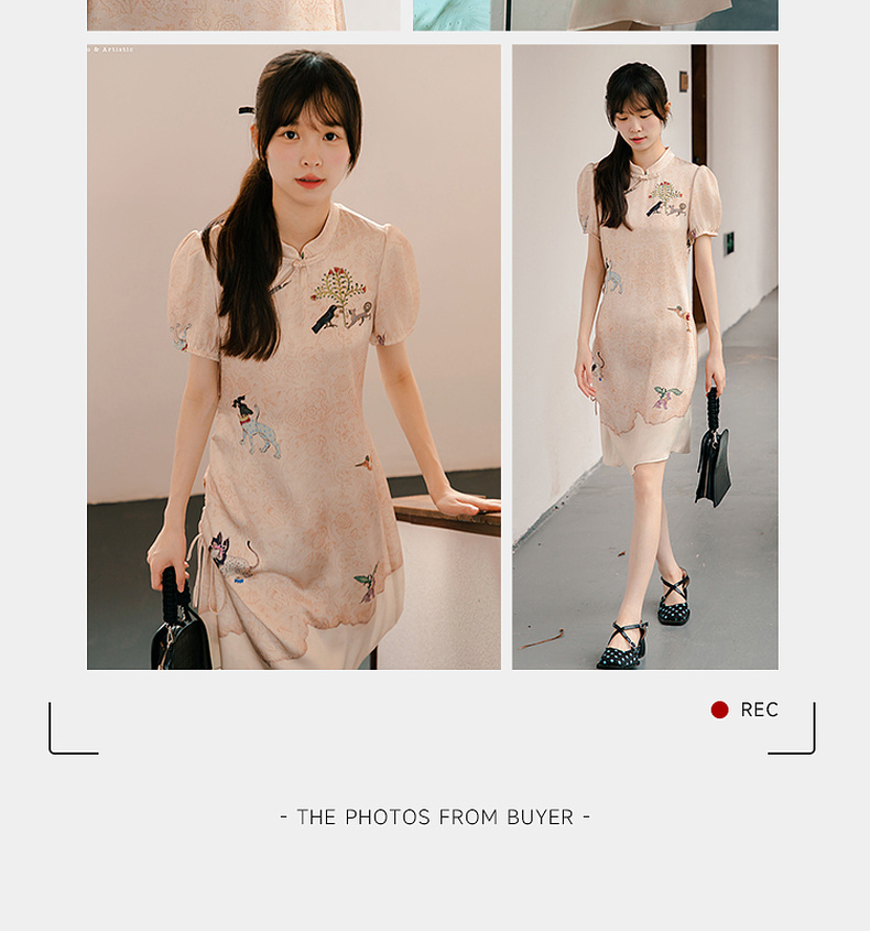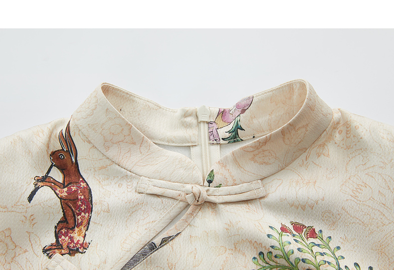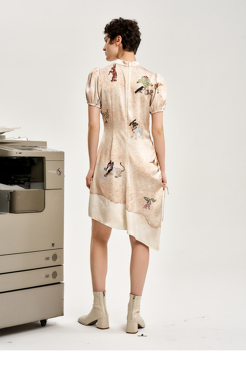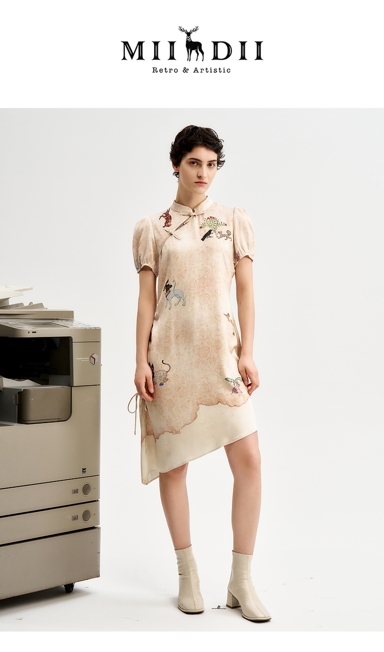 谜底旗袍裙女2024秋新品新中式主题印花修身连衣裙短袖243ML1071