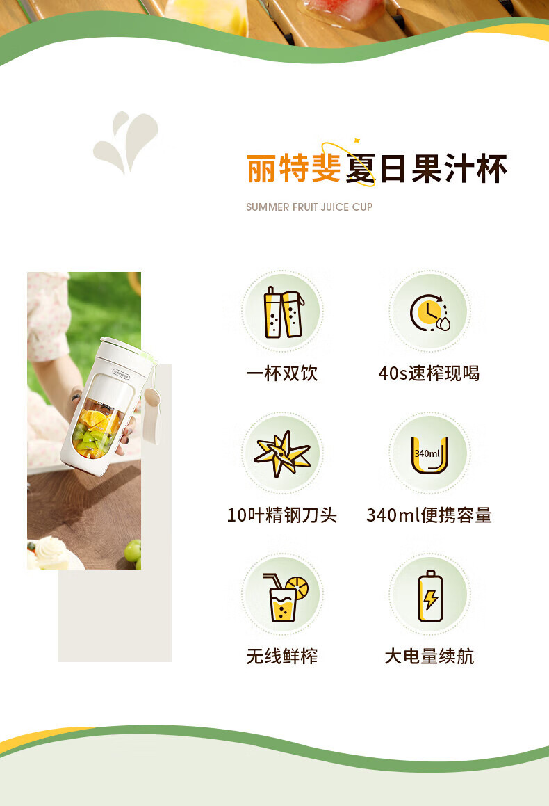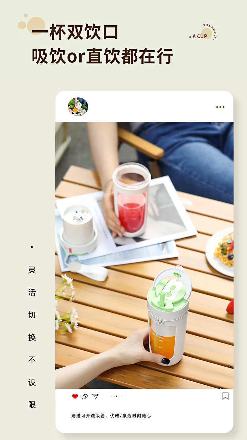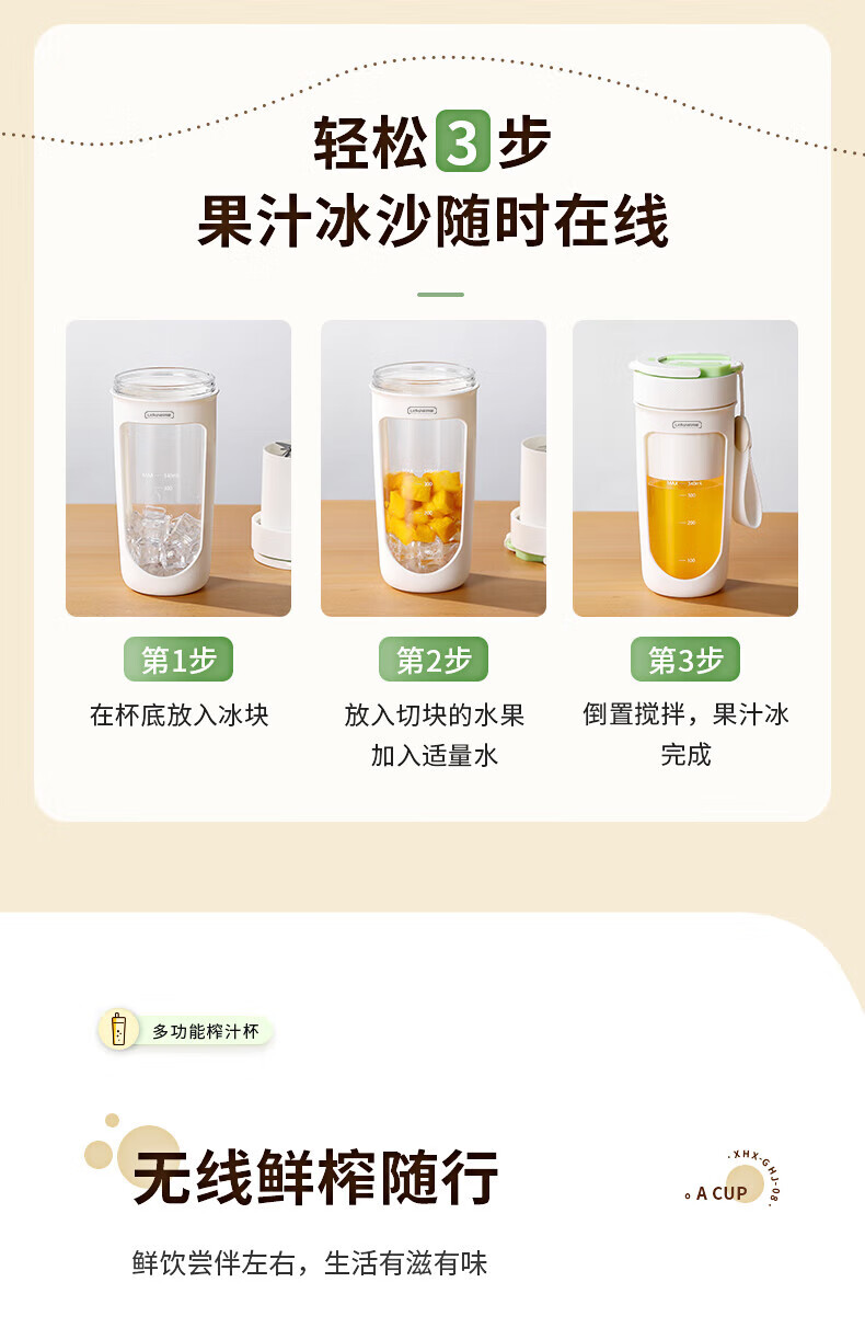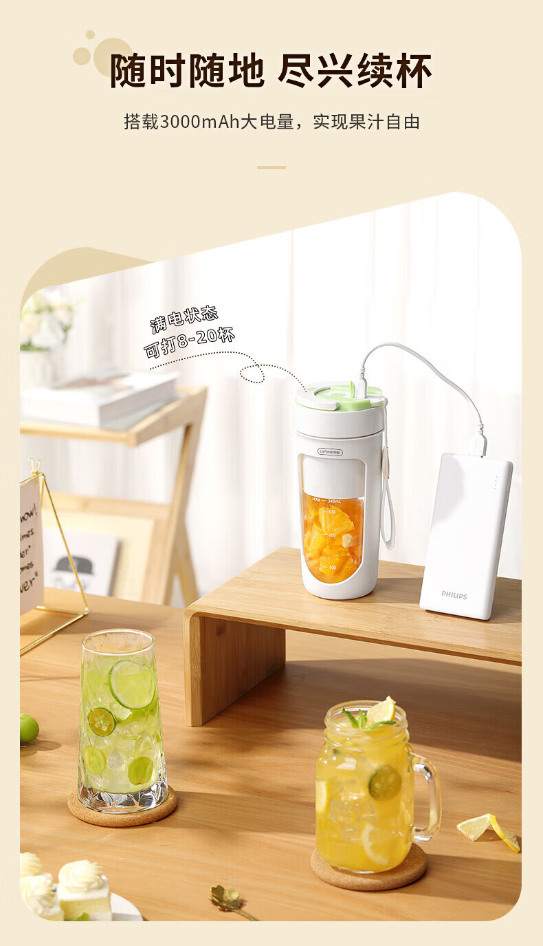 【小家电】丽特斐无线碎冰鲜榨果汁机 (吸管直饮式) GZJ08 HF