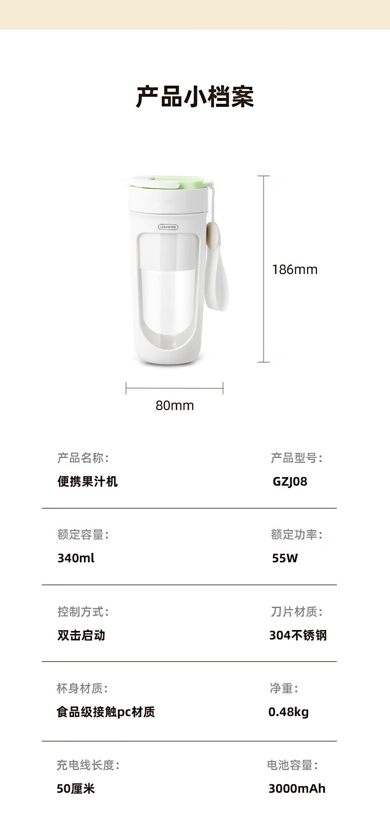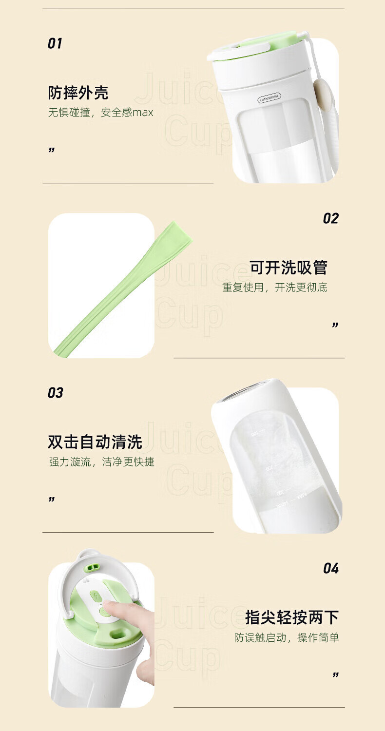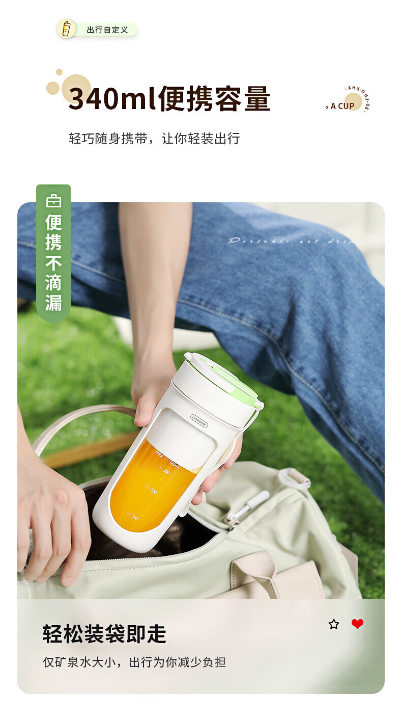 【小家电】丽特斐无线碎冰鲜榨果汁机 (吸管直饮式) GZJ08 HF