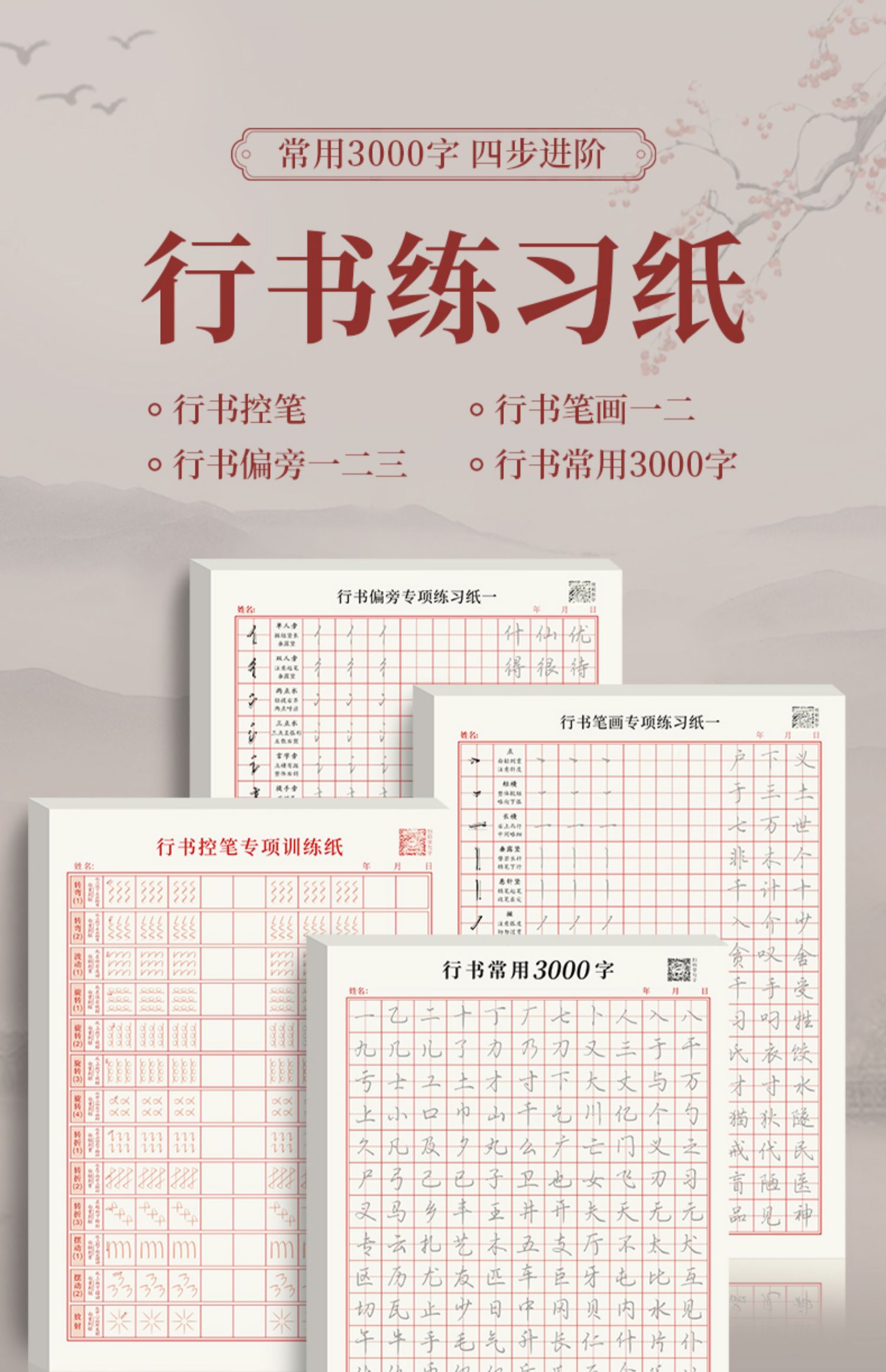 成人行书常用3000字行楷硬笔速成练习纸