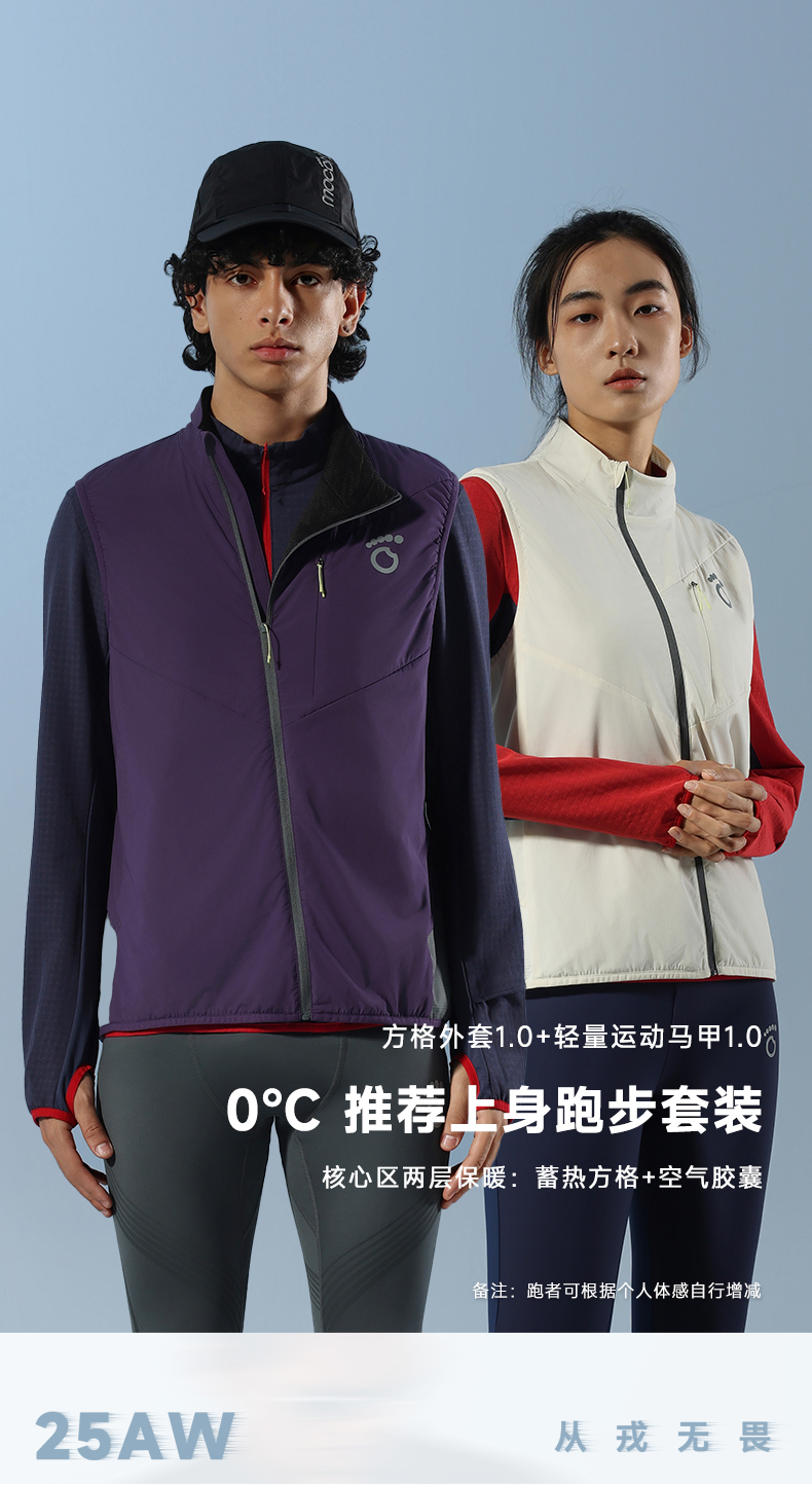 方格外套+轻量运动马甲 方格内蓄暖 马甲超轻 秋冬跑步 0度跑步上衣搭配