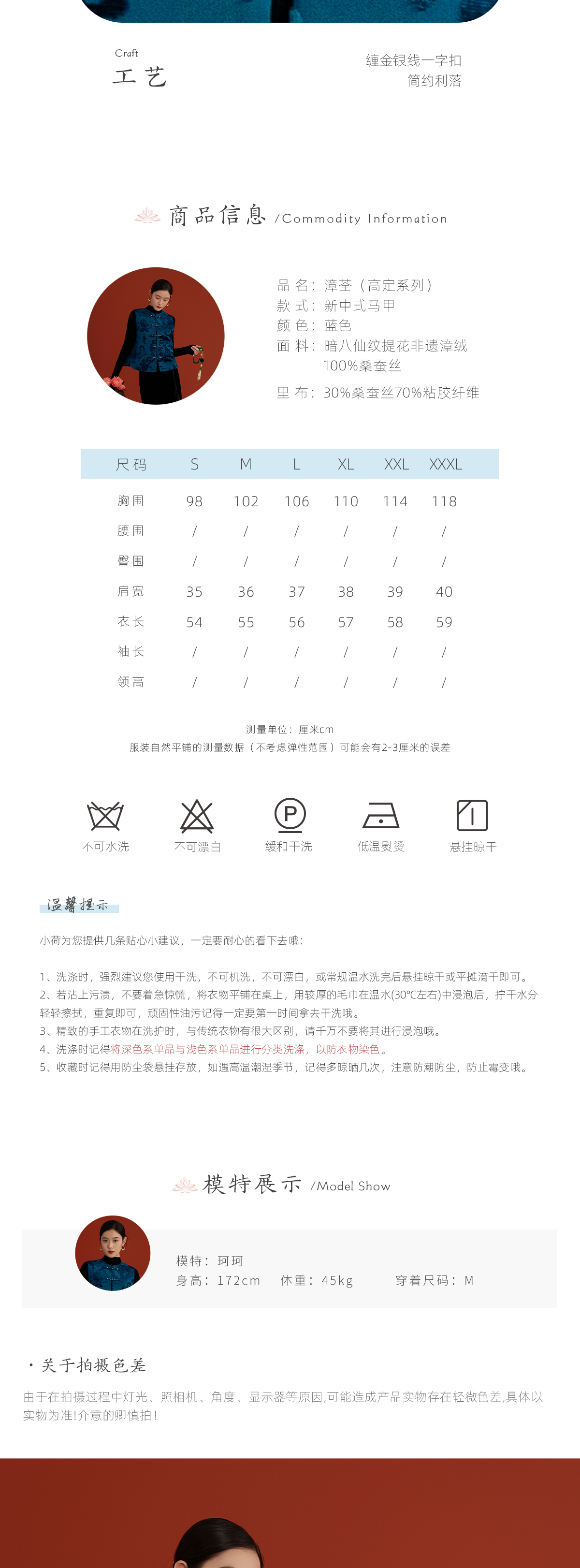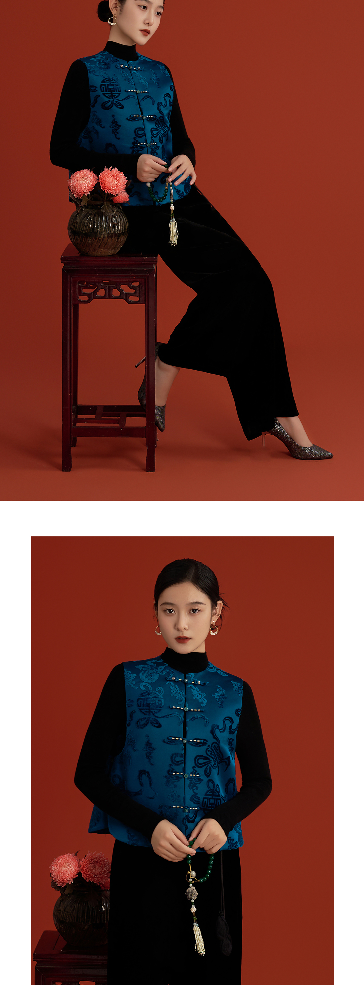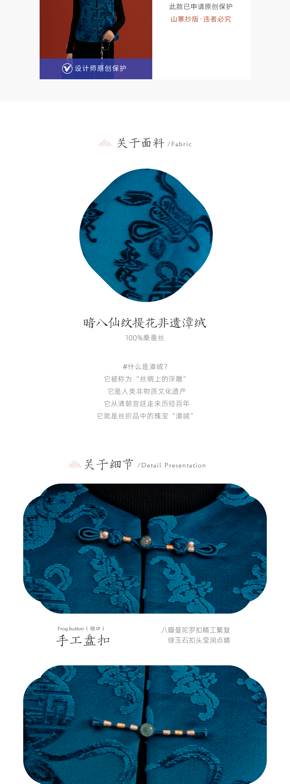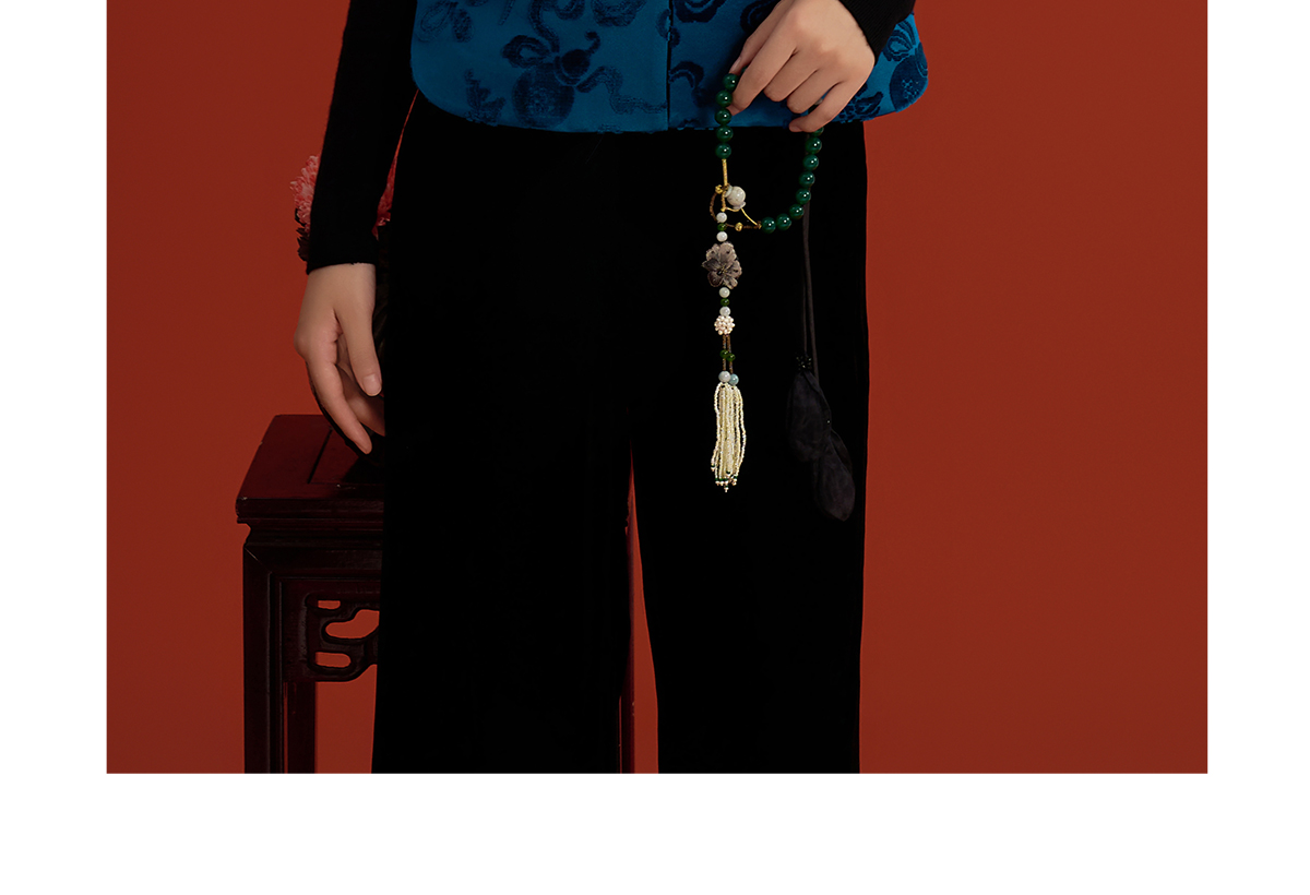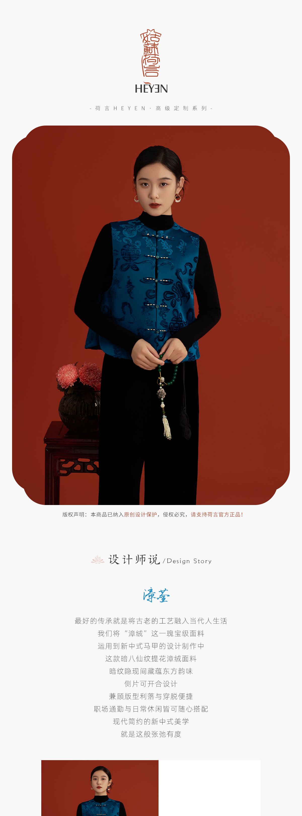 荷言HEYEN 漳荃 暗八仙纹样漳绒缎马甲绿玉石扣头侧片可开合