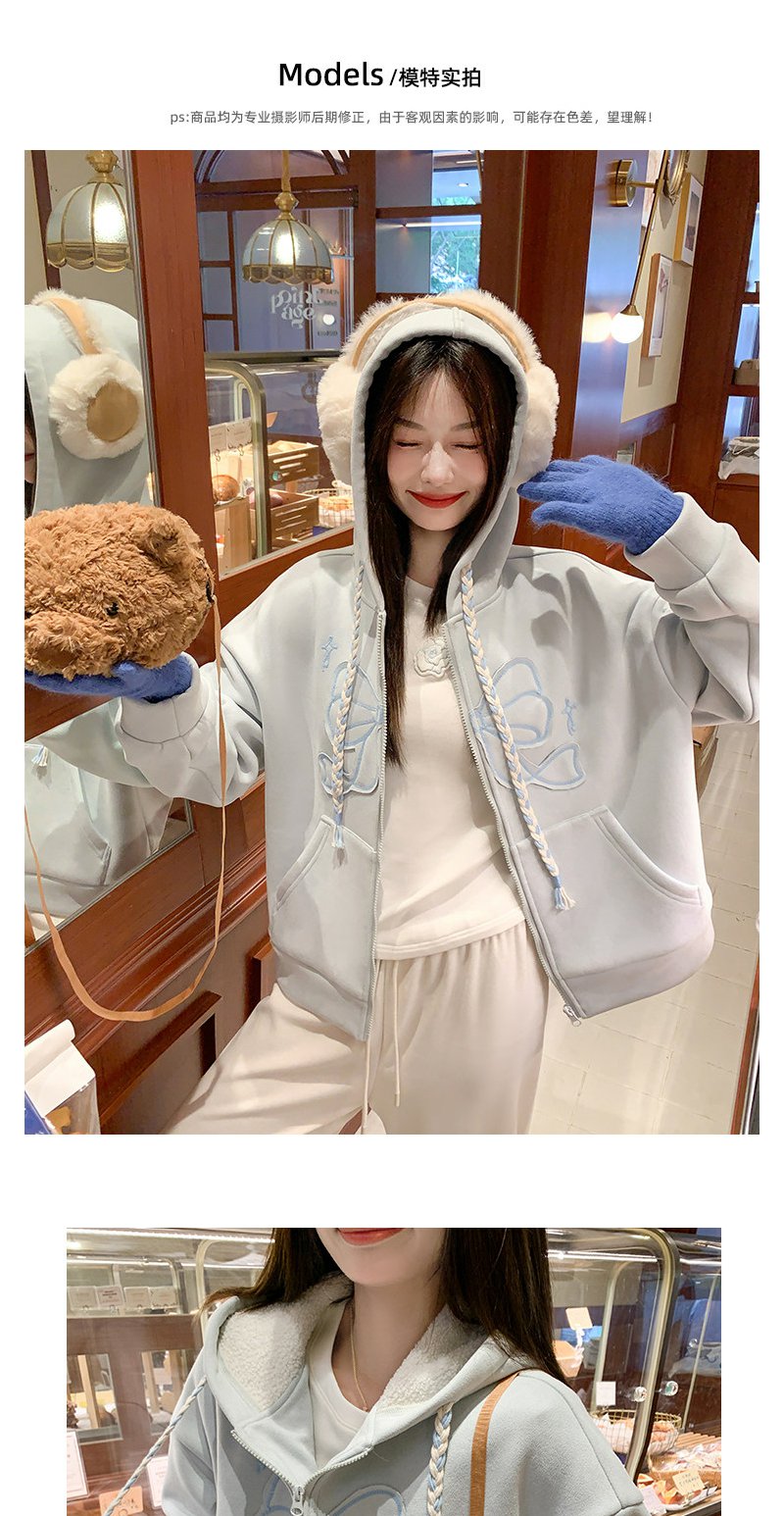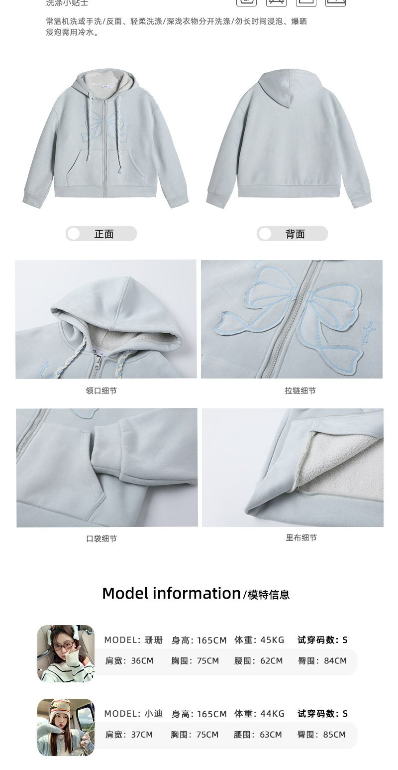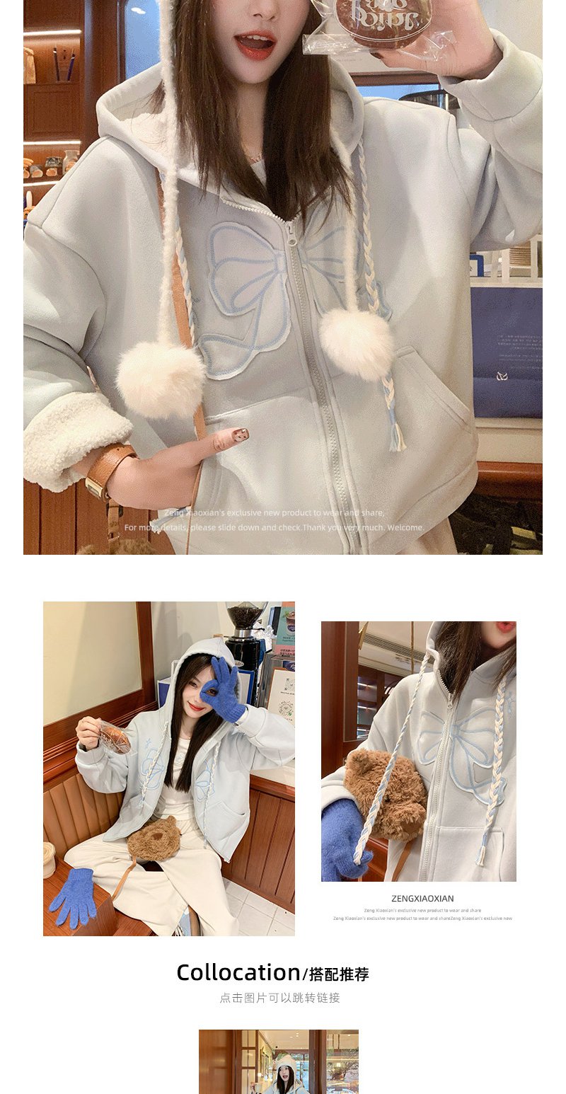 <曾小咸推荐>现货秒杀 !微信超特价!刺绣蝴蝶结连帽加绒卫衣 日常269.99 立减140 秒杀129.99!!