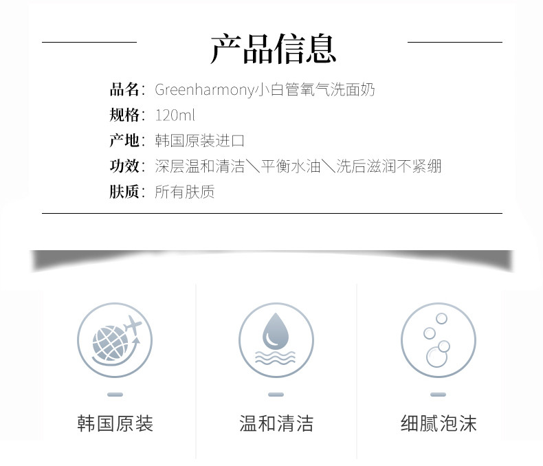 GREENHARMONY JOAJOTA 小白管氧气洗面奶 120G韩国