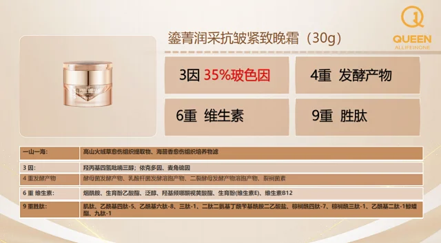 Queen女王鎏菁润采抗皱紧致晚霜 35%高含量玻色因30g/罐!有多好用过的都知道!
