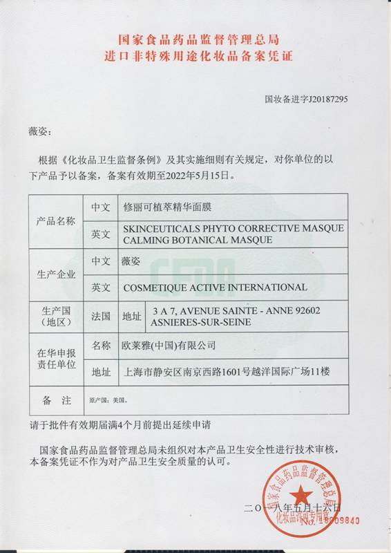 修丽可植萃舒缓修护精华面膜60ml