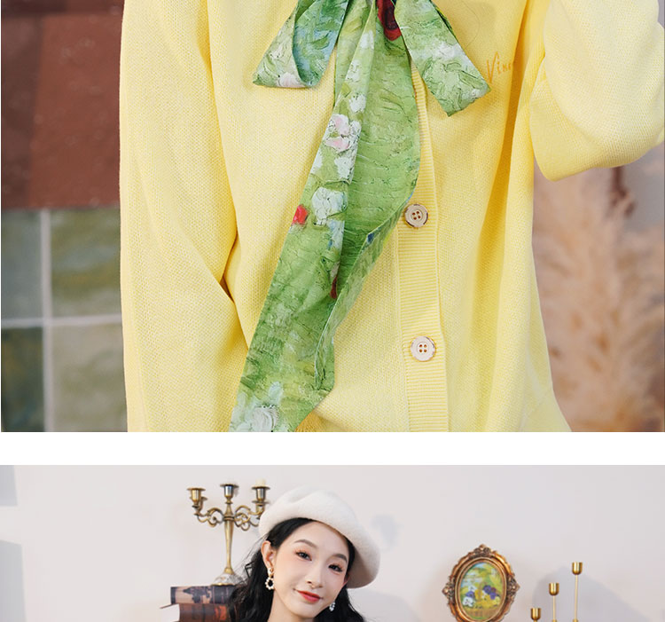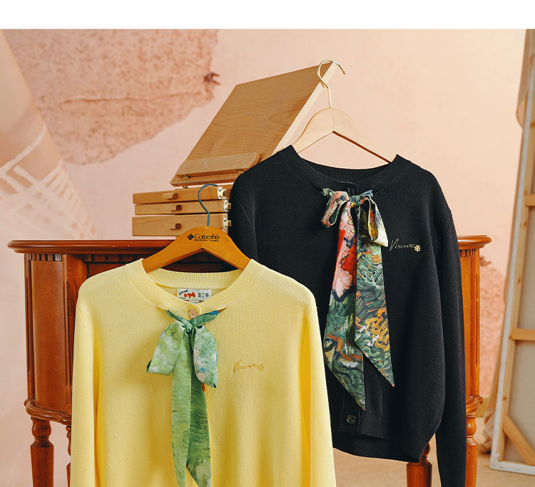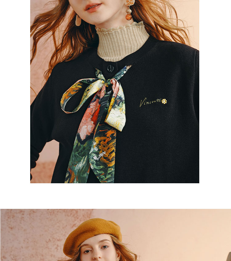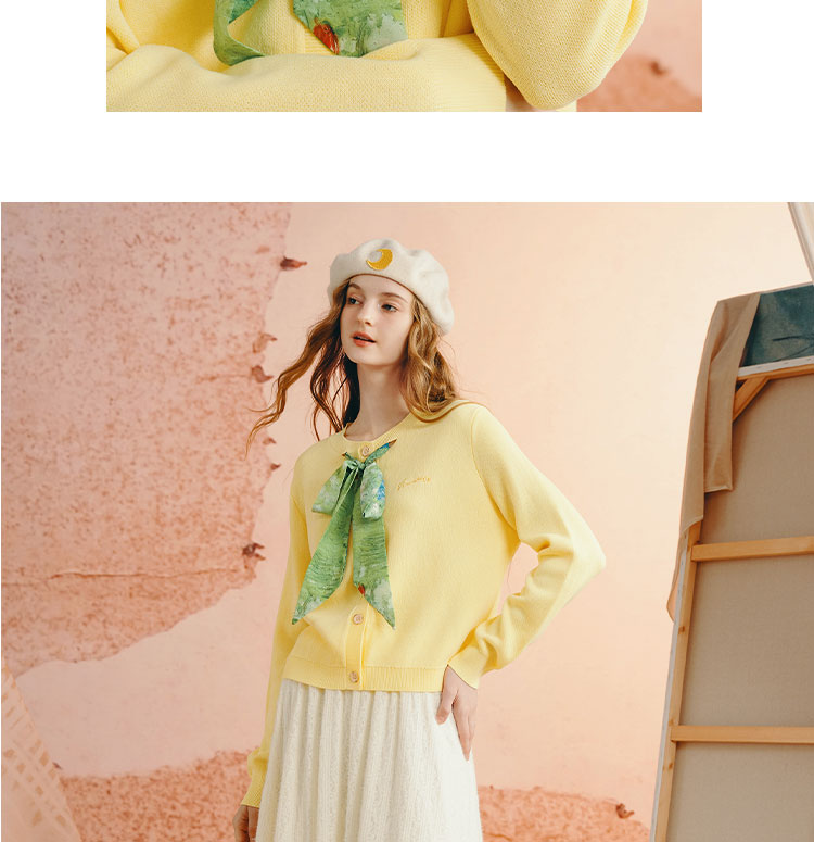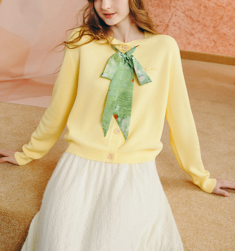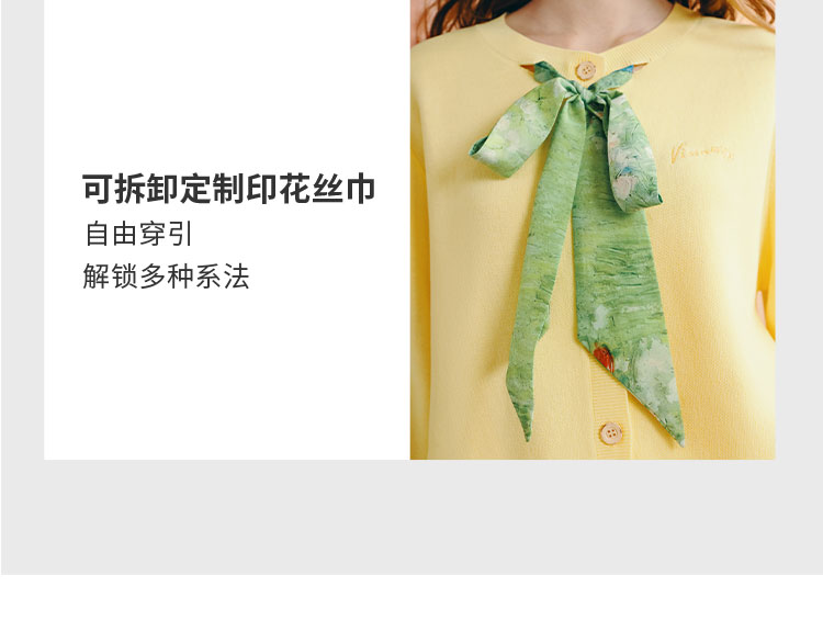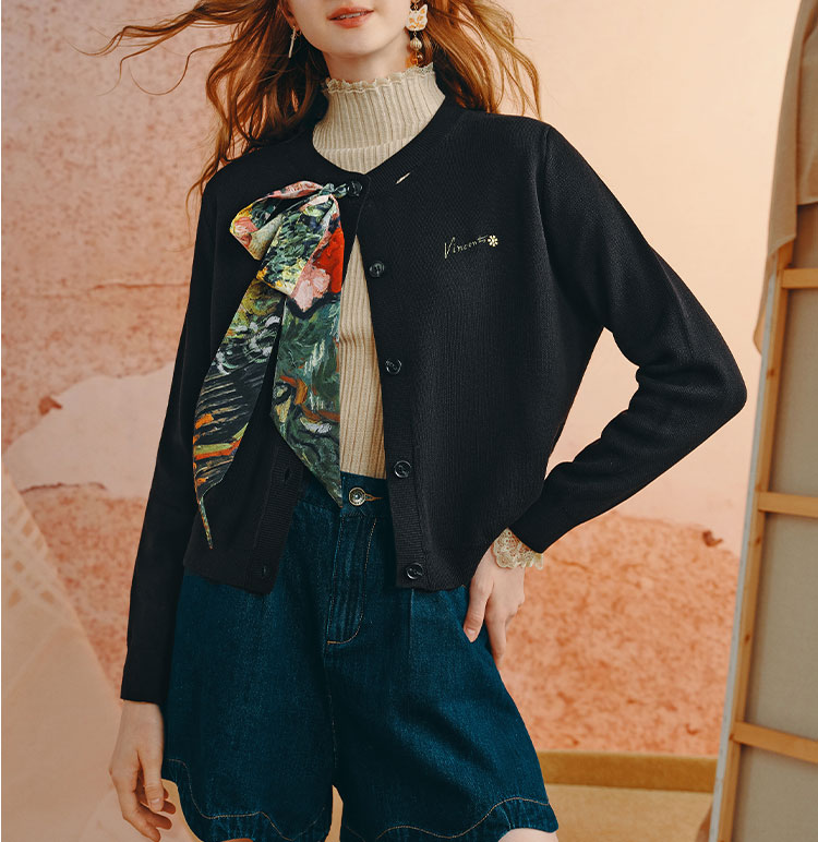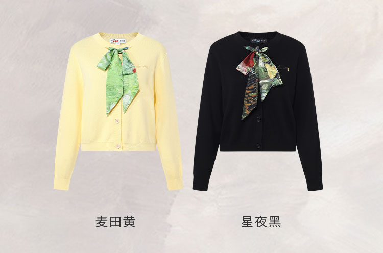 两三事梵高文艺诗悦浮香2025秋季新款百搭印花绑带针织开衫女宽松