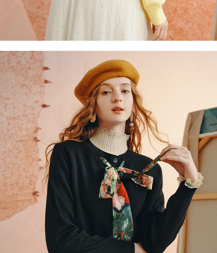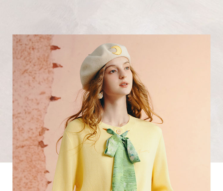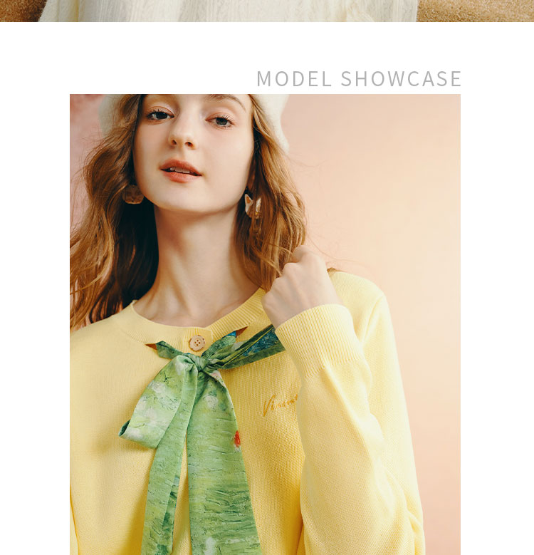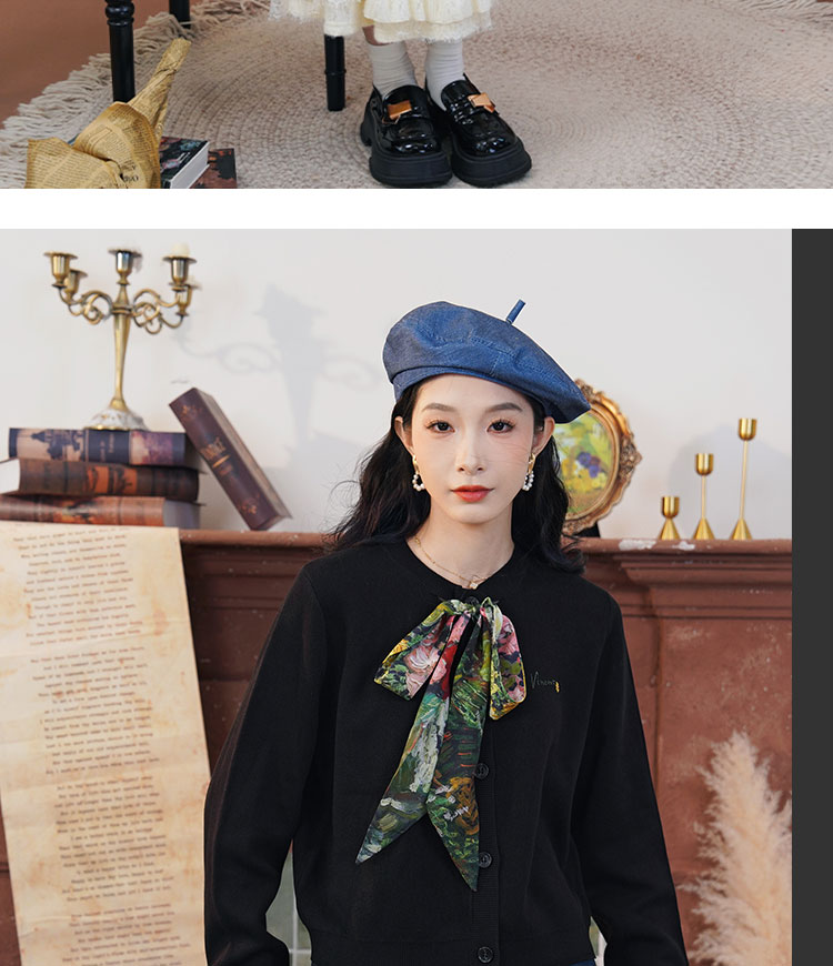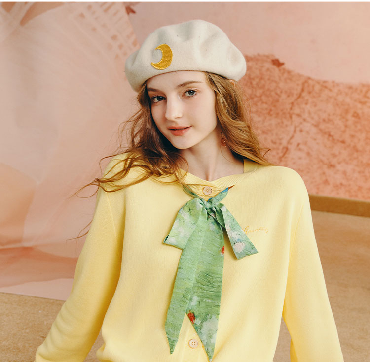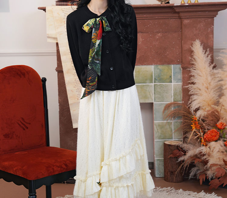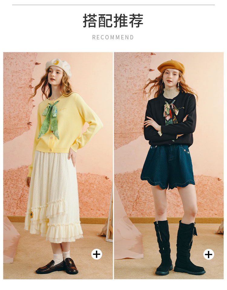 两三事梵高文艺诗悦浮香2025秋季新款百搭印花绑带针织开衫女宽松